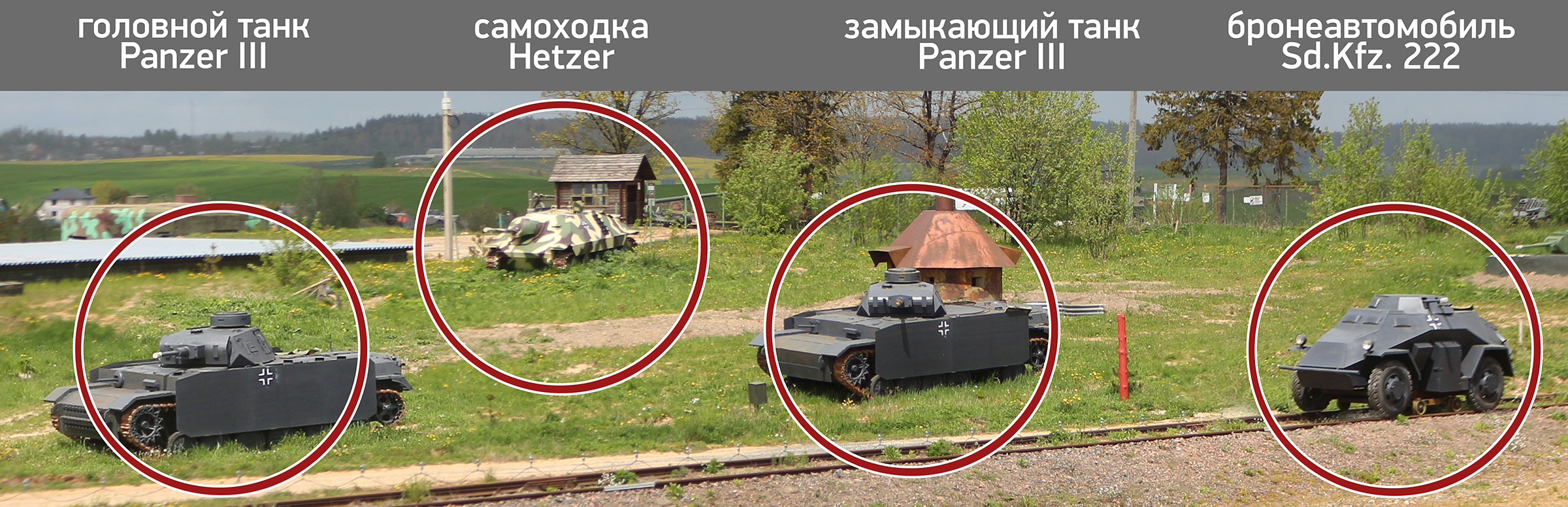On commander's signal one of the guests aims the 107mm gun at the Nazi tank and shoots.