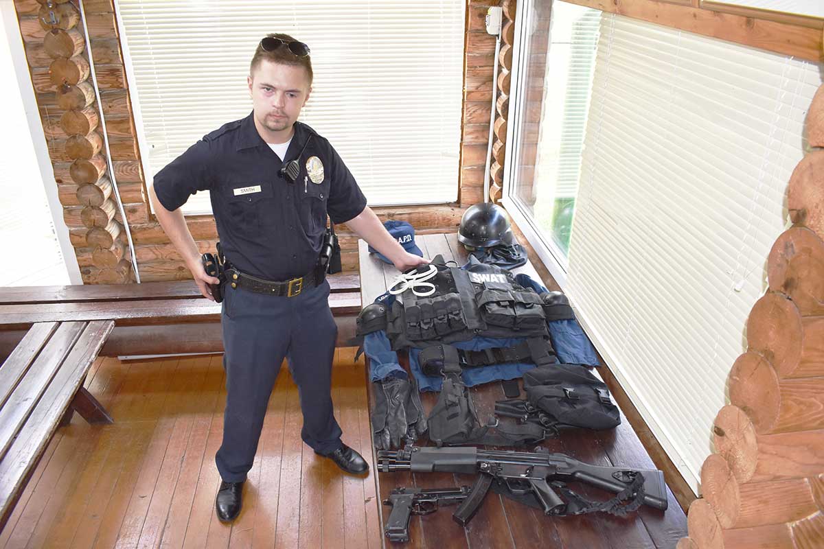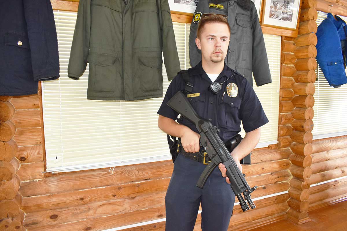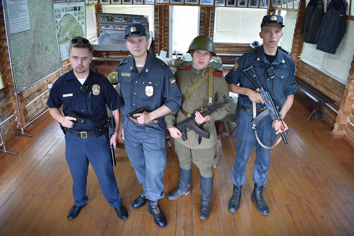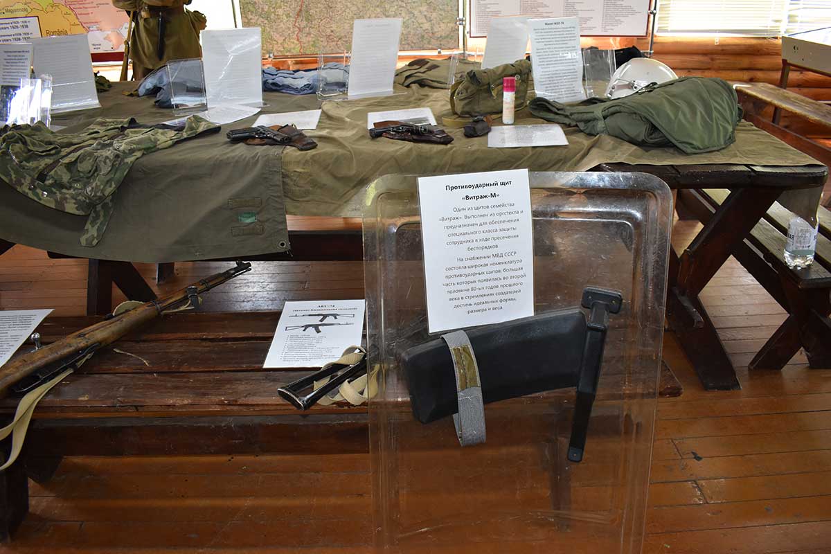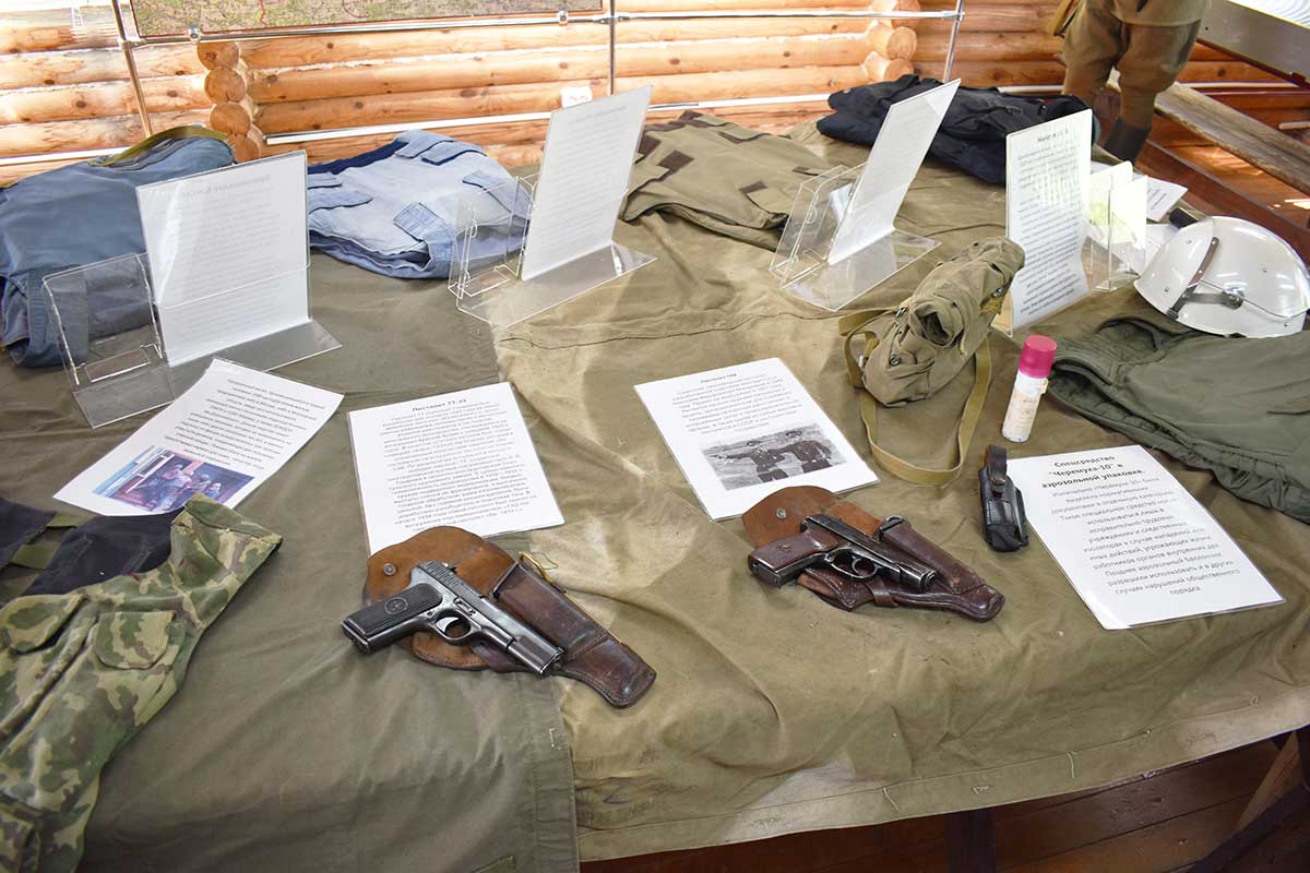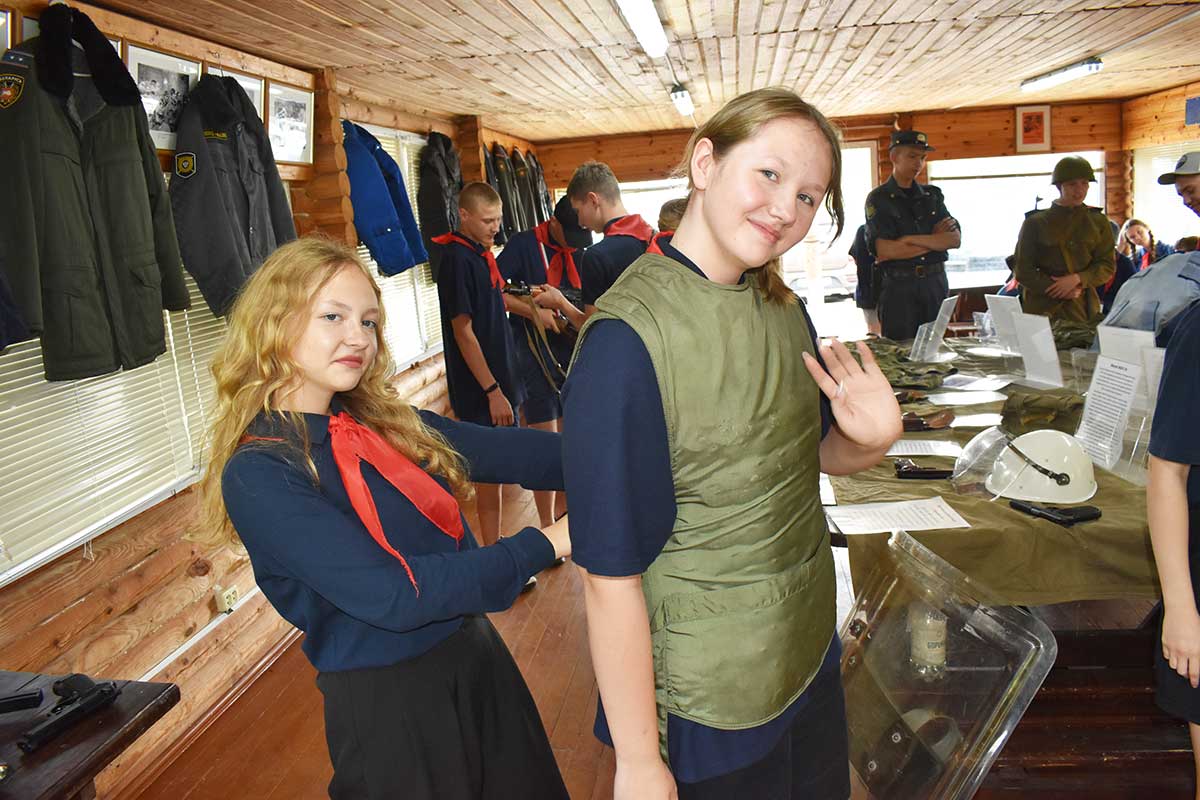 После теоретической части выступления участникам лагеря была предложена интерактивная часть мероприятия, в ходе которого можно было вживую ознакомиться как с экипировкой, так и с оружием, состоявшим на вооружении правоохранительных органов.