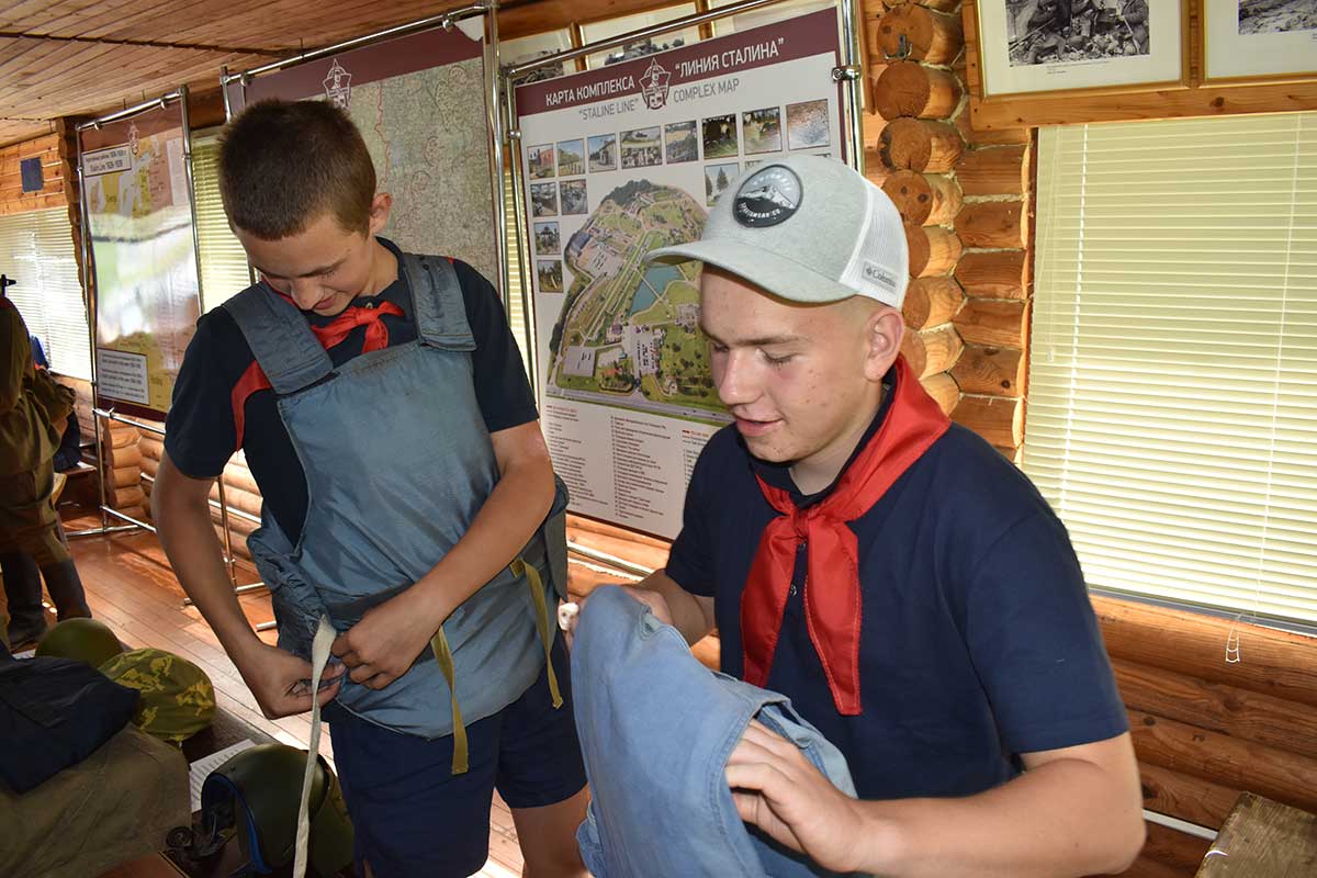 На территории ИКК «Линия Сталина» клуб «Контроль-16» провёл для ребят патриотического лагеря «Наследники победы» интерактивную выставку, посвящённую истории правоохранительных структур и их экипировки.