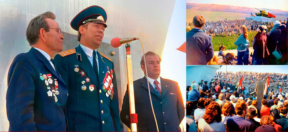 Odhalený byl 20.dubna 1975 samotným přímým účastníkem bitvy u Staroviček, Hrdinou SSSR Ivanem Stěpanovičem Mirenkovem.