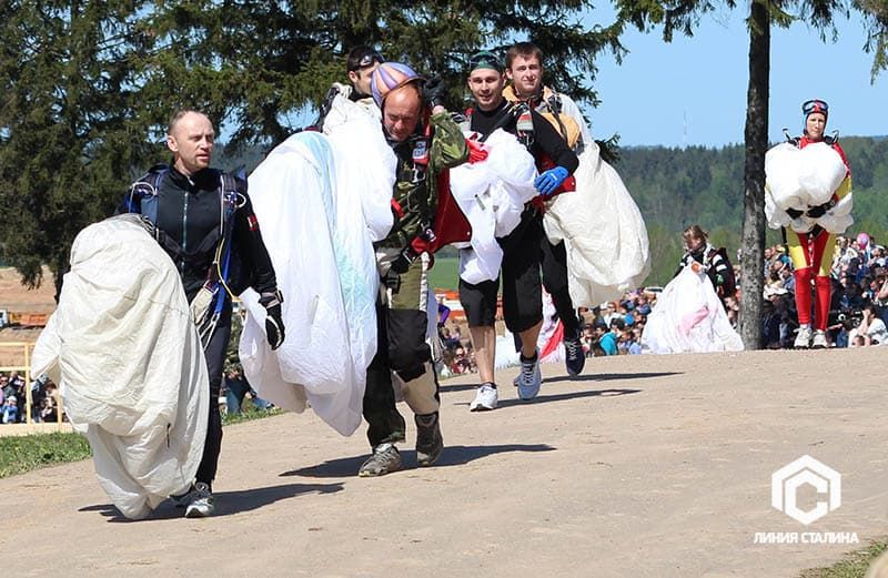 Потом особый восторг вызвала точность приземления девяти парашютистов на маленькой площадке перед трибуной со зрителями.