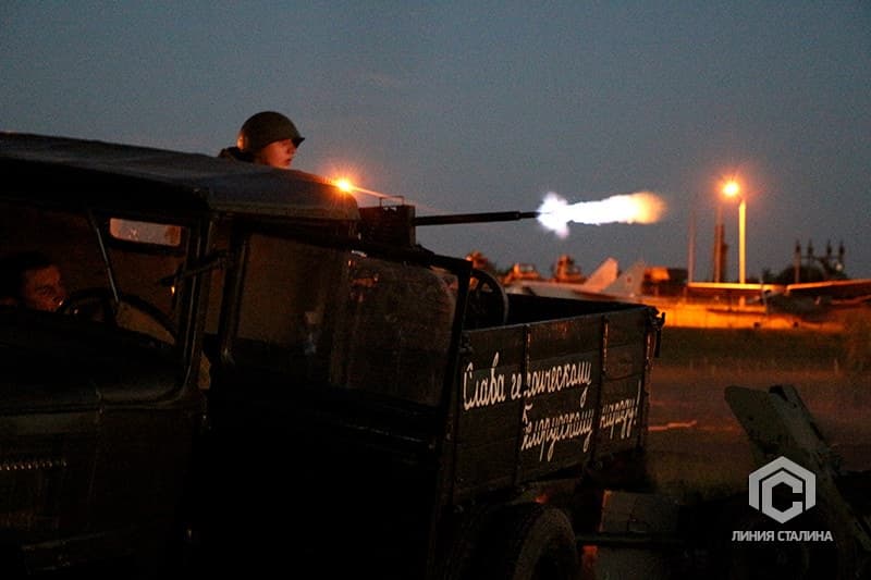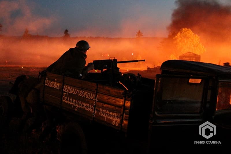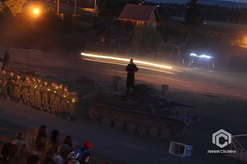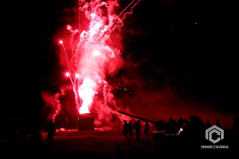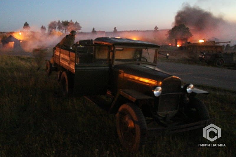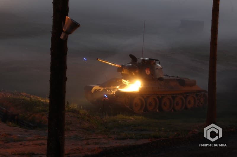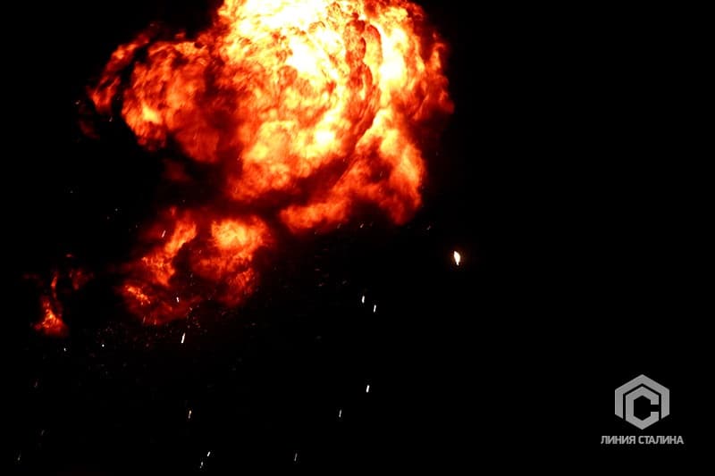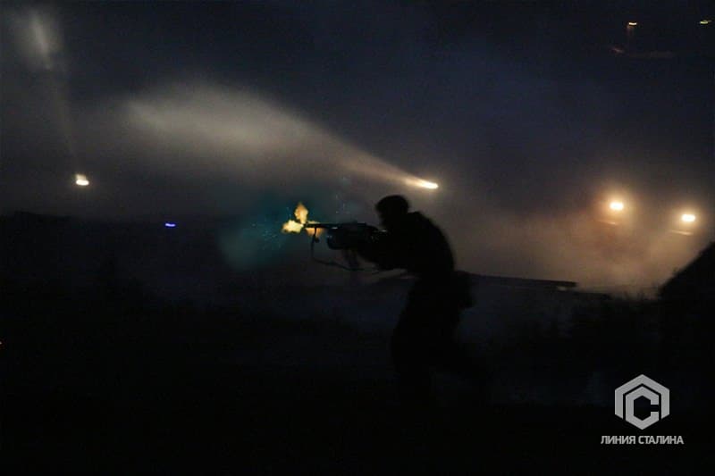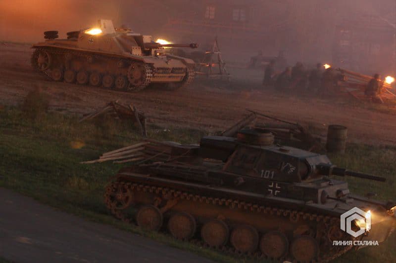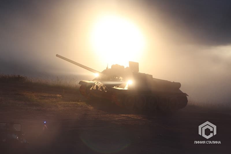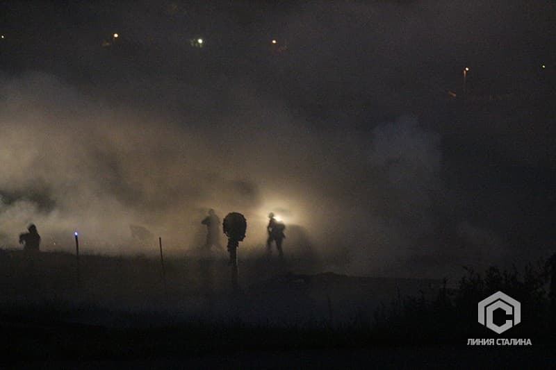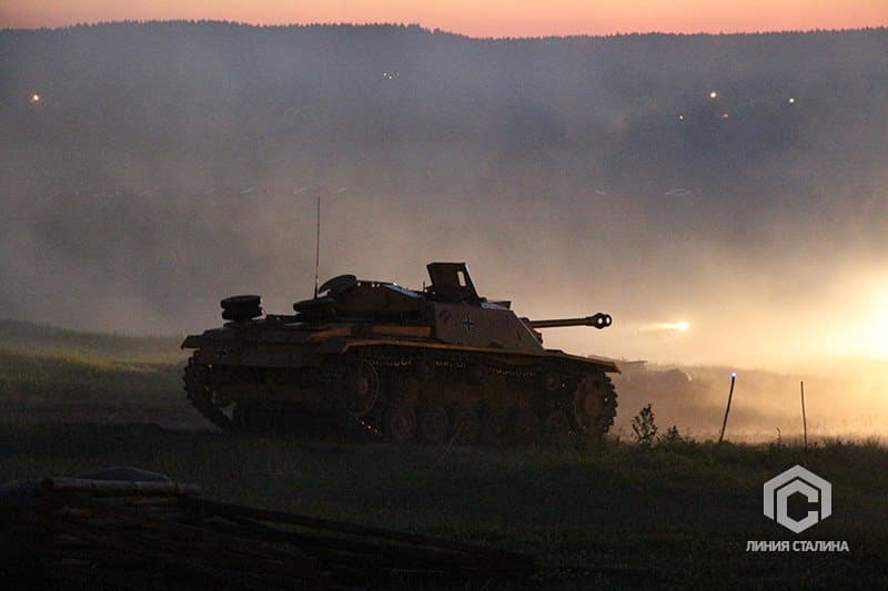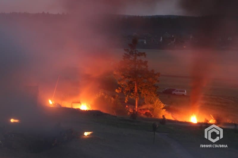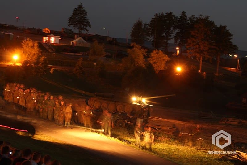 В гуще ночных сумерек разыгрался бой, освящаемый прожекторами, горящими кострами, огнём выстрелов и взрывов, а так же фарами боевых машин.