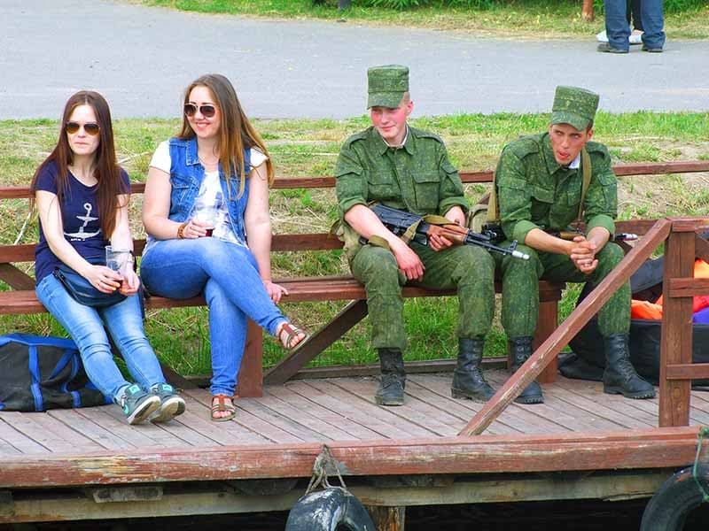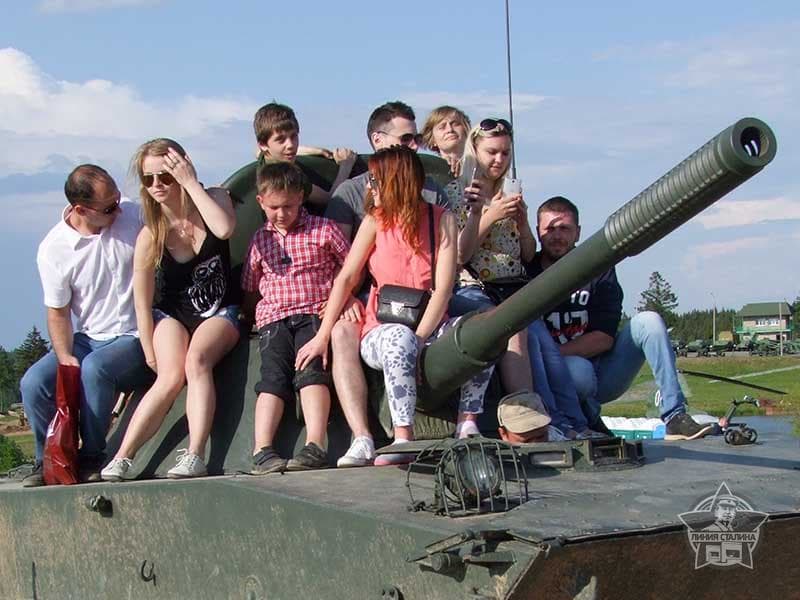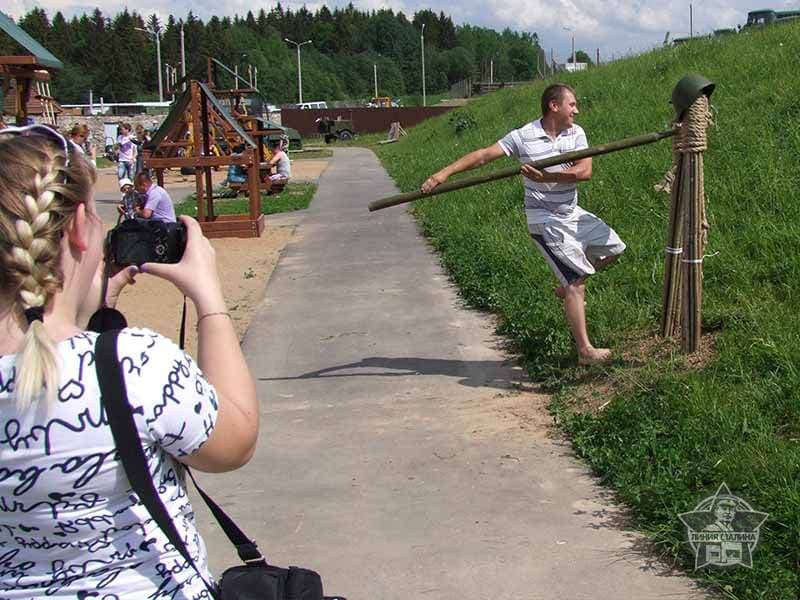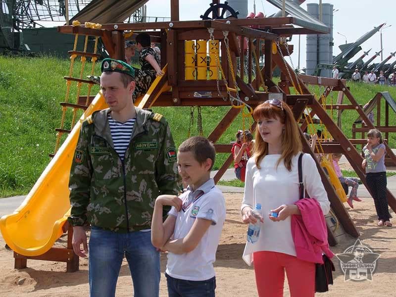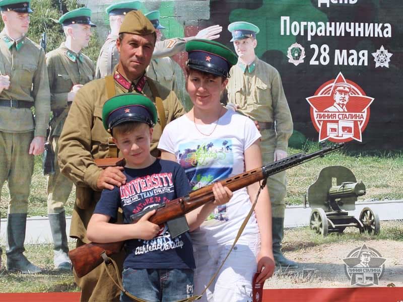 Чтобы приятно провести время, к нам приехало множество гостей. На этот раз посетители комплекса были приятно удивлены возможностью бесплатно получить свою фотографию, снятую фотографом «Линии Сталина» на фоне праздничного баннера. Для этого желающим сфотографироваться выдавались фуражки пограничников.