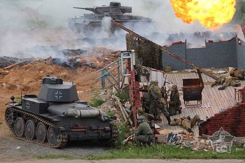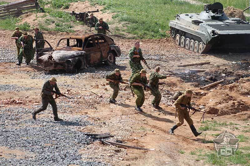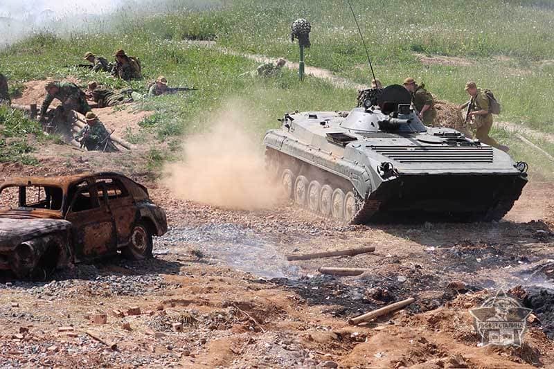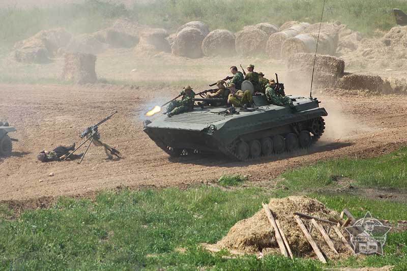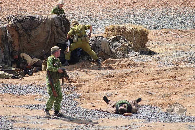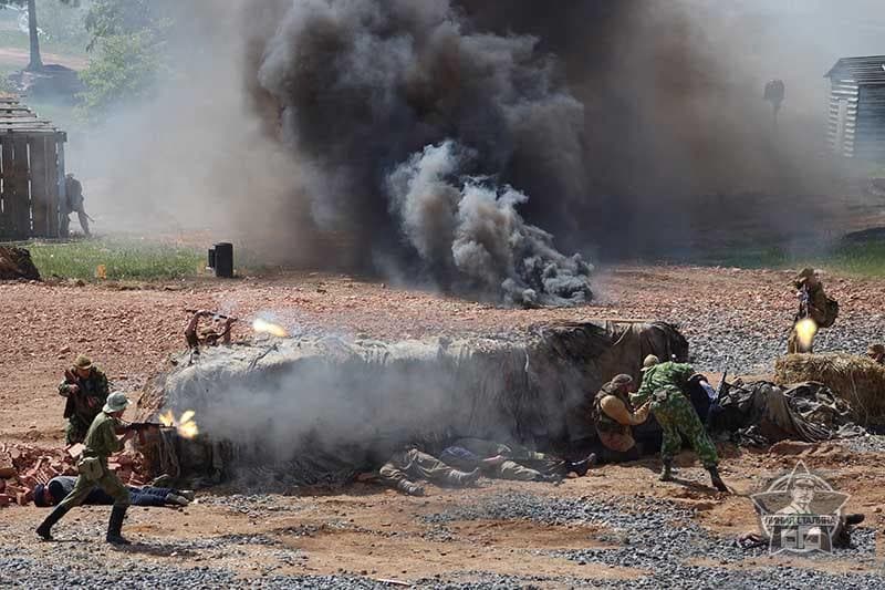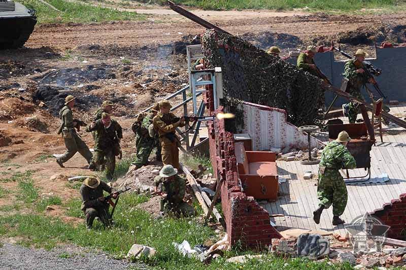 В 14:30 началась реконструкция боя времён Афганской войны, когда душманы вторглись на территорию Советского Союза.