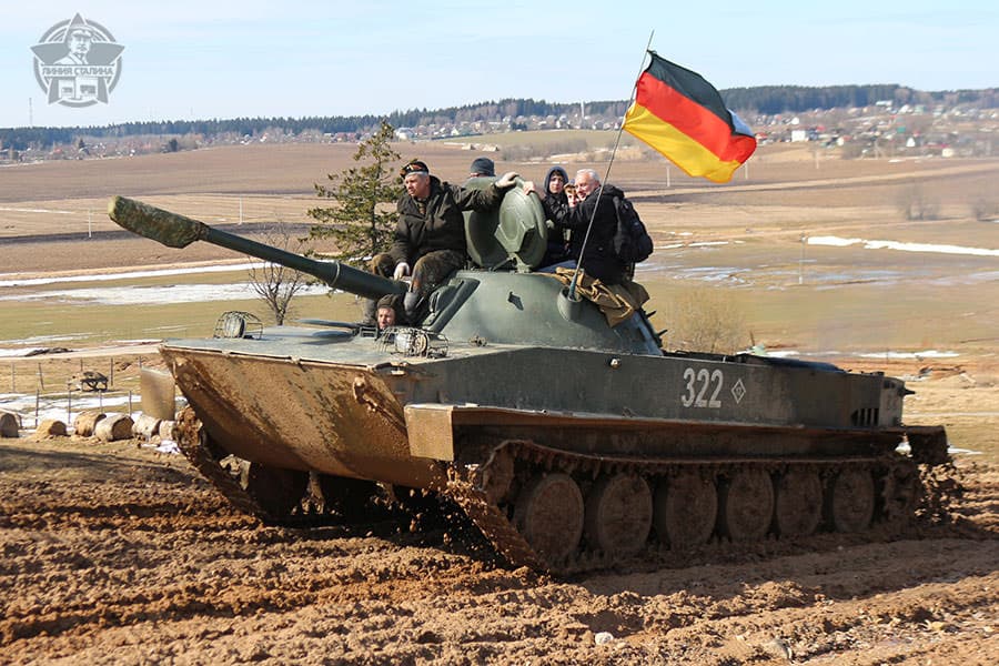 Несмотря на пацифистские настроения в Германии немецкая молодёжь у нас охотно катается на танке, фотографируется с оружием и даже, смеясь, стреляет из пушки по немецкому танку. Заглядывают они и к Деду Морозу в его Резиденции на нашем комплексе – надо же загадать желание! Например, чтобы в Германии был… снег )))
