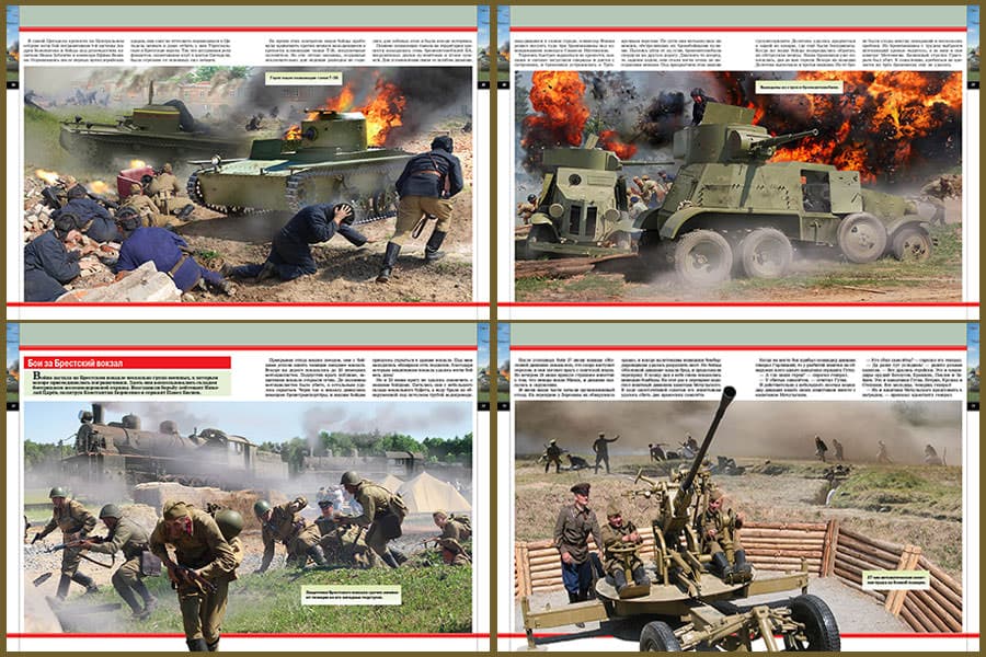 Подвиги лётчиков истребителей, совершённые 22 июня 1941 года, оборона Брестской крепости и Брестского вокзала, «железная дивизия» и герои-пограничники, бои на Минском укрепрайоне «Линии Сталина» и огненные тараны лётчиков дальней авиации Гастелло и Маслова.