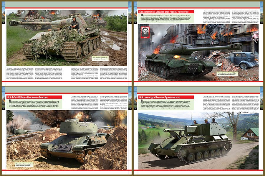 Истории расположены в хронологической последовательности от первого и до последнего дня войны. Благодаря этому у читателя может сложиться целостная картина Великой Отечественной войны, увиденная глазами танкистов. Особую ценность представляют рассказы героев, воевавших на таких малоизвестных современному читателю танках и самоходках как Т-37, БТ, Т-26, Т-28, Т-35, СУ-122. Иллюстрации сделаны с максимальной исторической достоверностью.