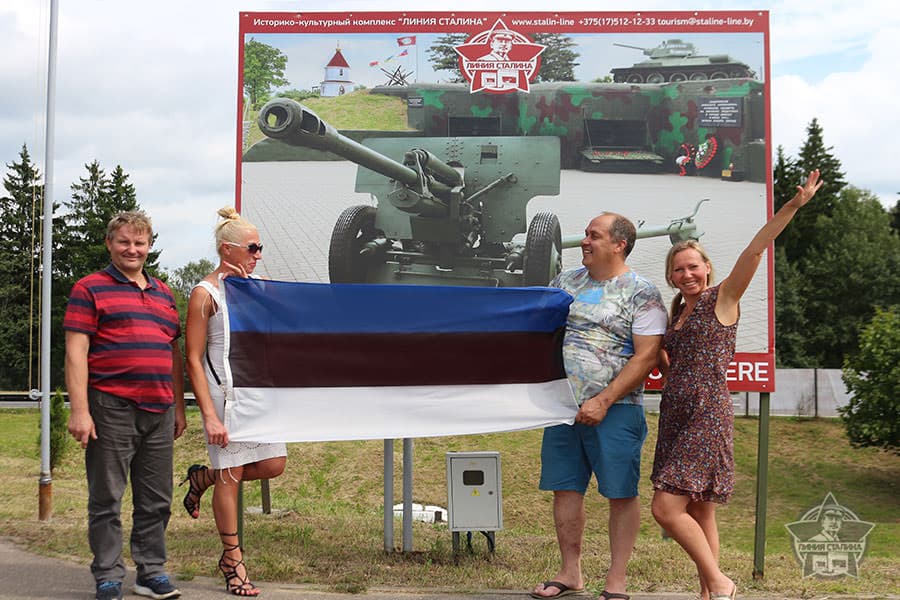 А ещё эстонцы очень любят свой флаг. Однажды, автобус с эстонскими туристами возвращался домой. Проезжая мимо «Линии Сталина», они увидели, как на нашем комплексе среди других развевался и флаг Эстонии. Узнав, что это флаги в честь наших гостей, эстонцы сочли своим долгом… тоже посетить наш музей!