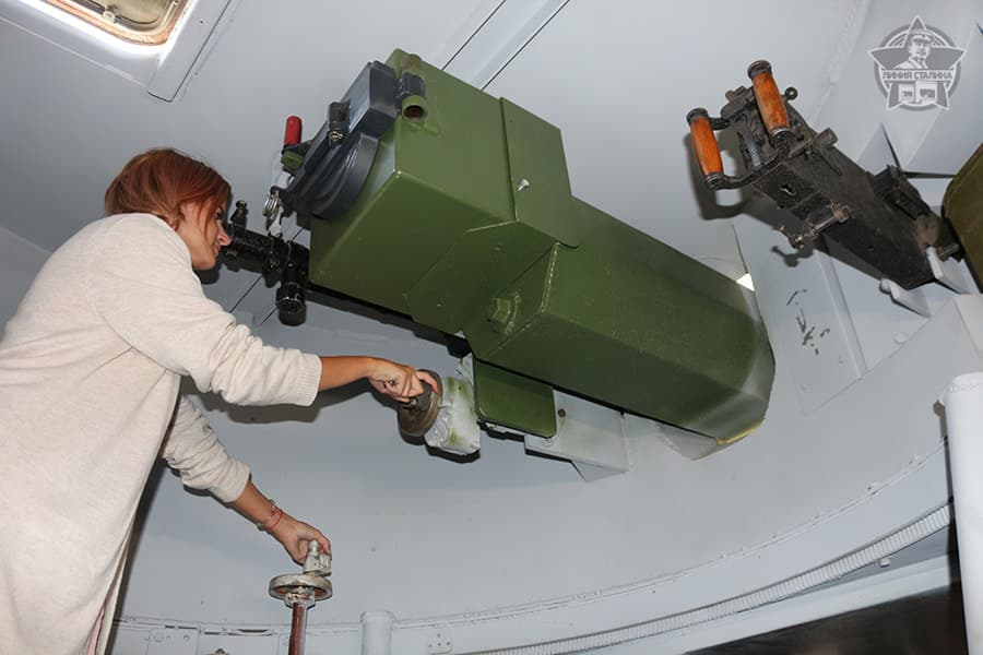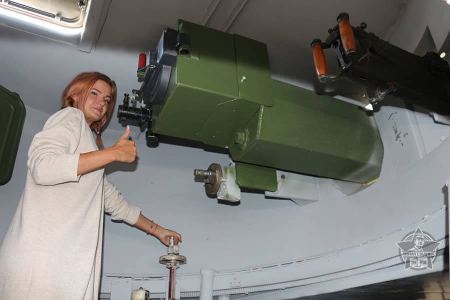 После оплаты услуги посетитель, глядя в настоящий прицел, сам наведёт орудие на цель, поворачивая механизмы горизонтальной и вертикальной наводки.