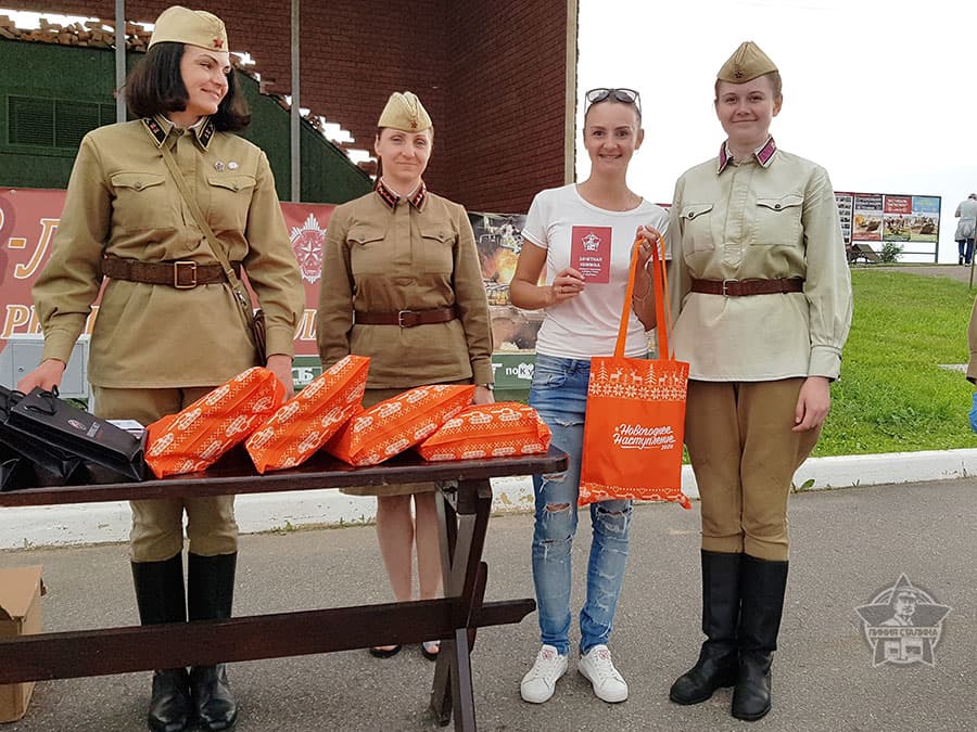 На комплексе работала бесплатная фотозона, где можно было сфотографироваться с воинами на фоне праздничного баннера.