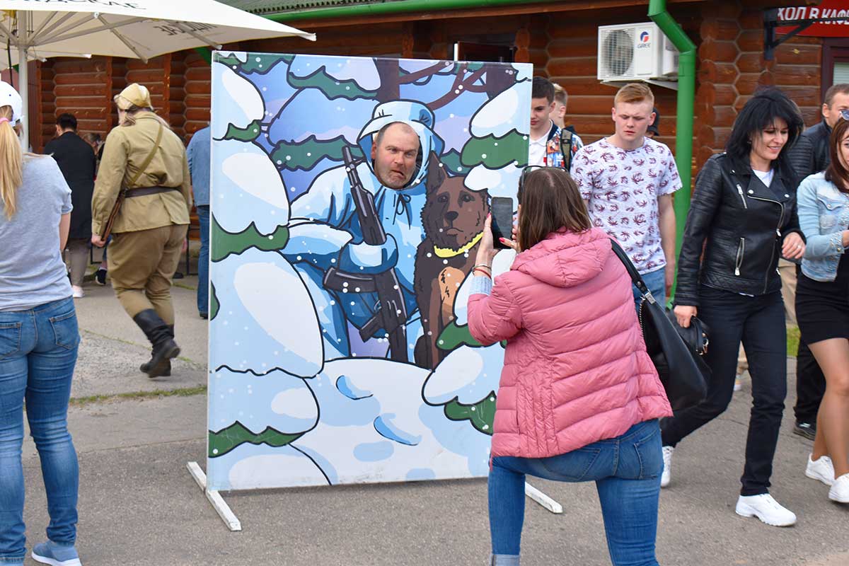 В этот день можно было бесплатно сфотографироваться с оружием Победы на фоне праздничного баннера.