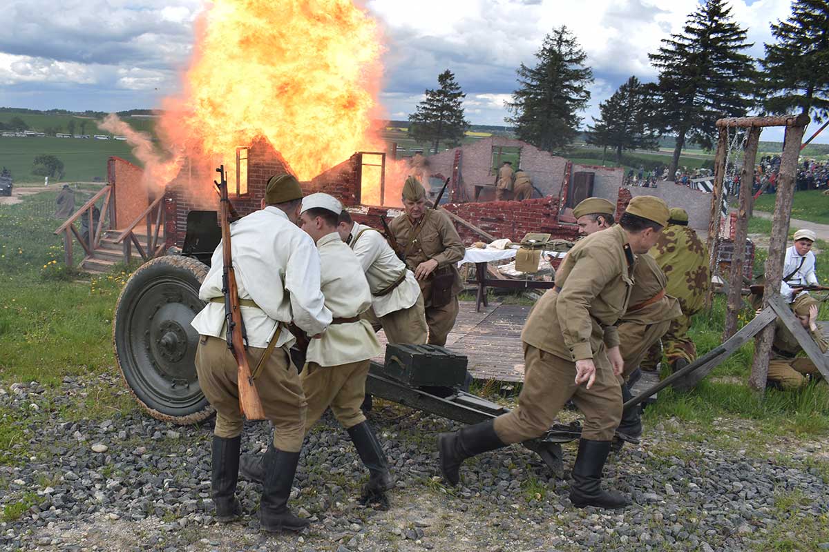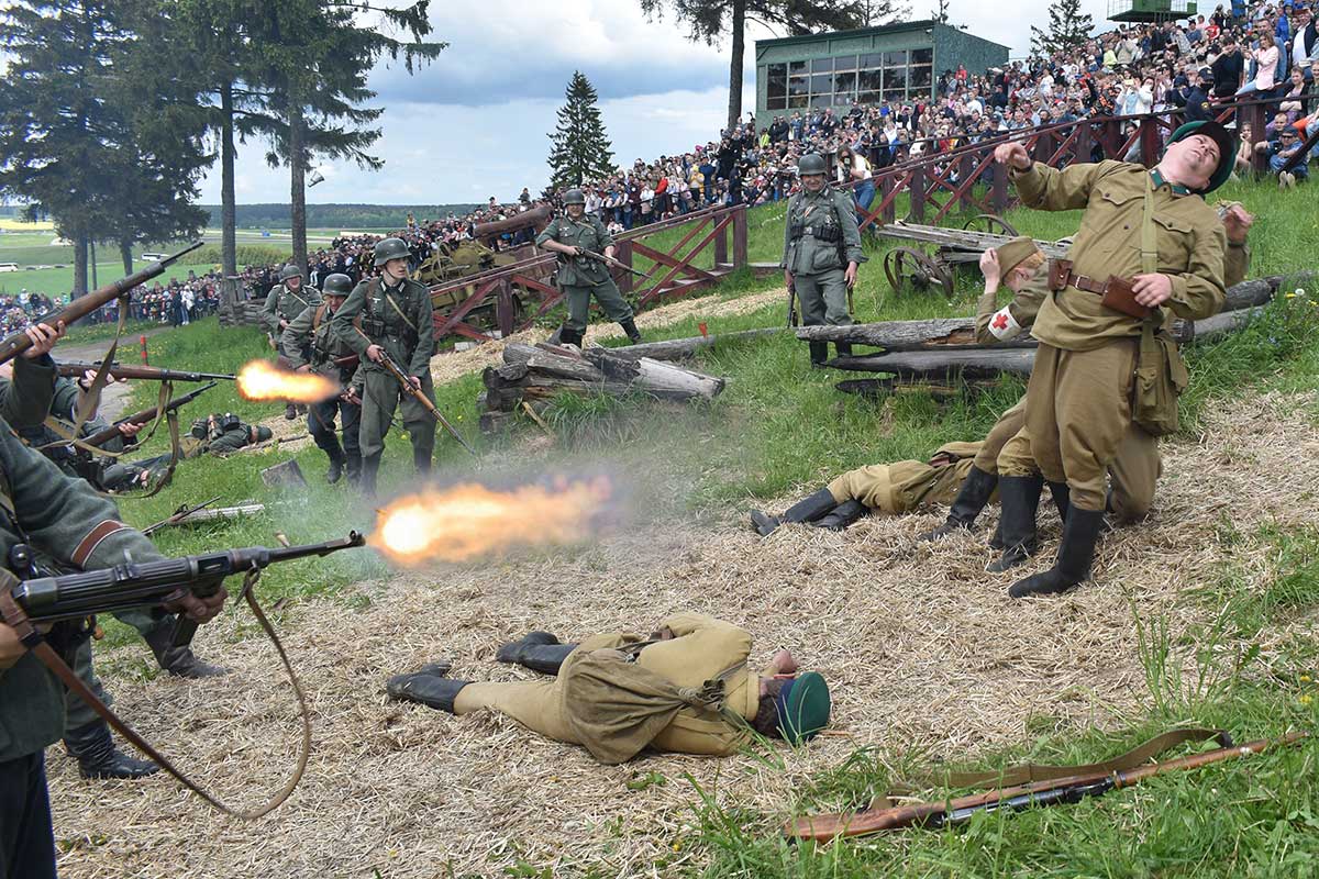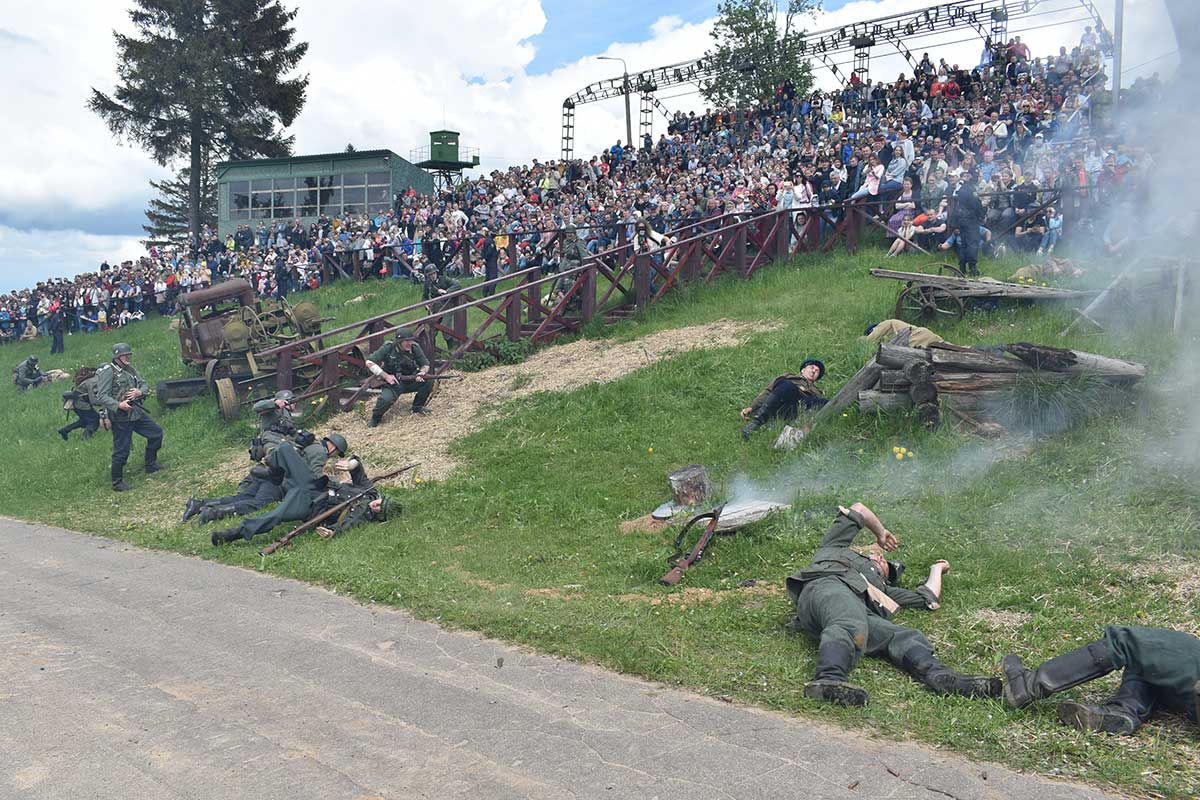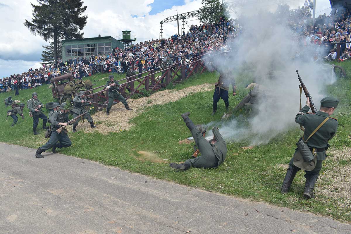 В 14:00 началась реконструкция событий объединения в сентябре 1939 года белорусских земель в составе одной республики, демаркации границы между СССР и Германией с установкой пограничных столбов и налаживанием порядка пропуска местных жителей.