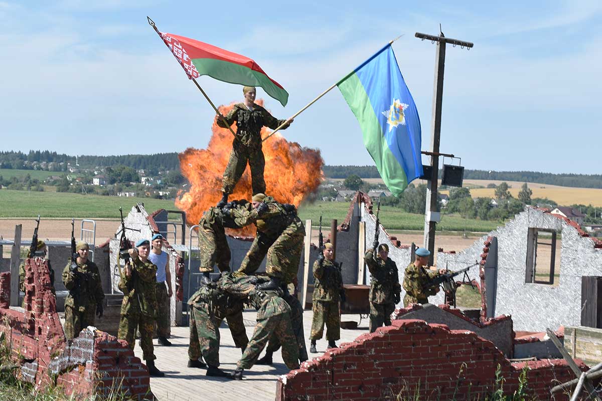 Выступали кинологи, парашютисты и бойцы ВСО.
