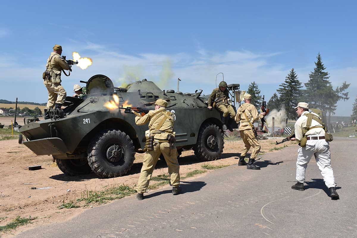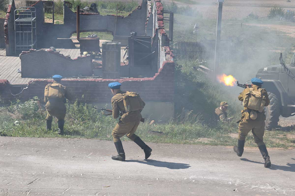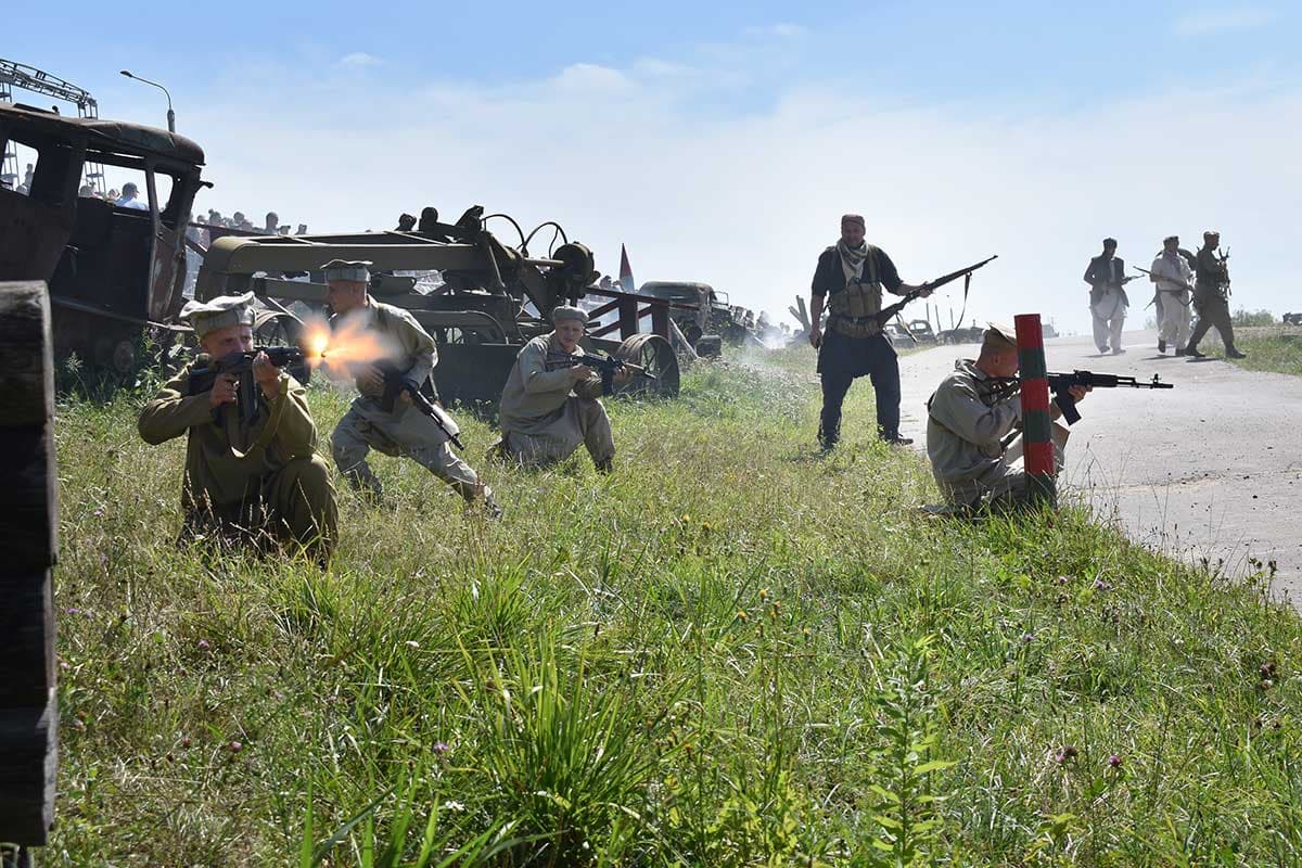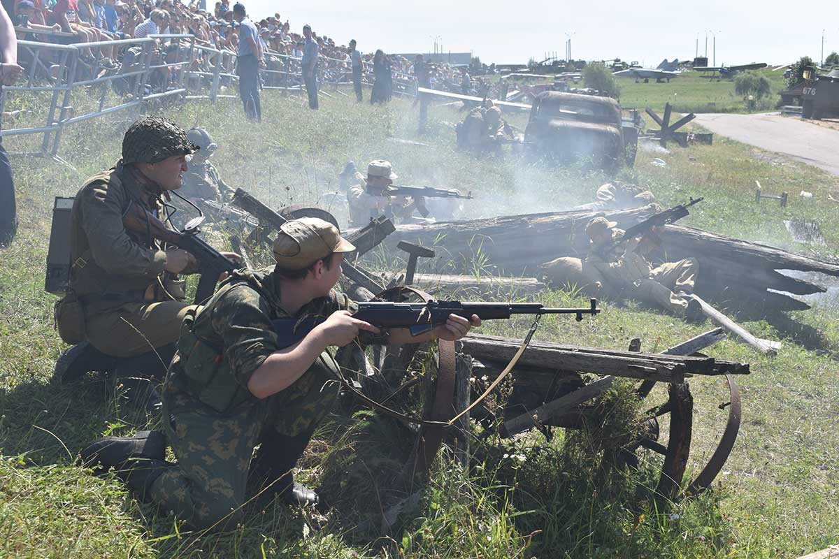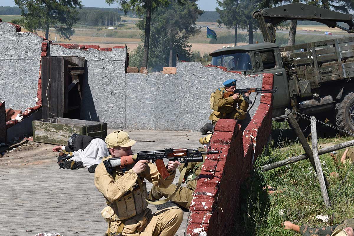 В 14:30 началась реконструкция боя Афганской войны, в которой приняли участие боевые вертолёты Ми-24.
