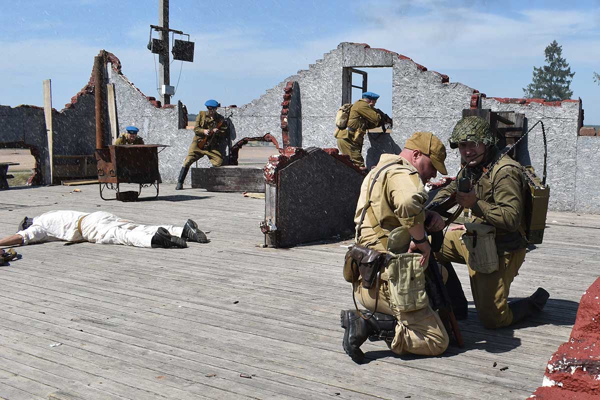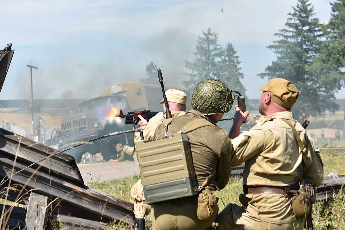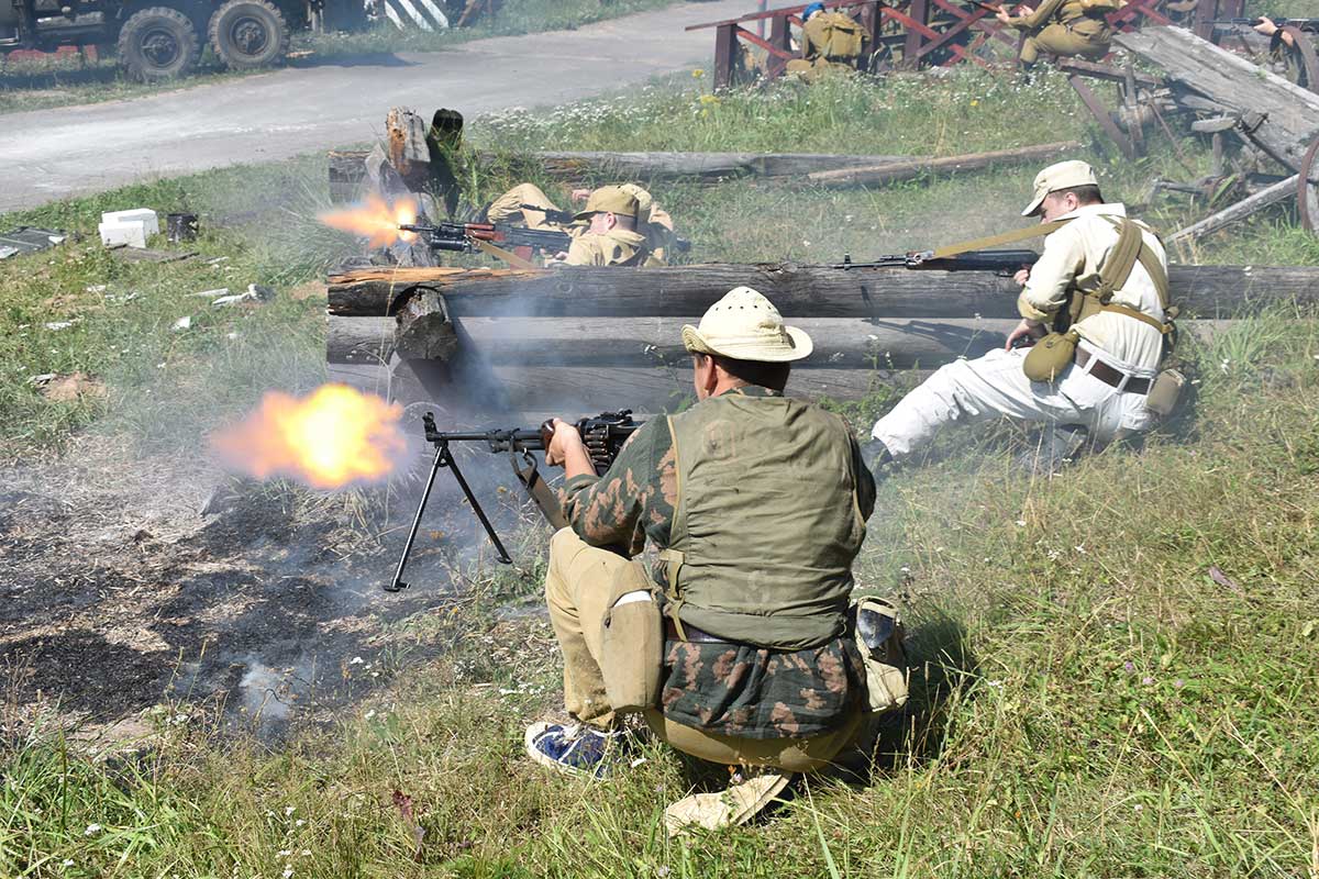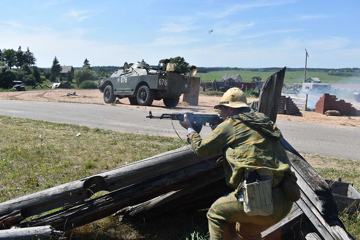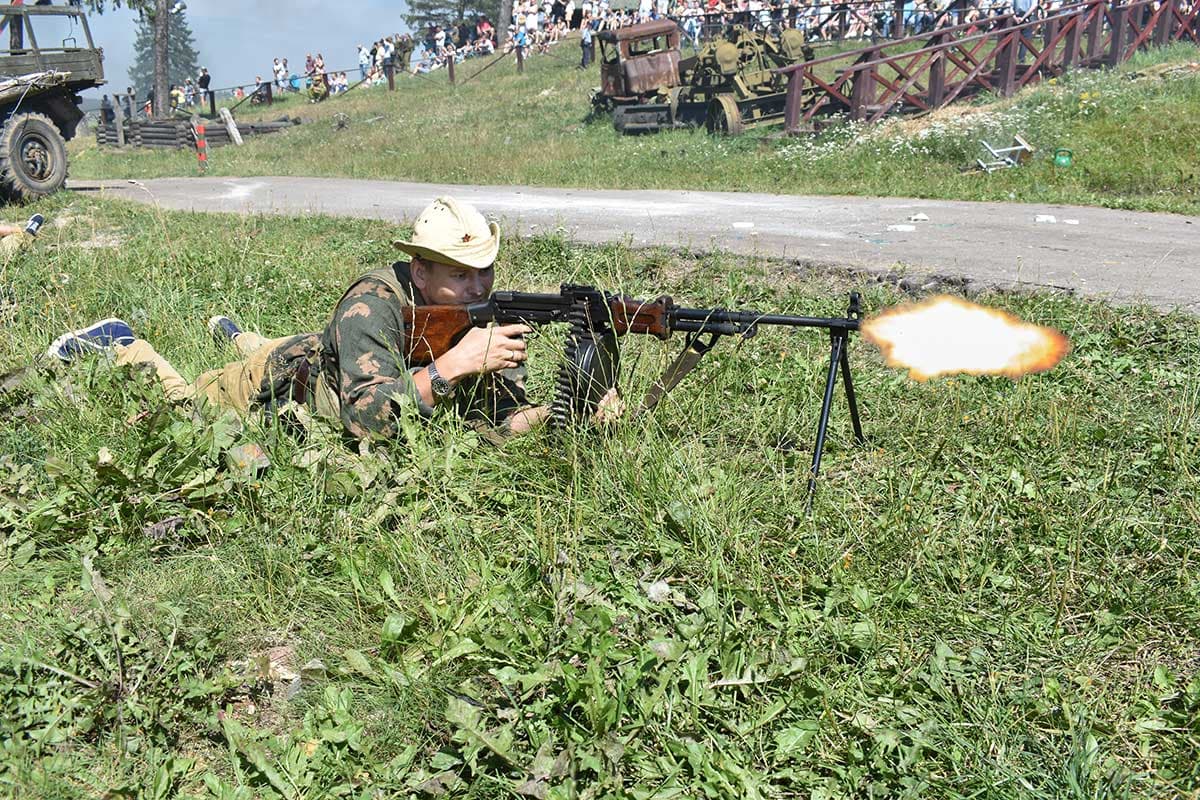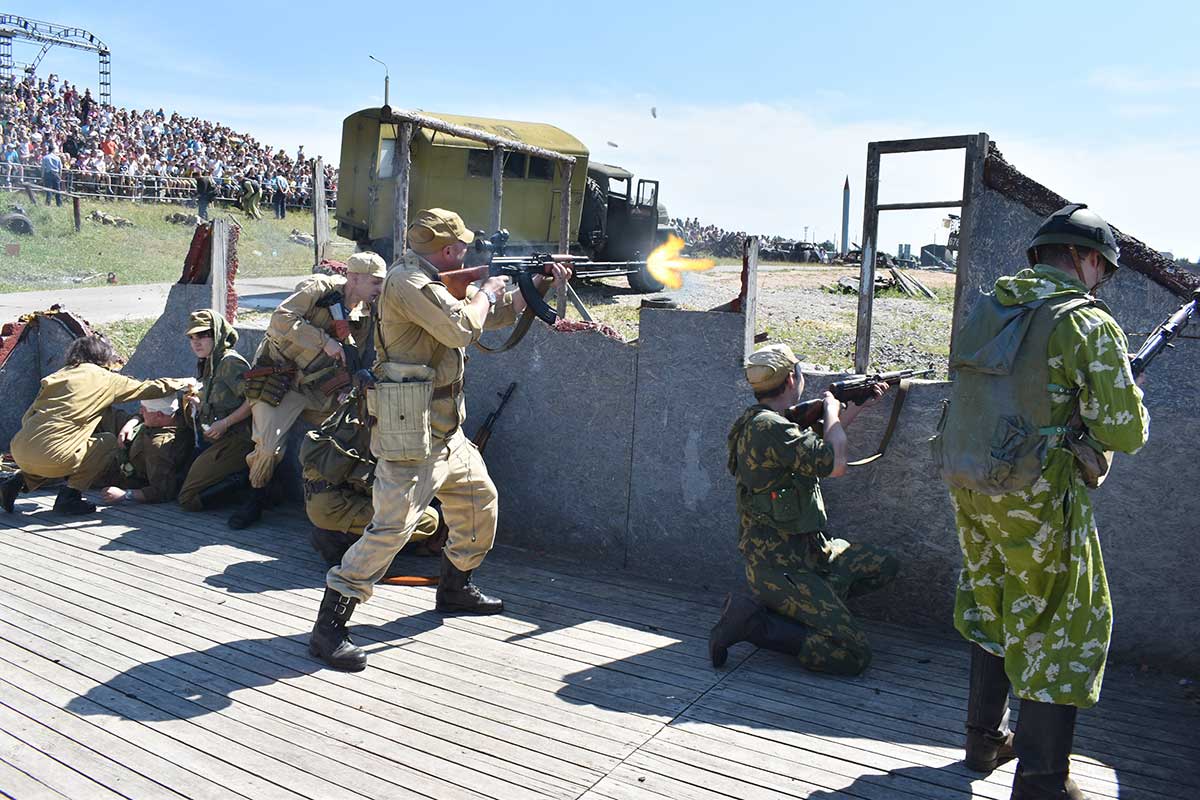 В 14:30 началась реконструкция боя Афганской войны, в которой приняли участие боевые вертолёты Ми-24.
