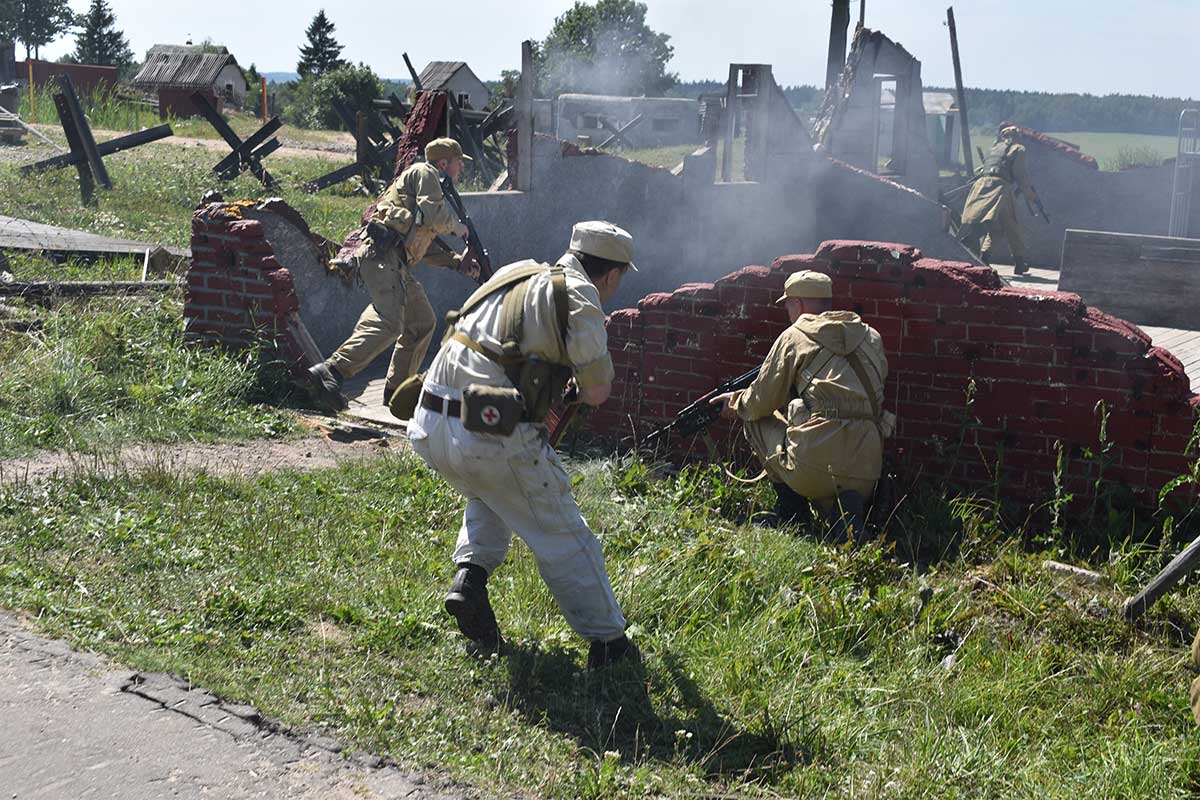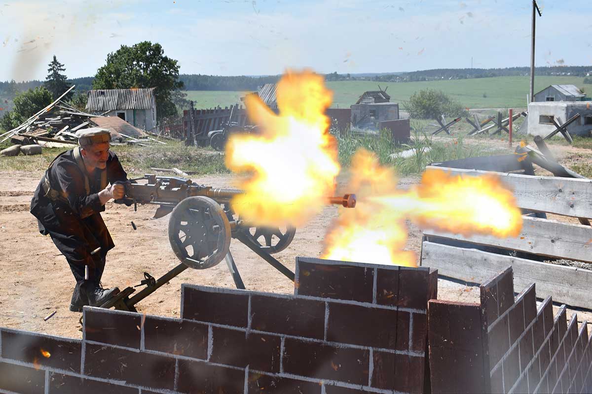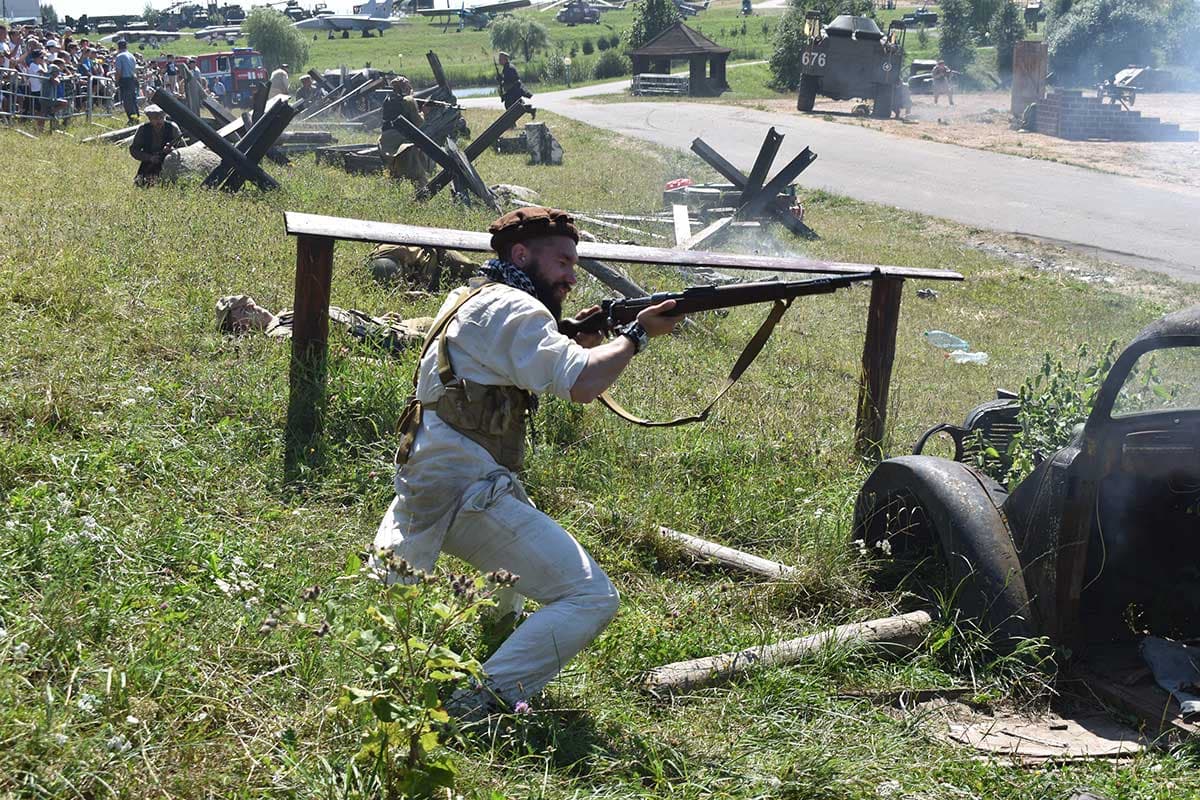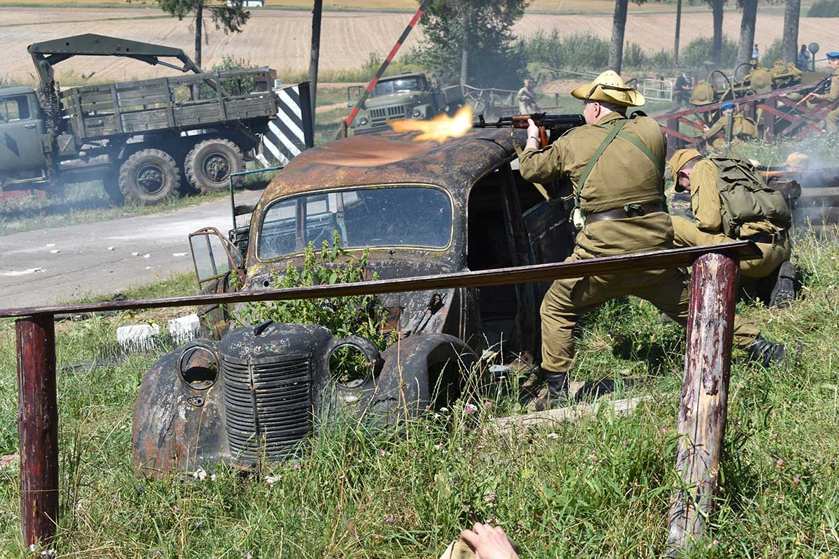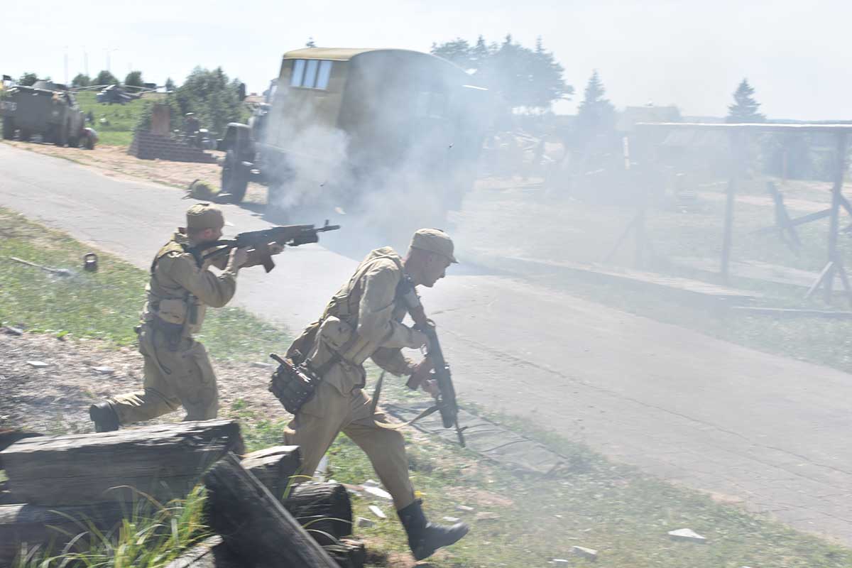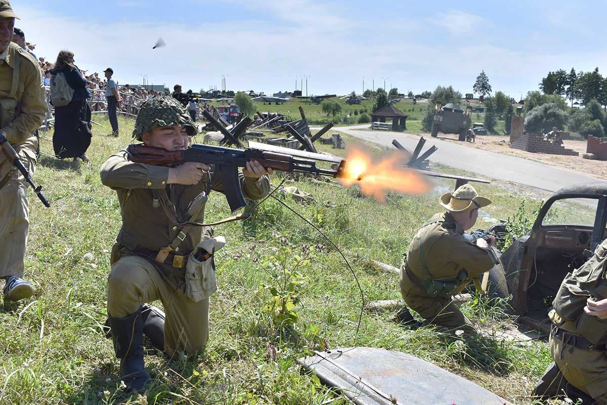 В 14:30 началась реконструкция боя Афганской войны, в которой приняли участие боевые вертолёты Ми-24.