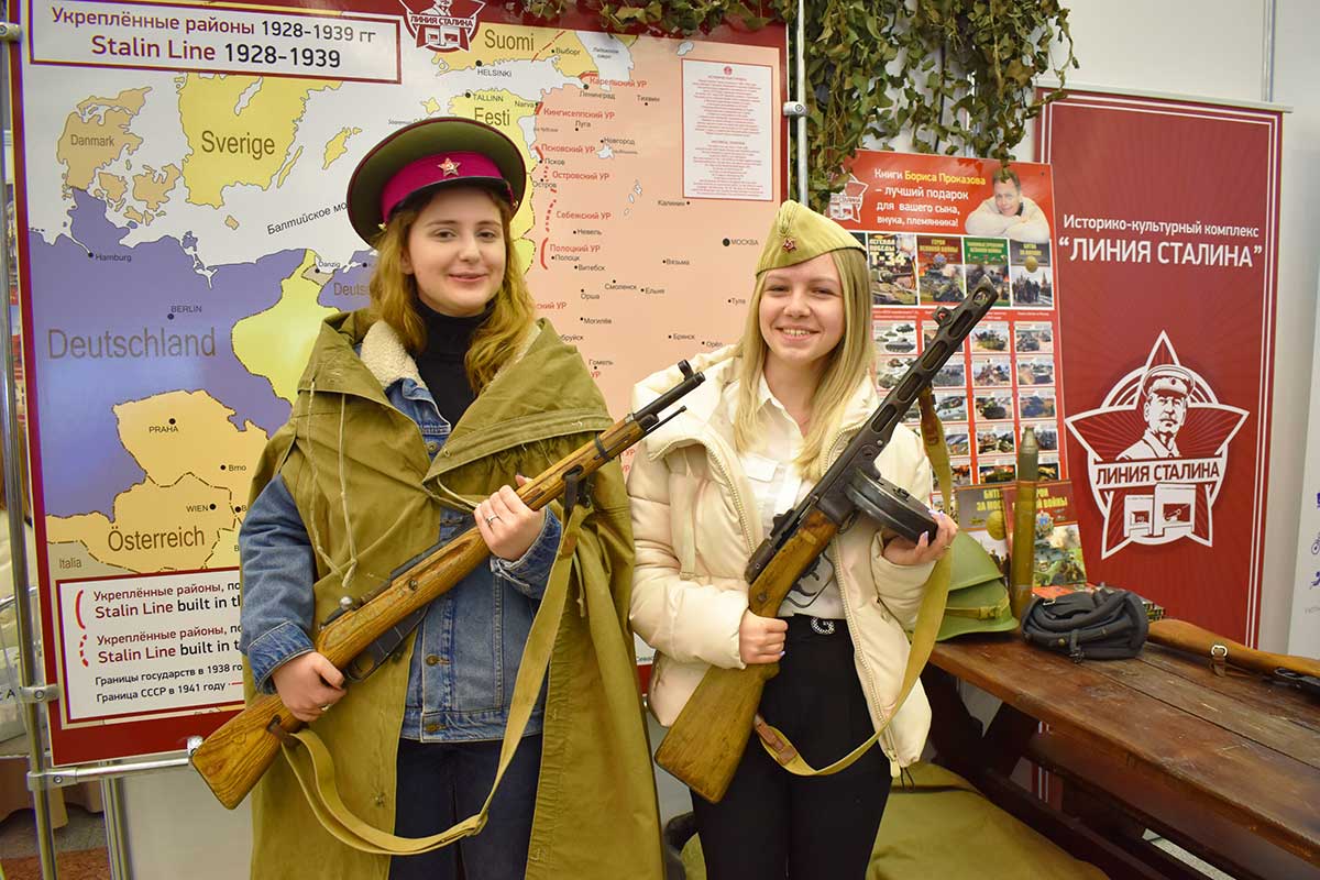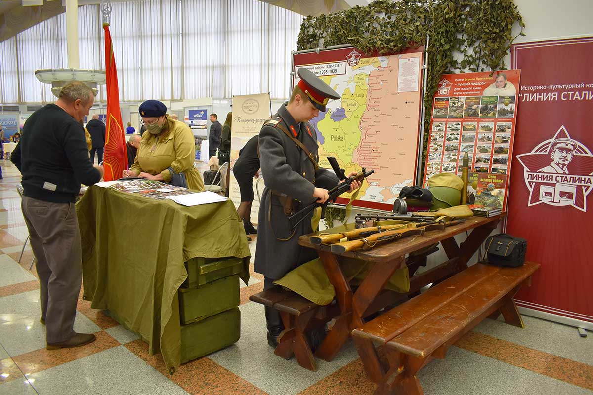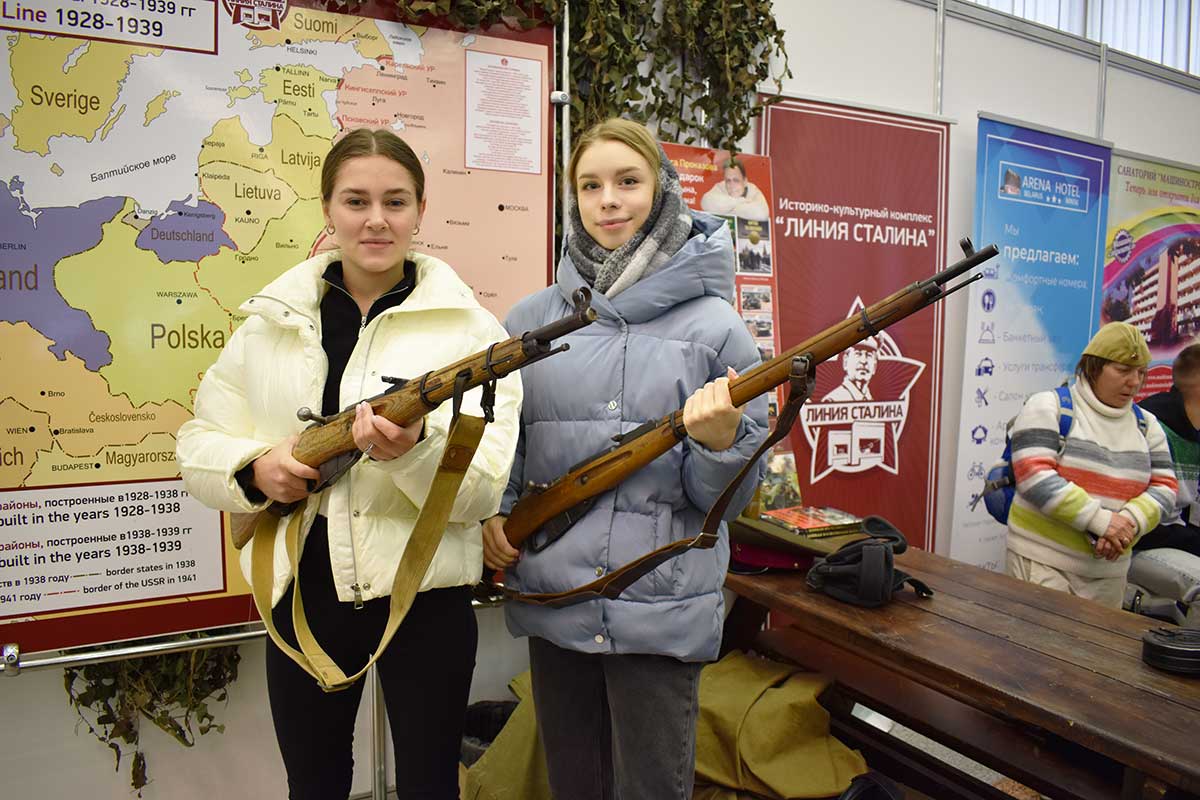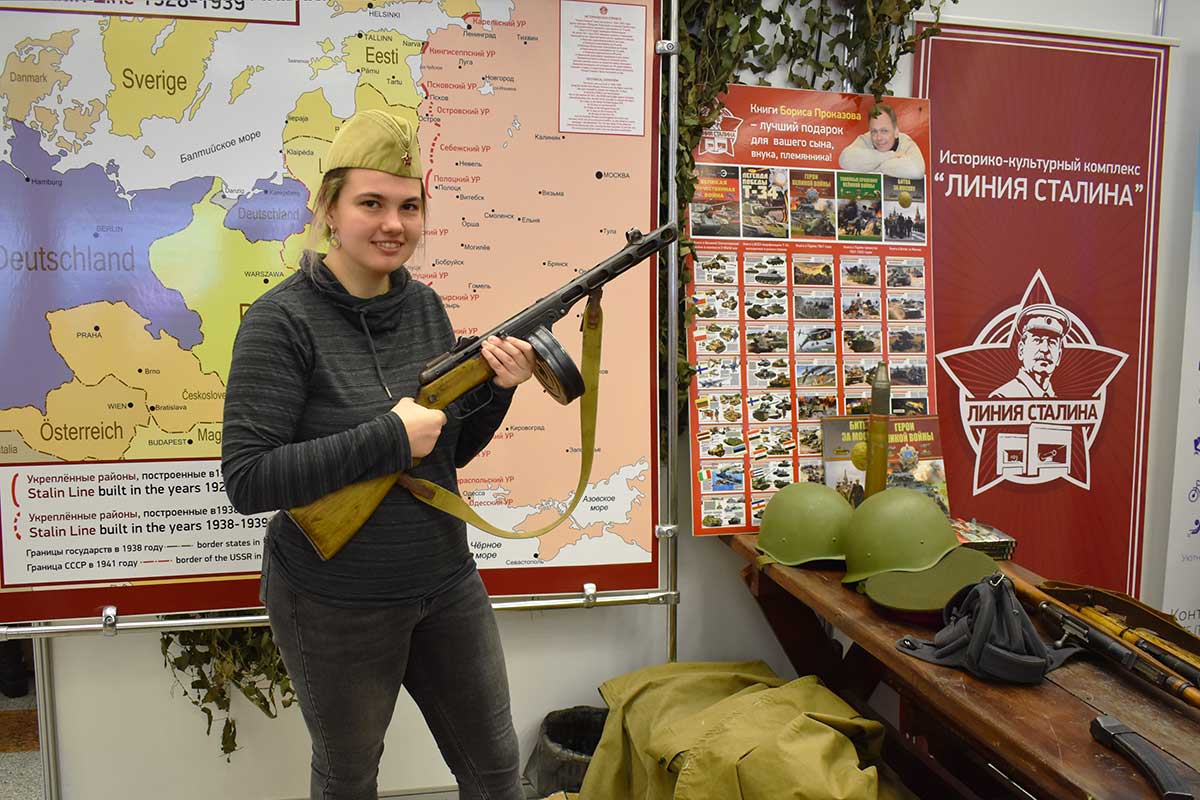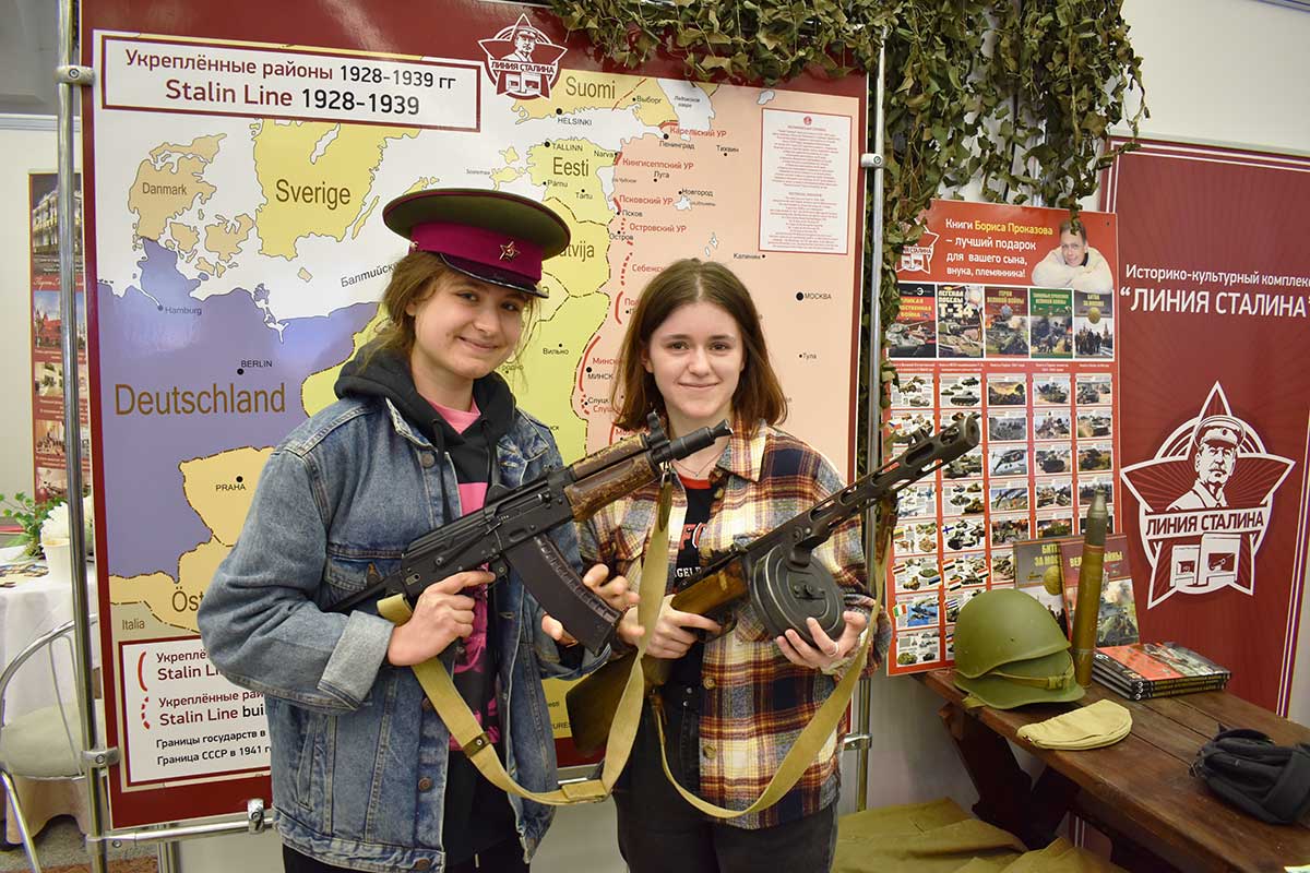У стенда «Линии Сталина» гости могли не только ознакомиться с работой нашего историко-культурного комплекса, но и культурно прикоснуться к истории, произвести разборку-сборку оружия.