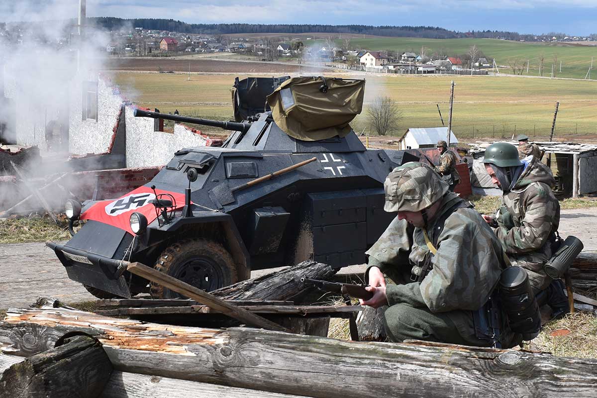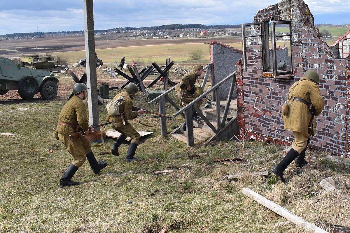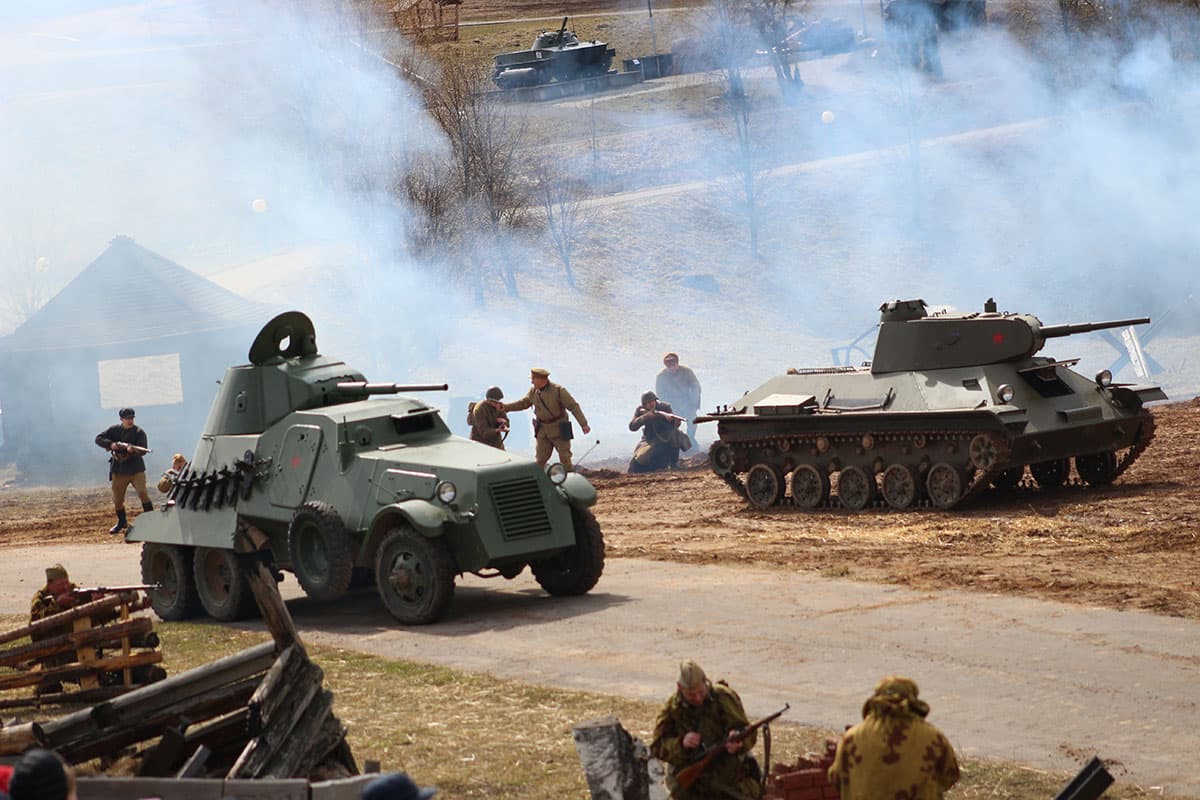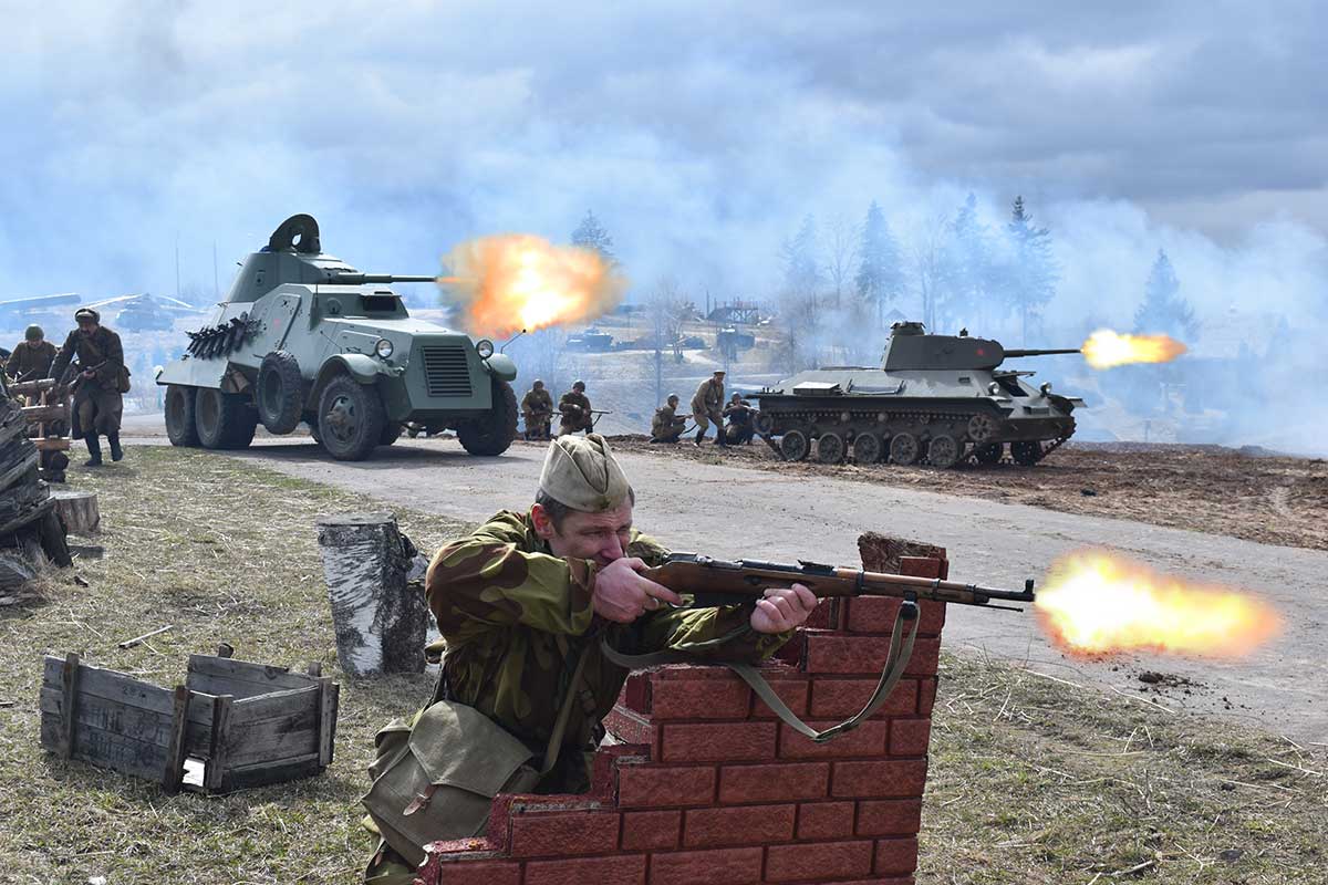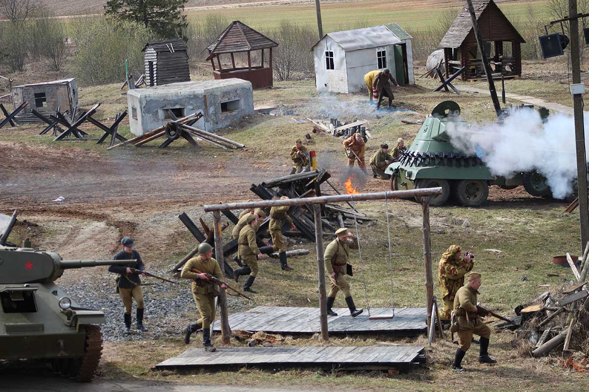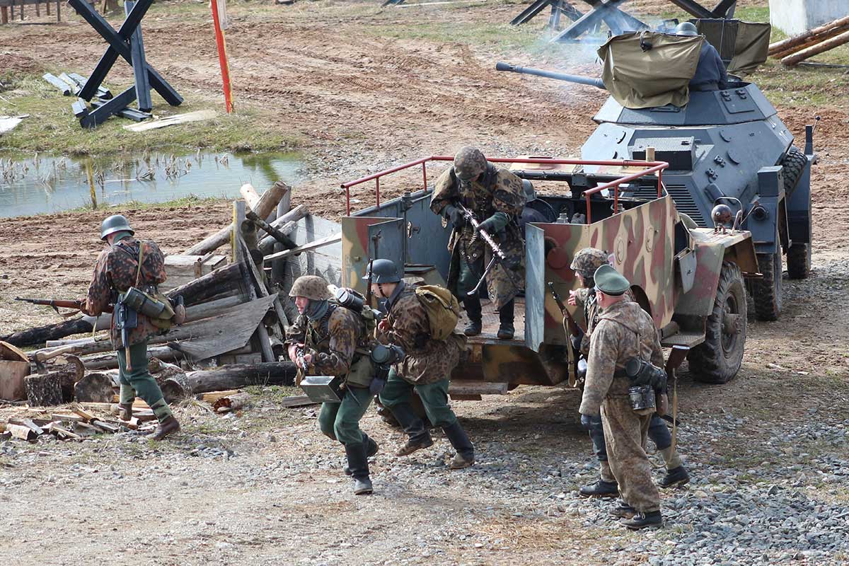В 14:00 началась реконструкция боя Великой Отечественной войны.