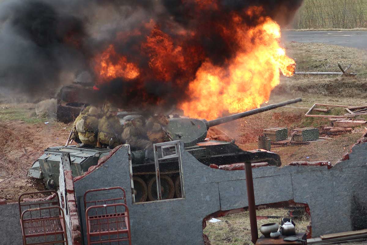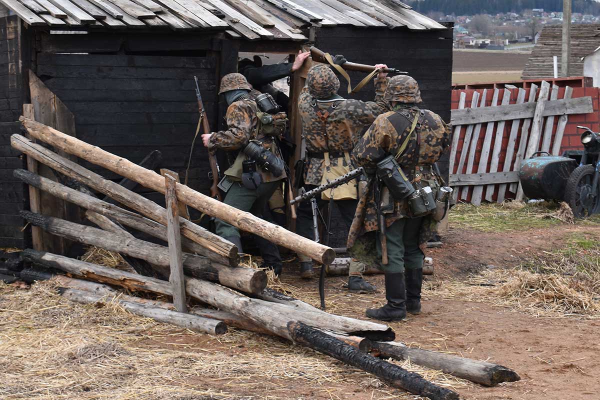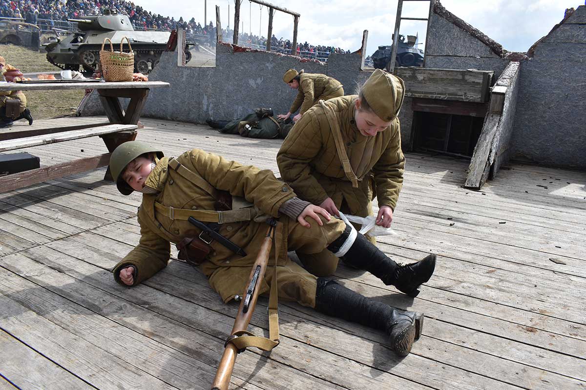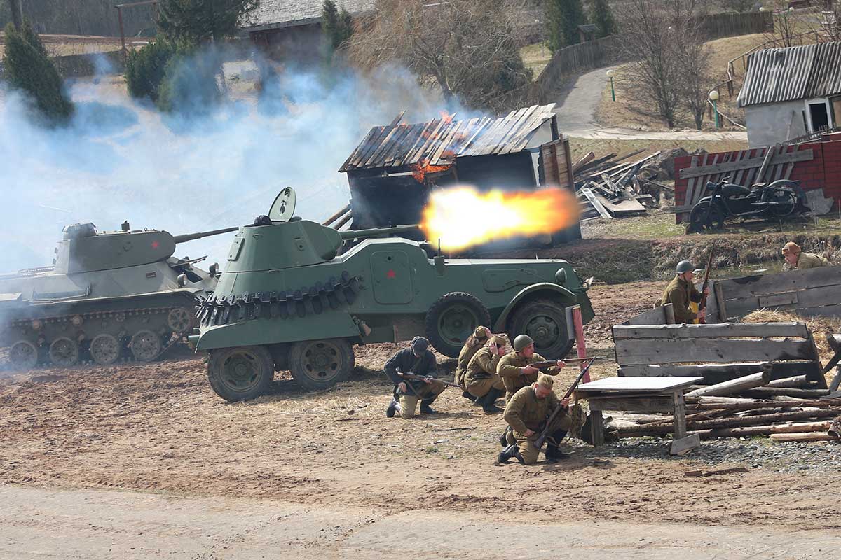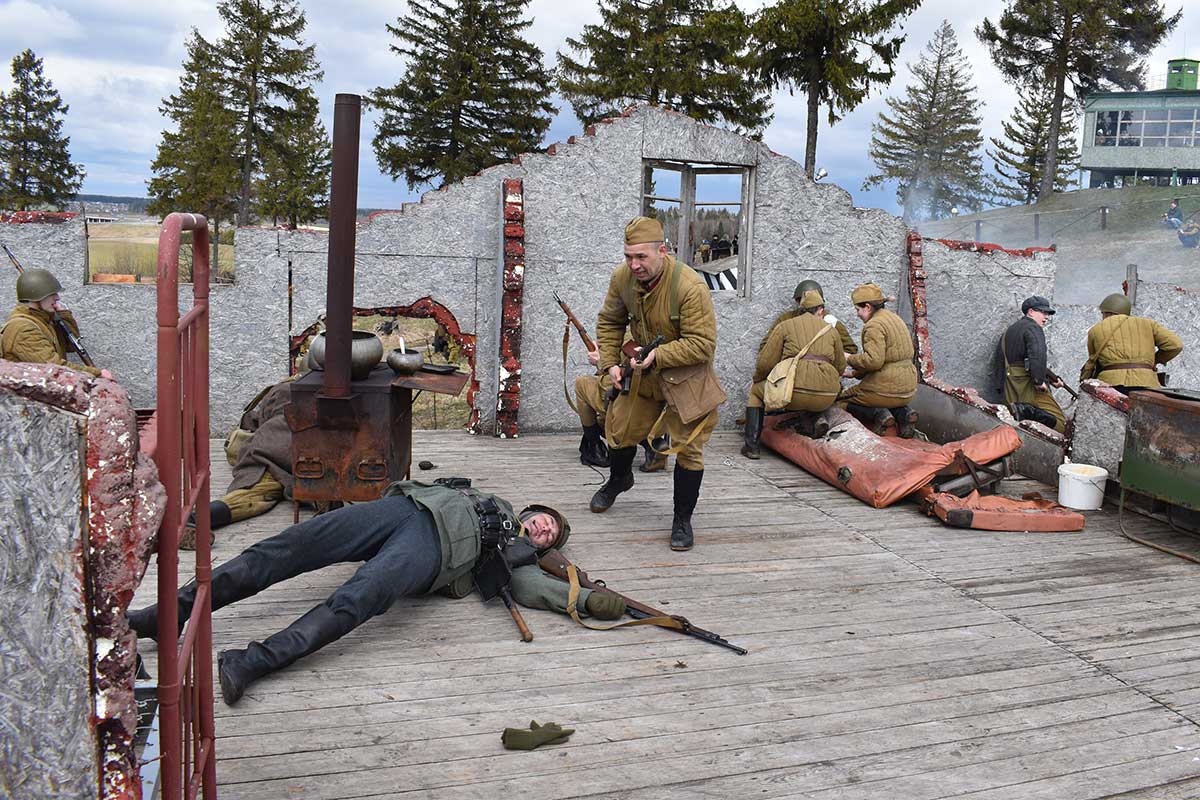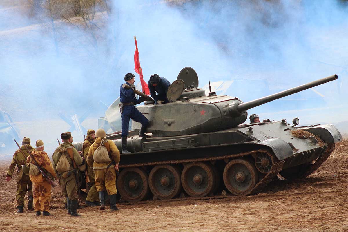 В 14:00 началась реконструкция боя Великой Отечественной войны.