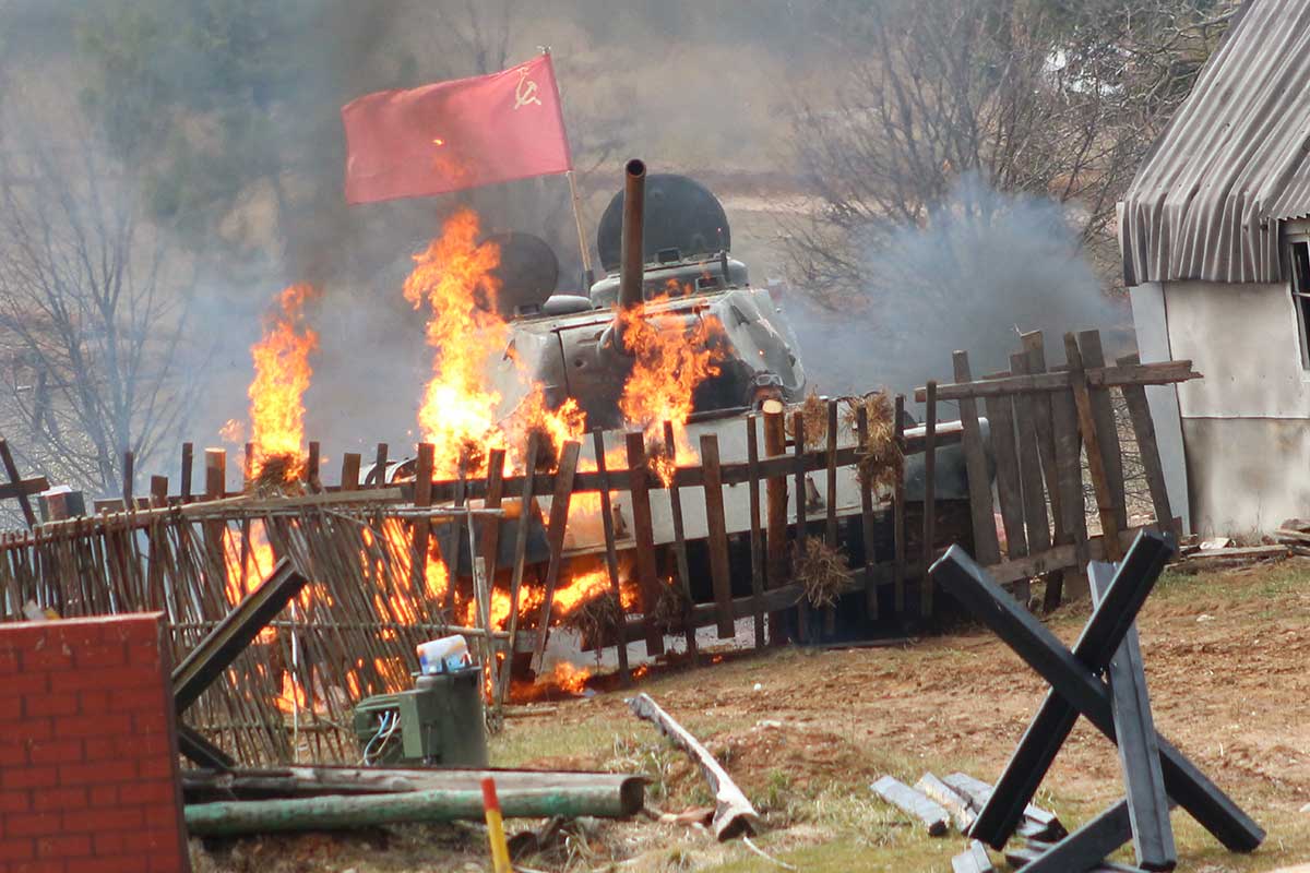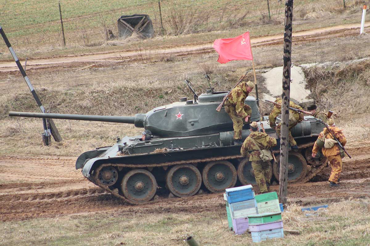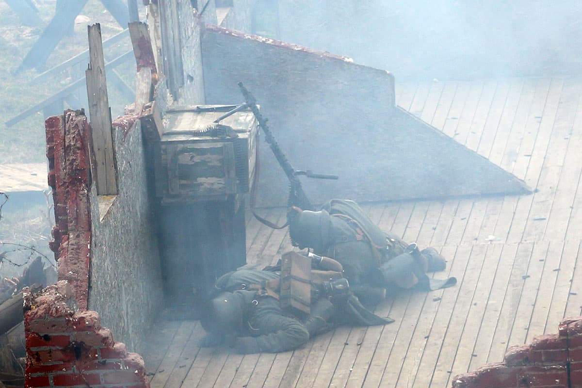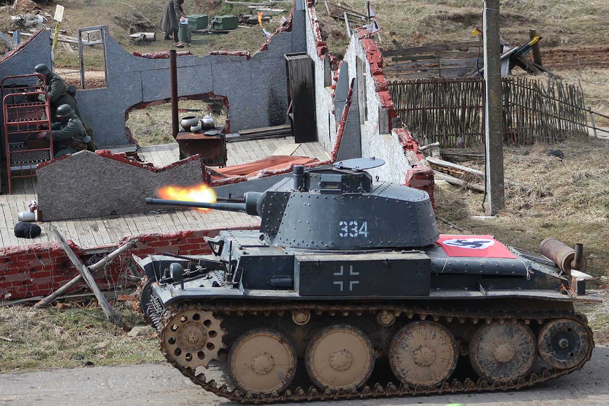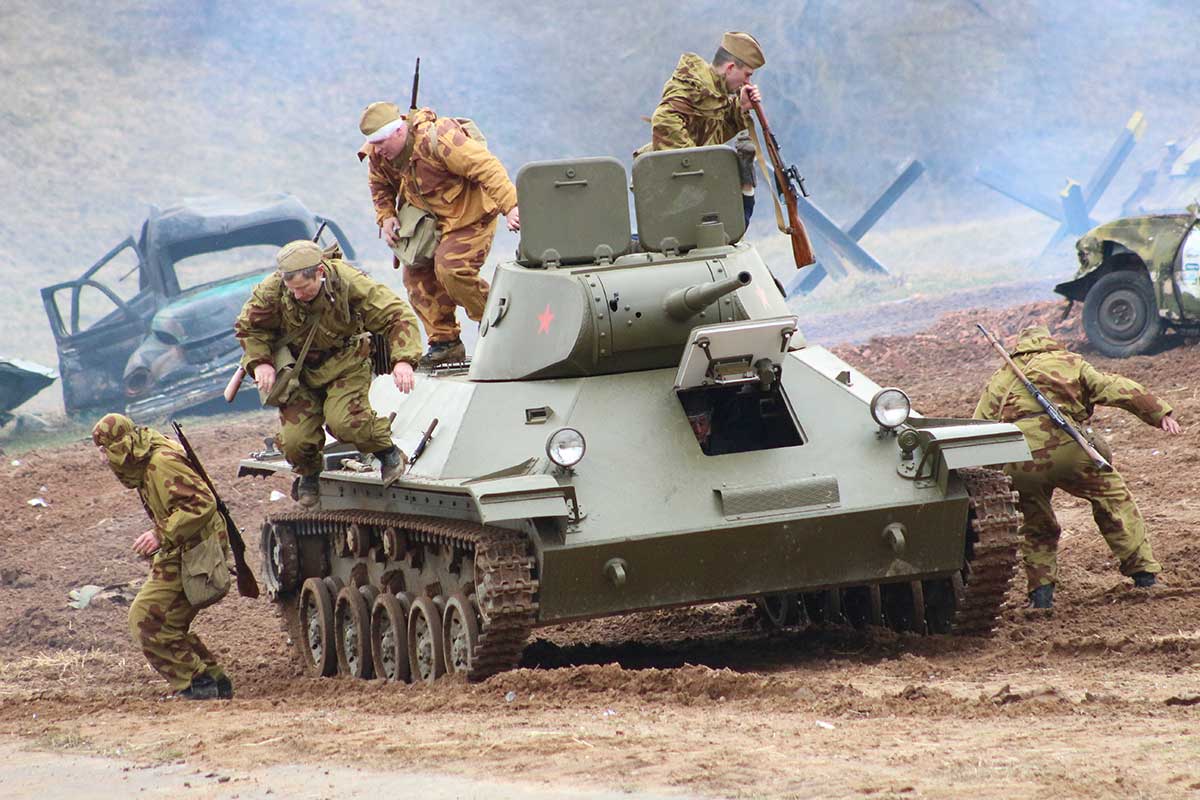 В 14:00 началась реконструкция боя Великой Отечественной войны.