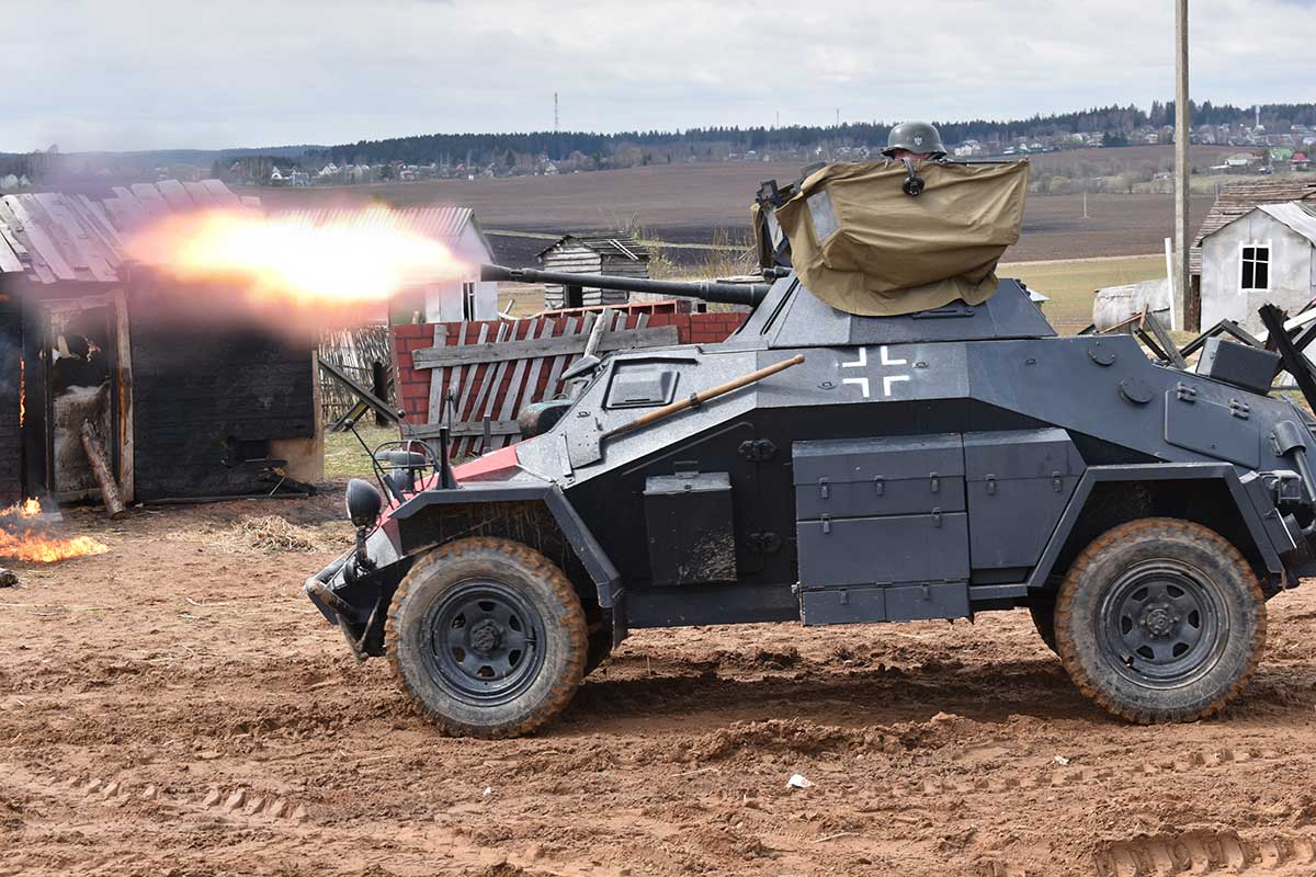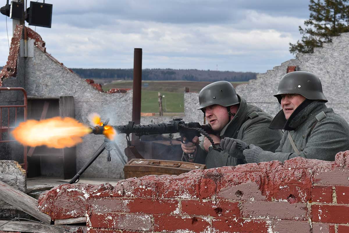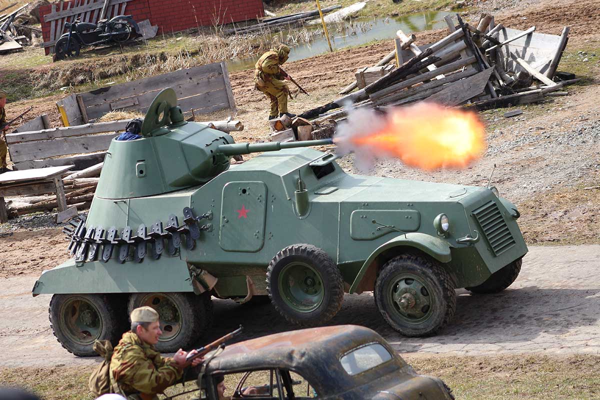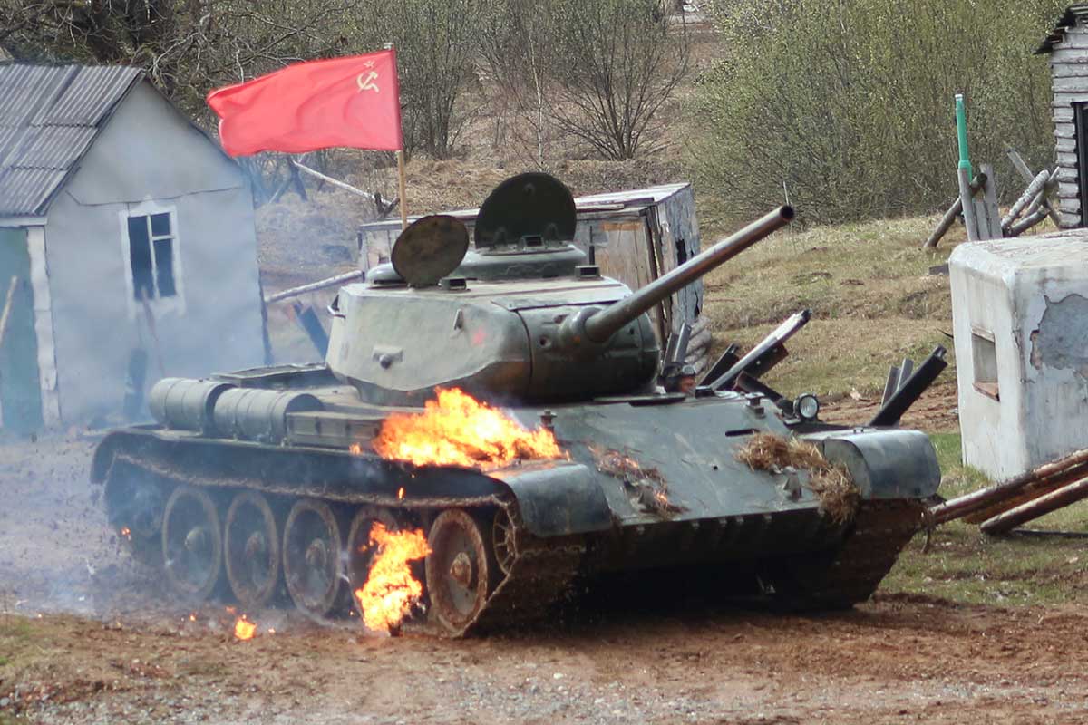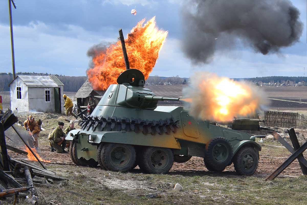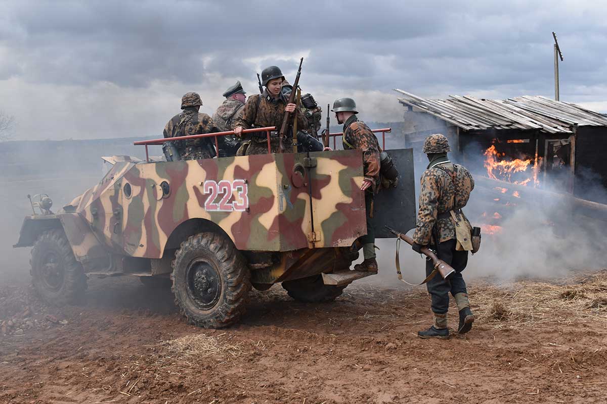 В 14:00 началась реконструкция боя Великой Отечественной войны.
