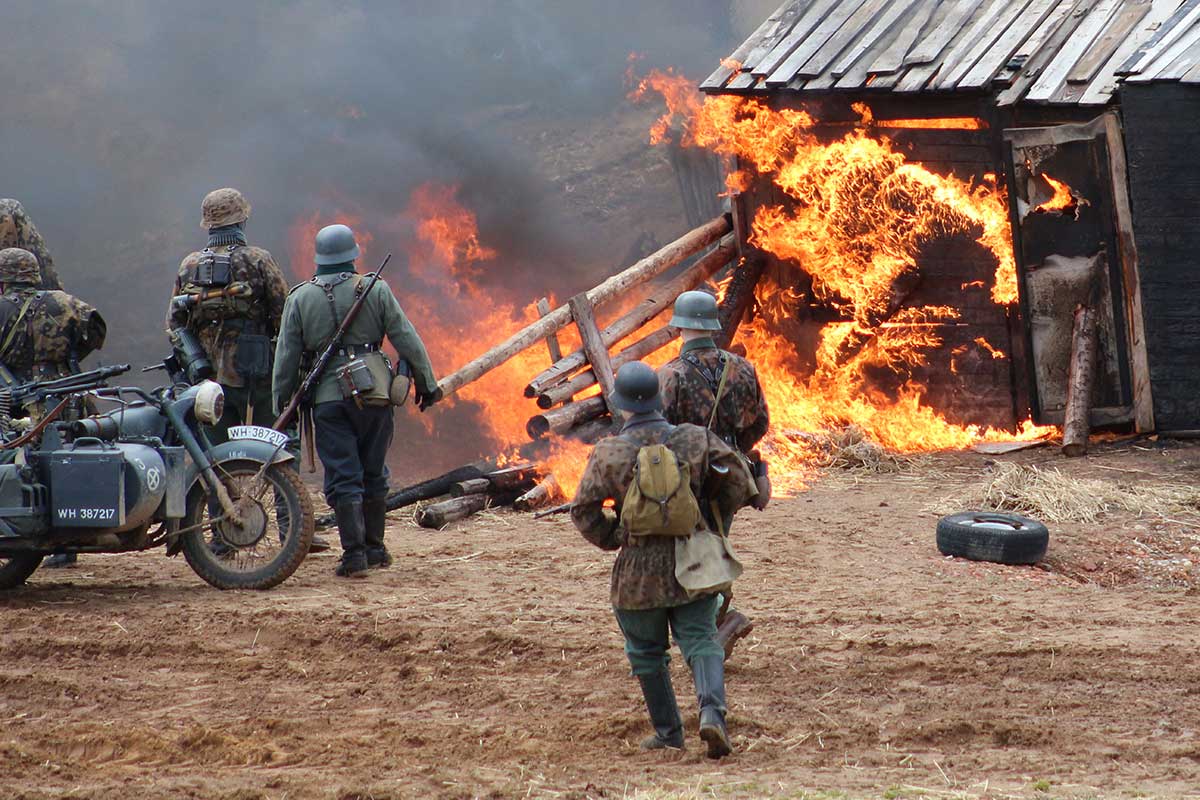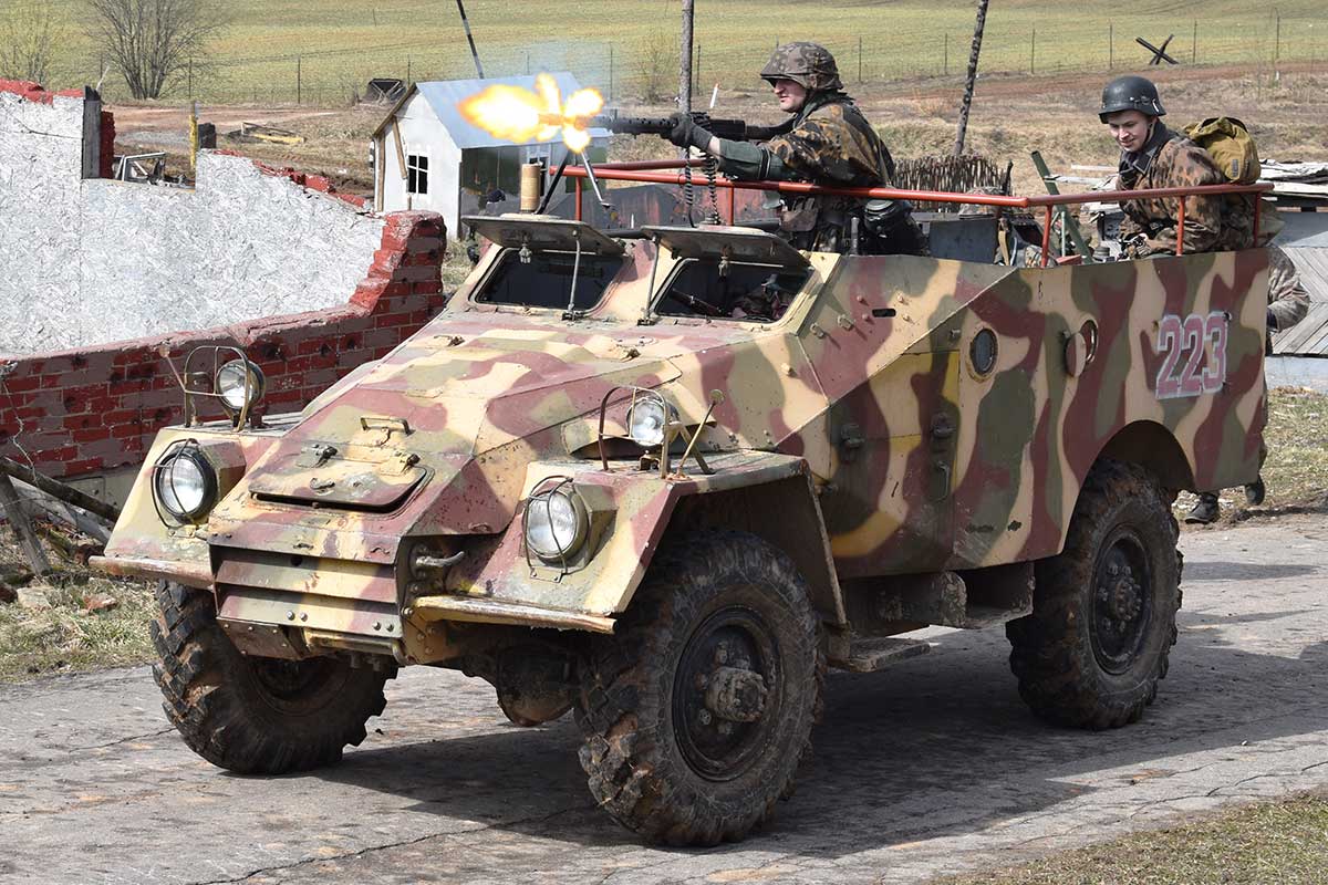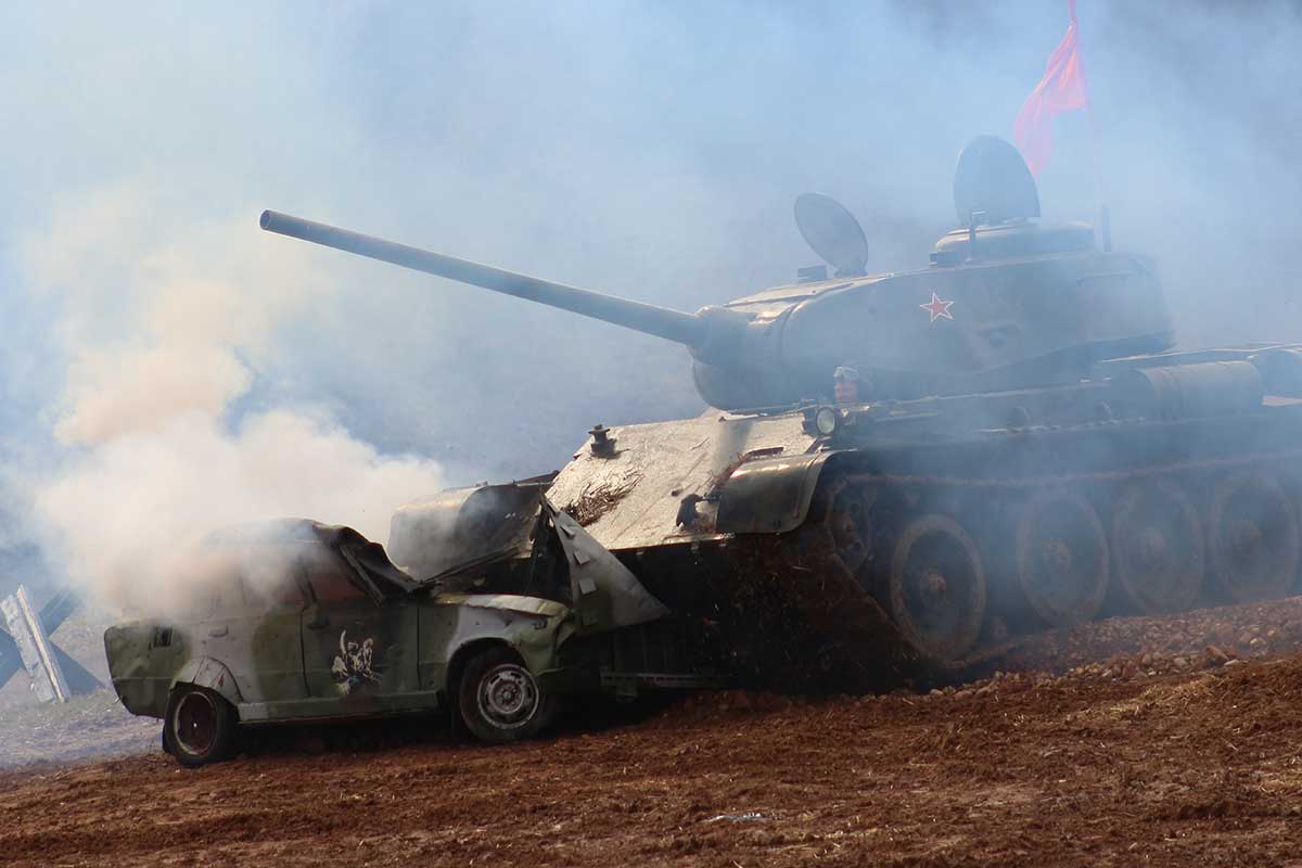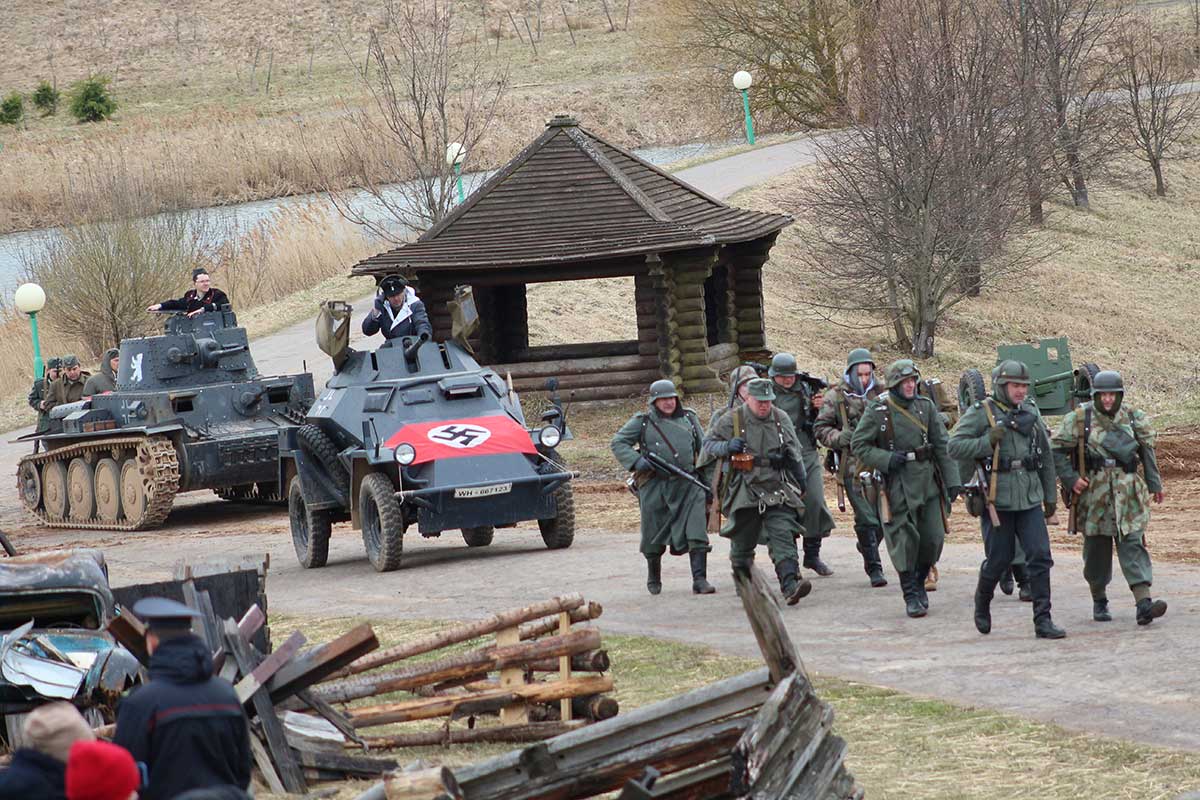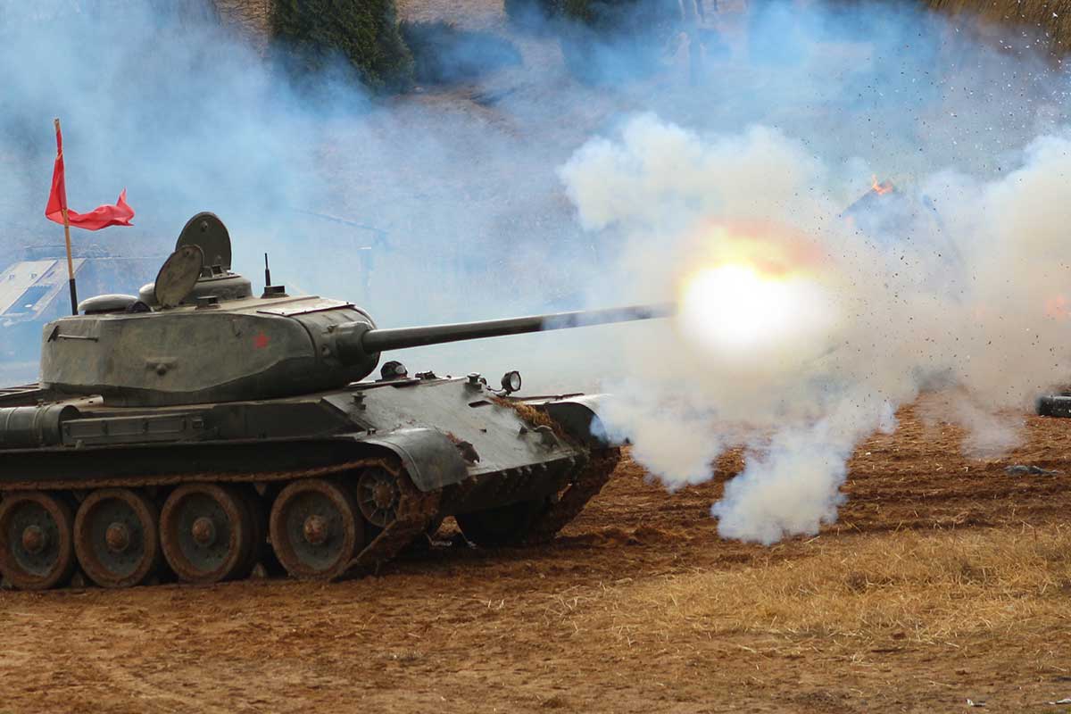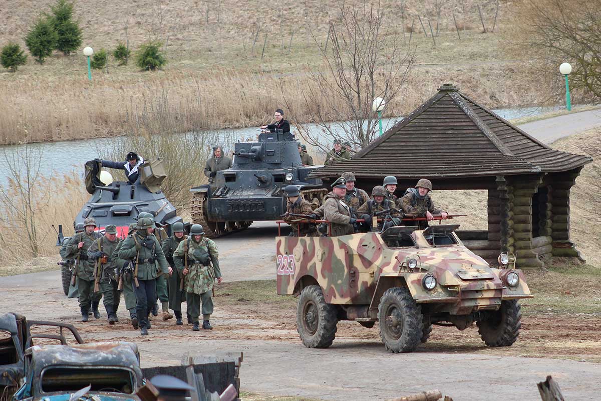 В 14:00 началась реконструкция боя Великой Отечественной войны.