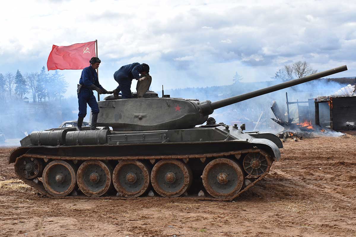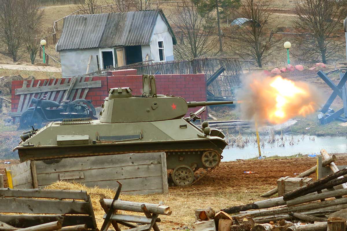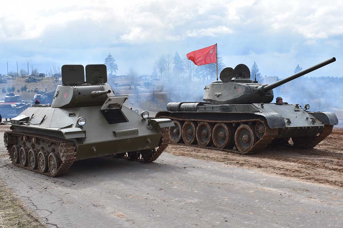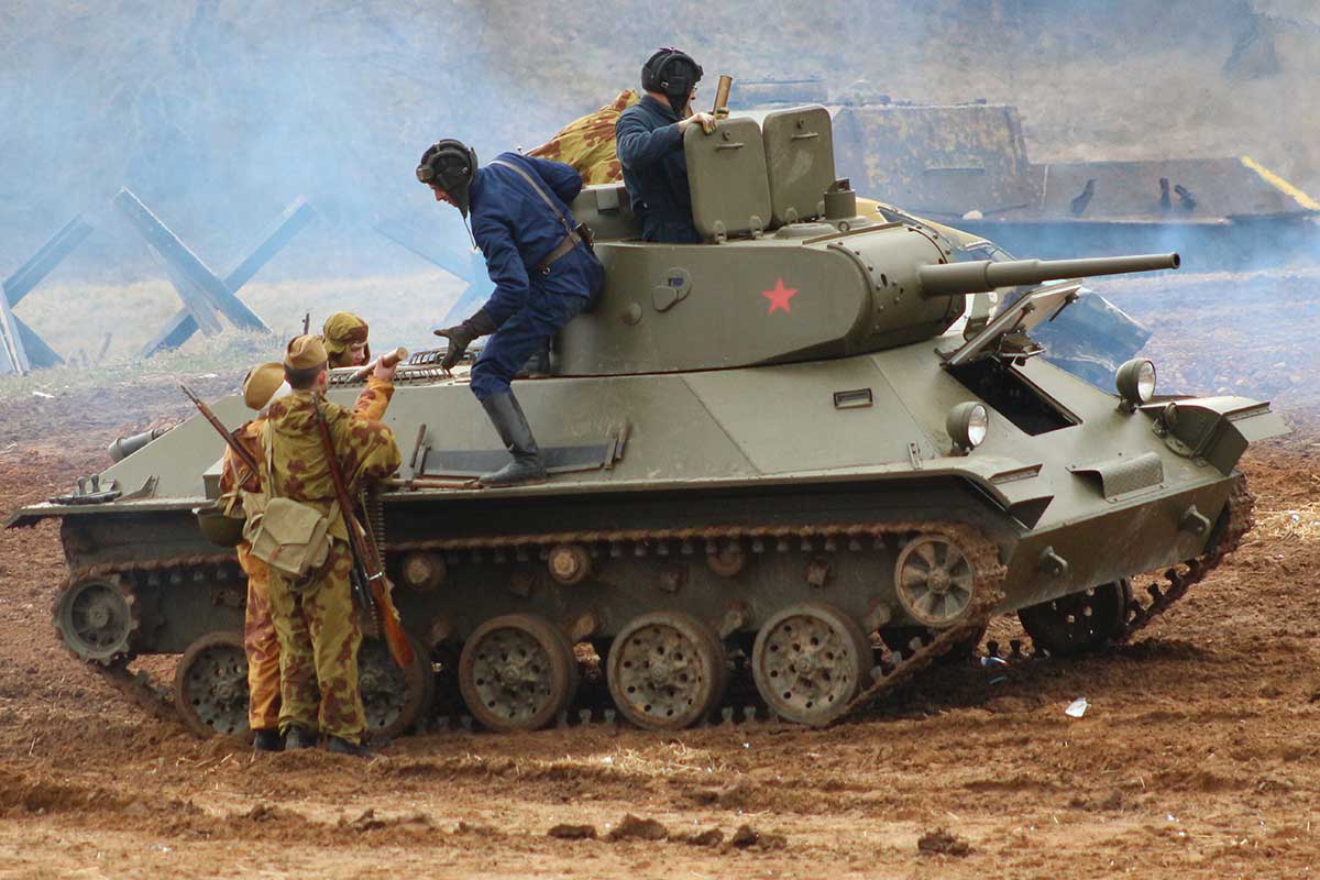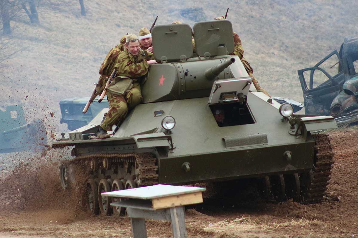 Затем состояли показательные выступления среднего танка Т-44 и копии лёгкого танка Т-50, недавно созданной на «Линии Сталина».