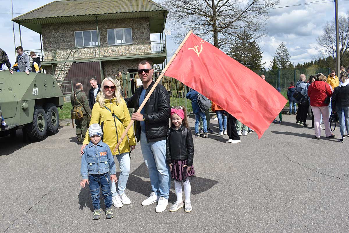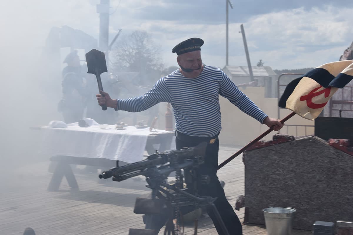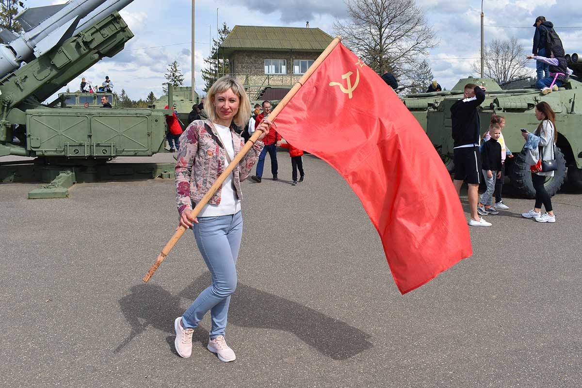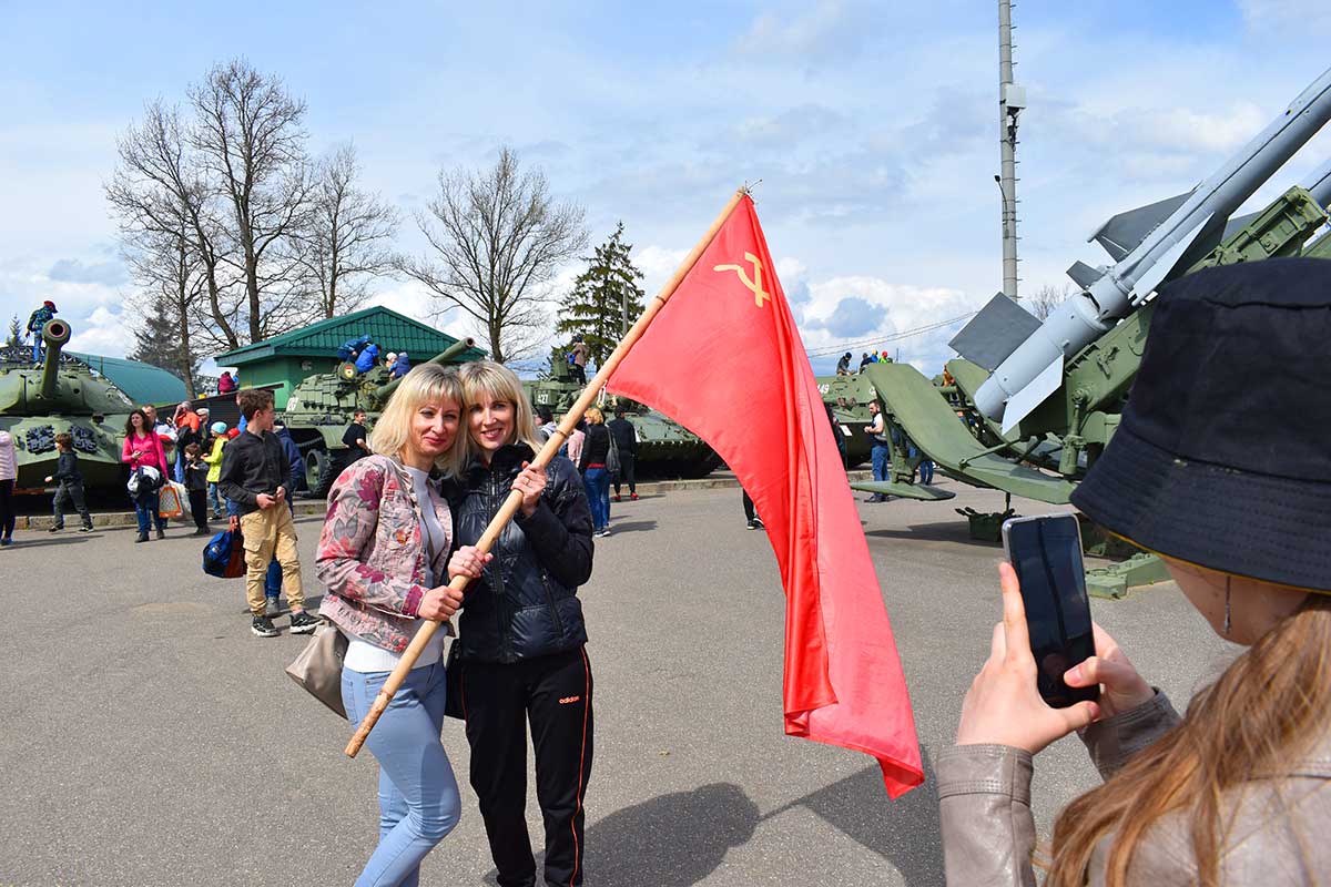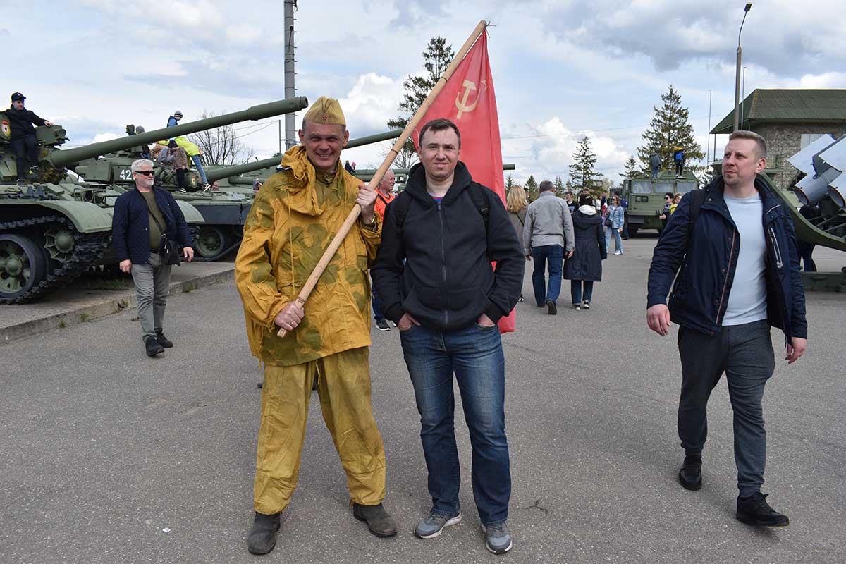 После реконструкции гости могли сфотографироваться с реконструкторами и флагом Советского Союза.