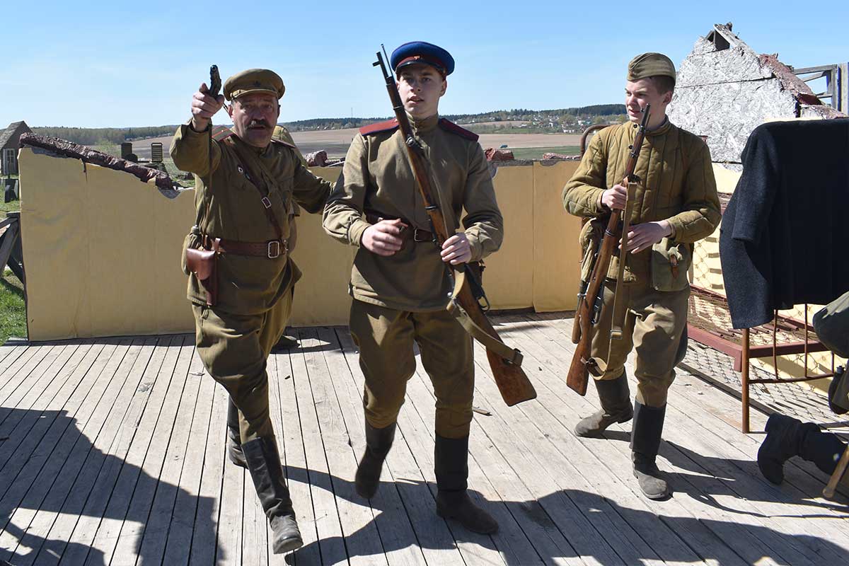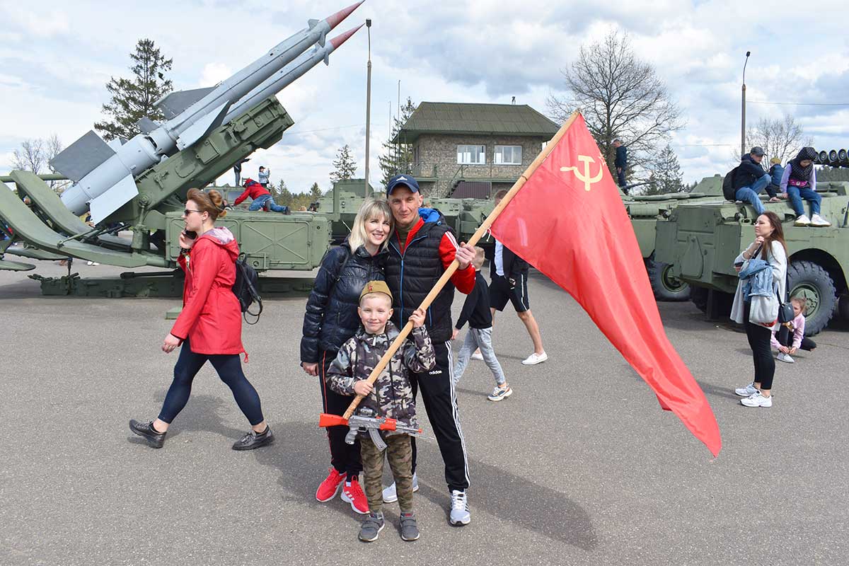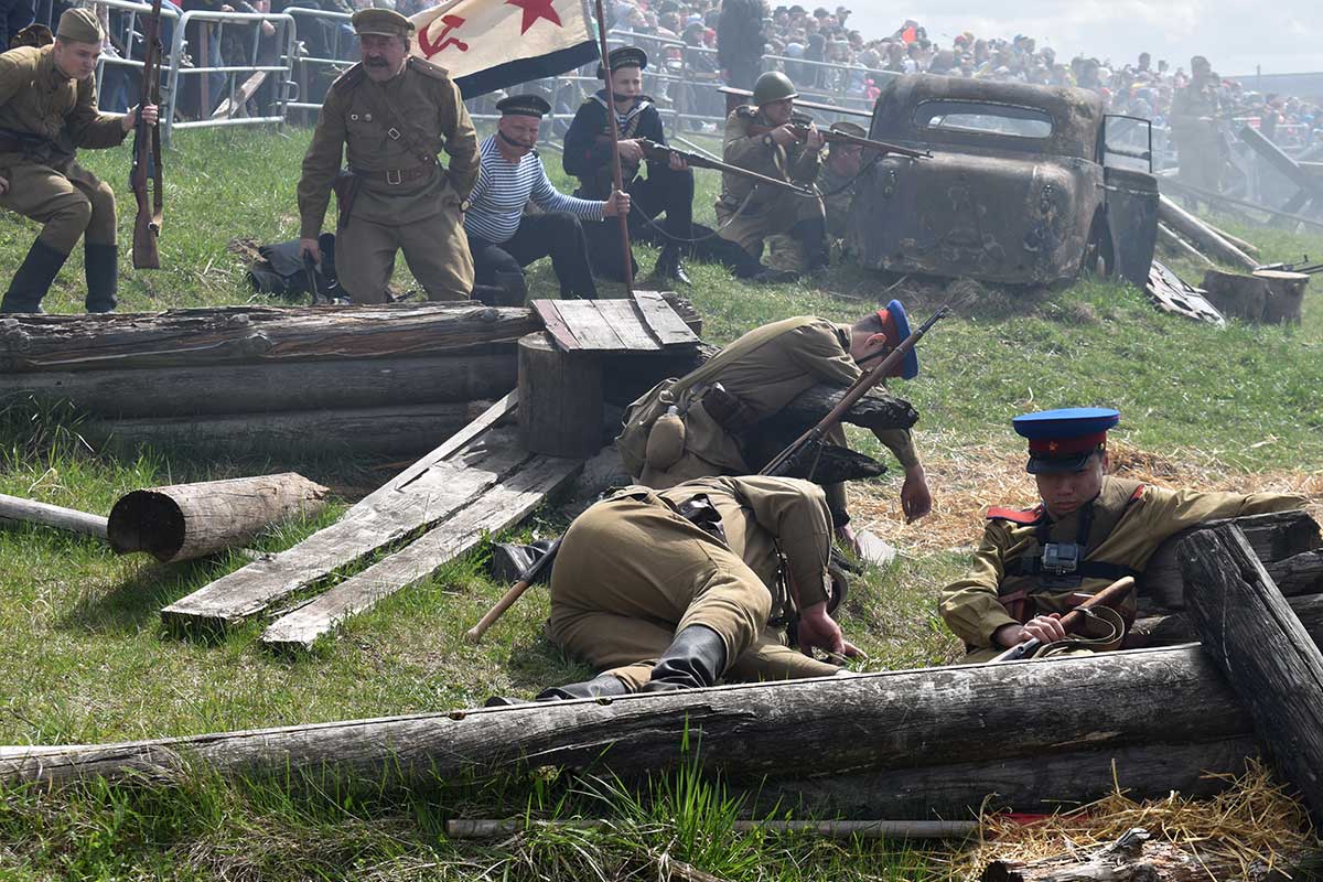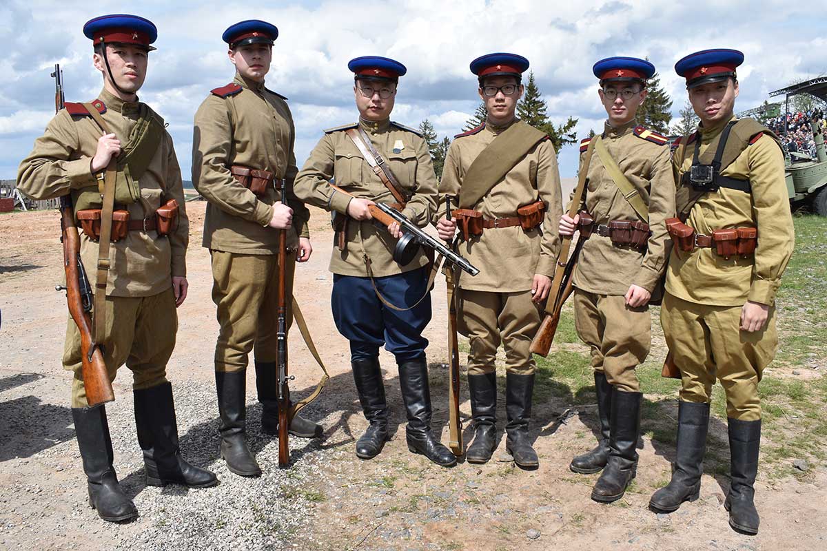 После реконструкции гости могли сфотографироваться с реконструкторами и флагом Советского Союза.