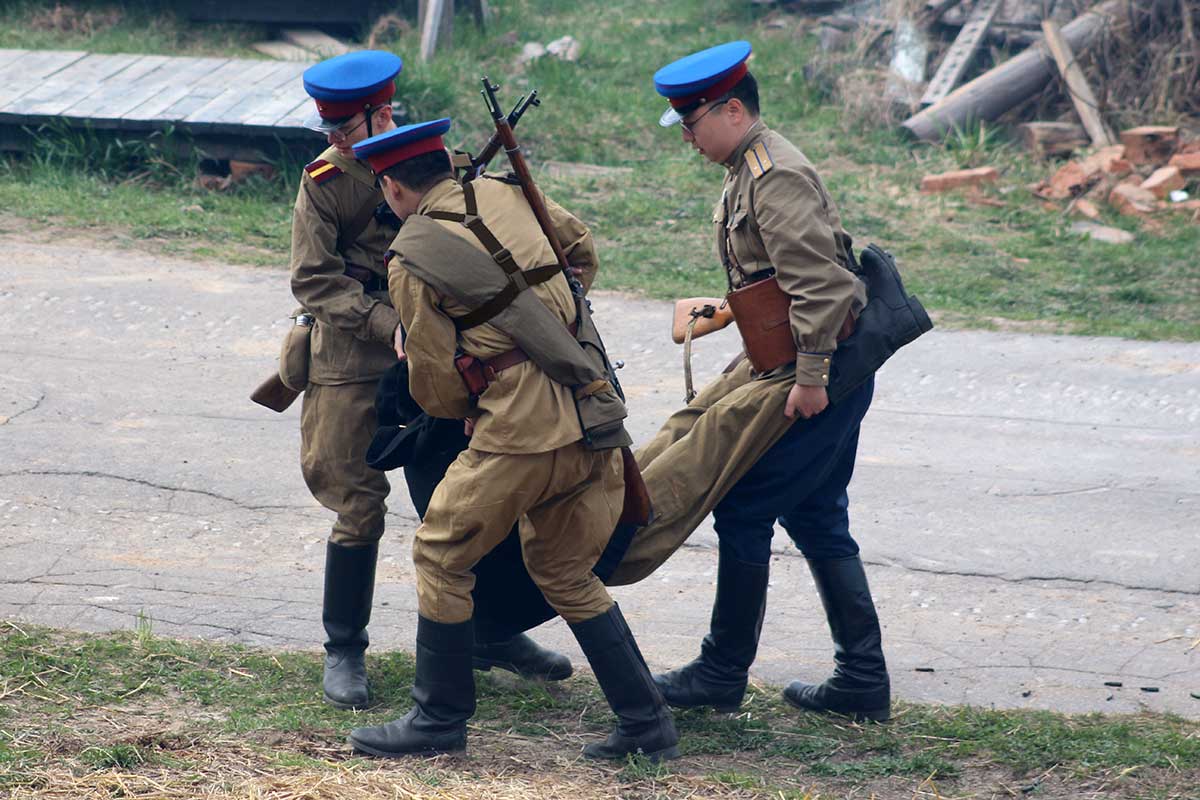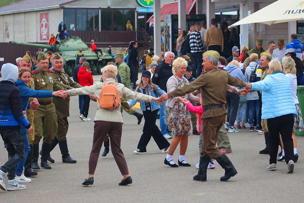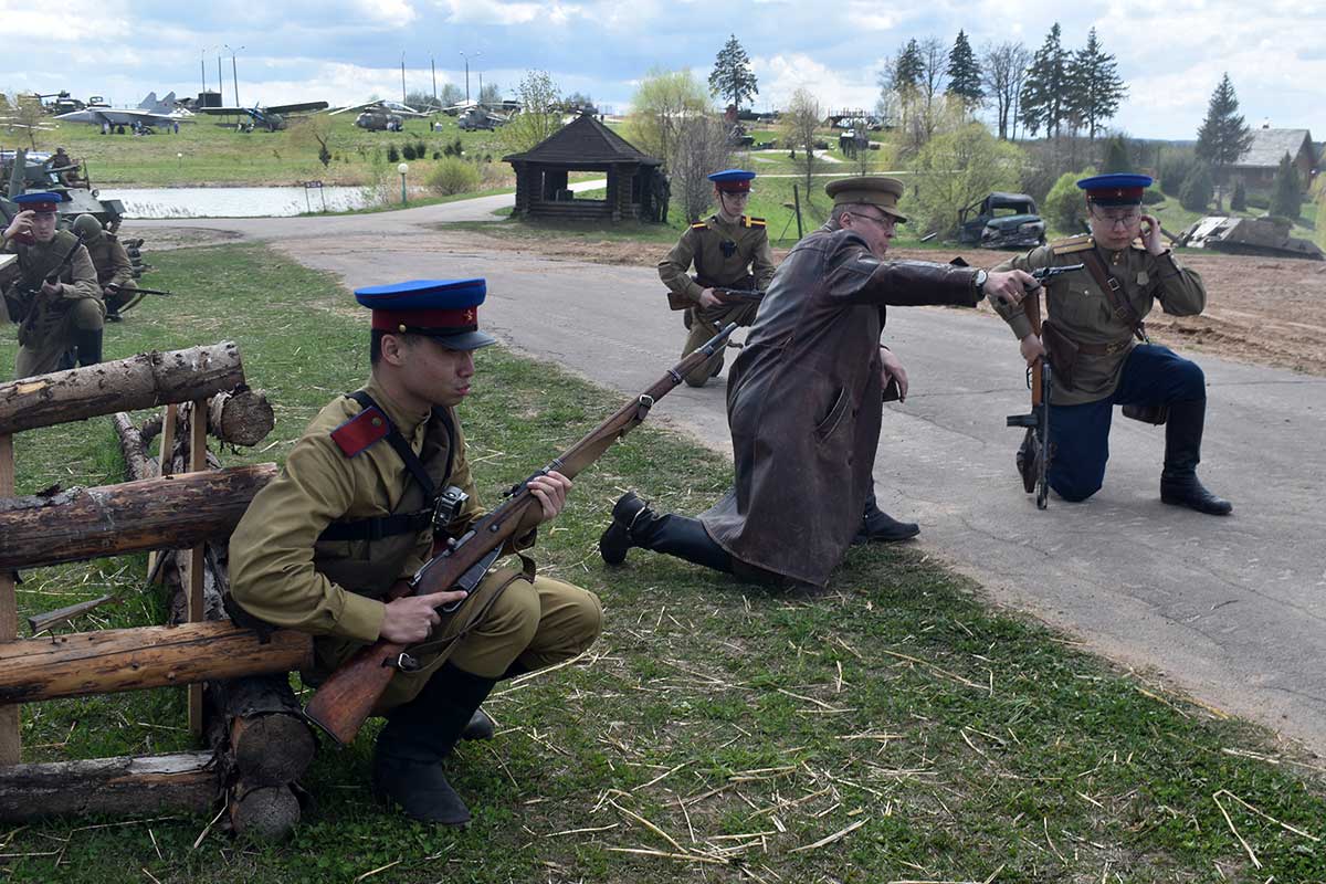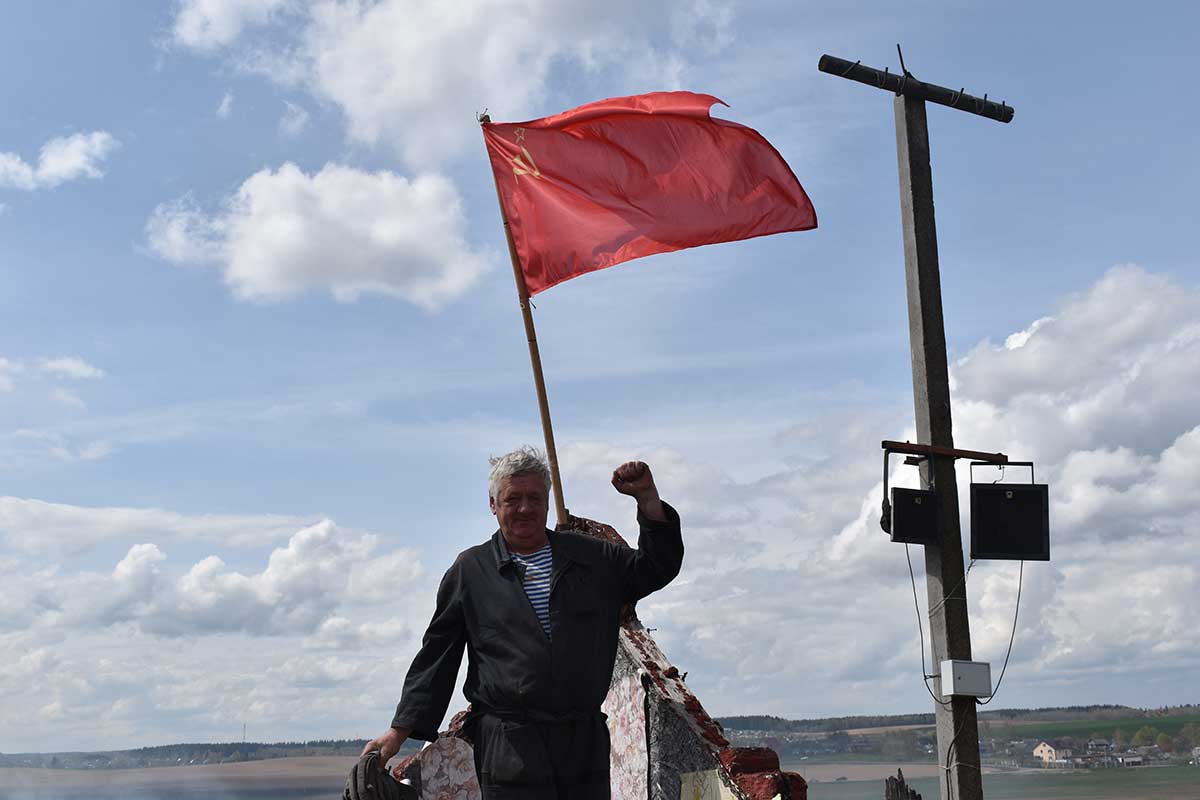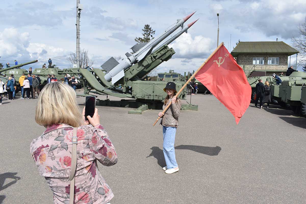 После реконструкции гости могли сфотографироваться с реконструкторами и флагом Советского Союза.