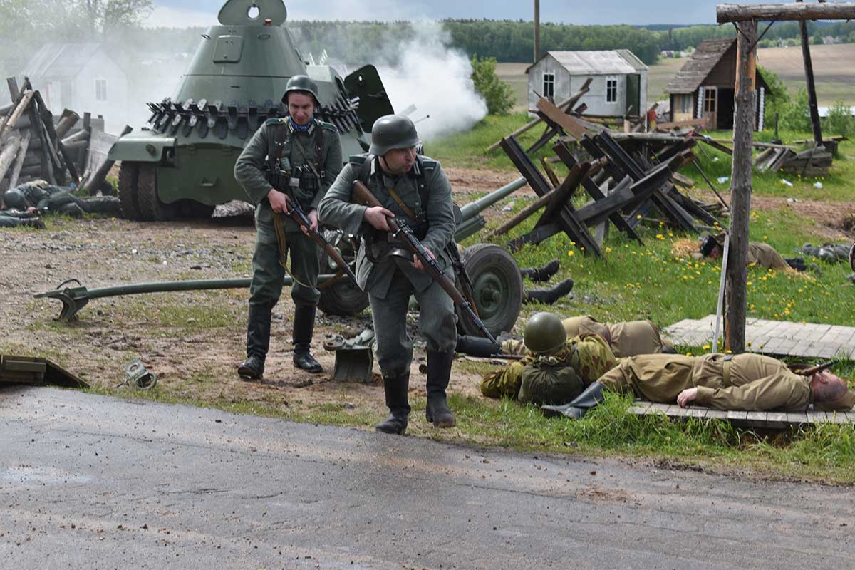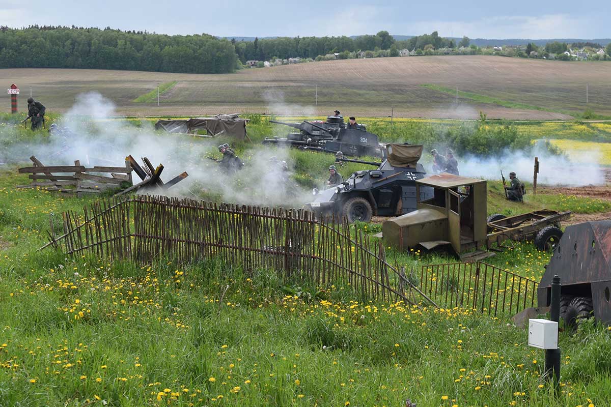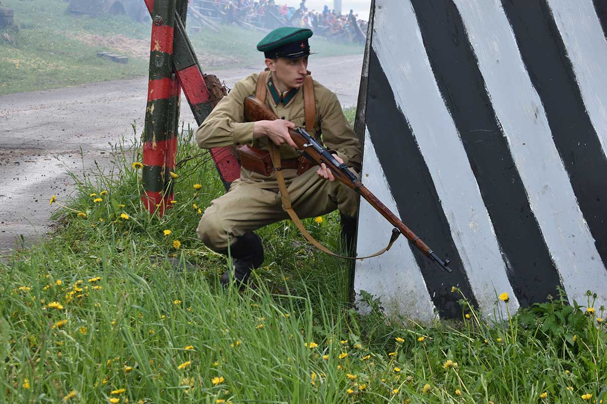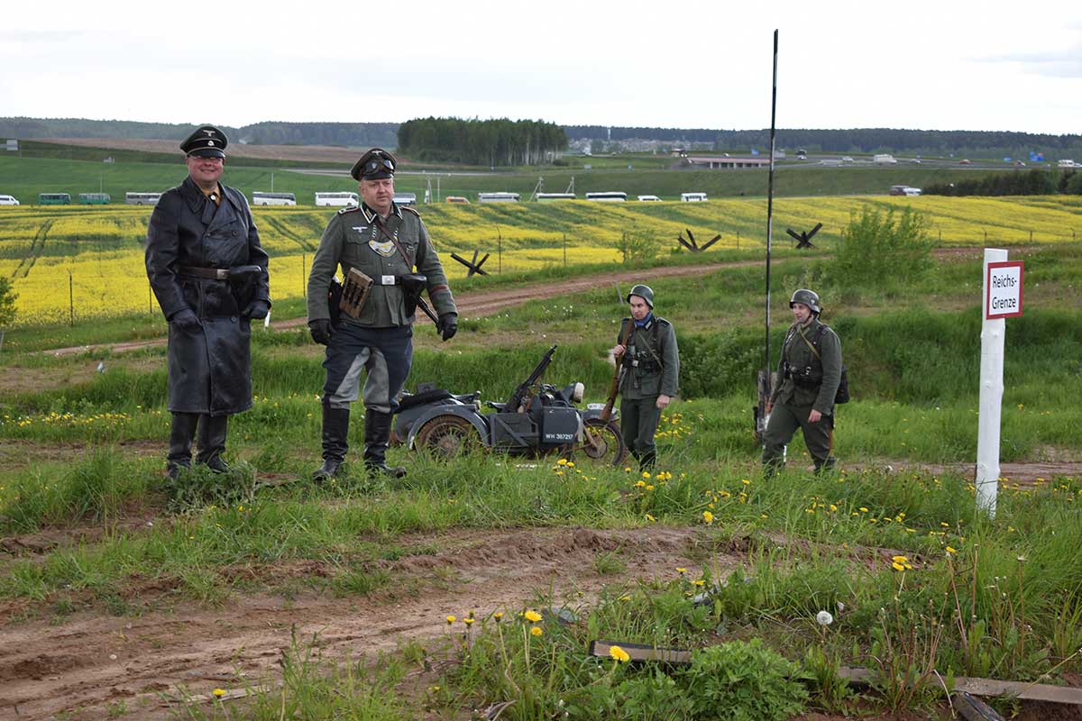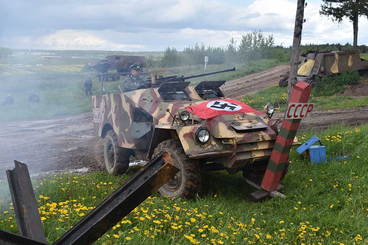 В 14:00 началась реконструкция боя Великой Отечественной войны. В её основу были положены демаркация советско-германской границы, патрулирование конными разъездами и пограничниками, налаживание перехода для гражданских лиц, последний мирный день с деревенской свадьбой, на которую были приглашены и германские военные, так как у СССР с Германией был мир. А потом был инцидент с немецким перебежчиком и начало войны.