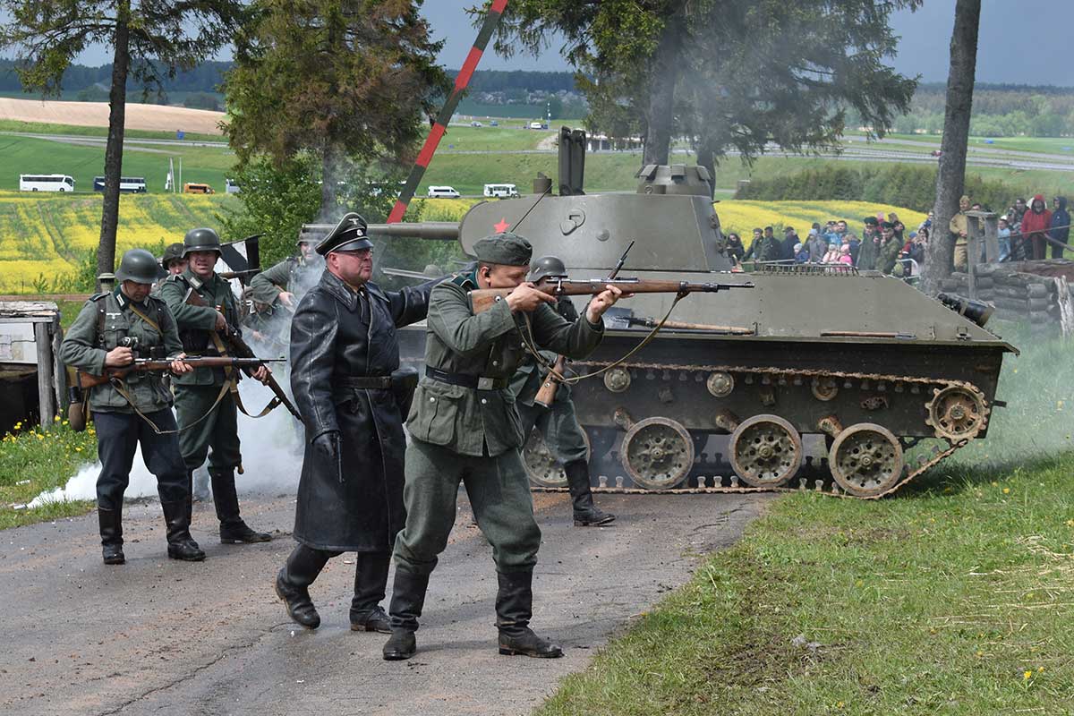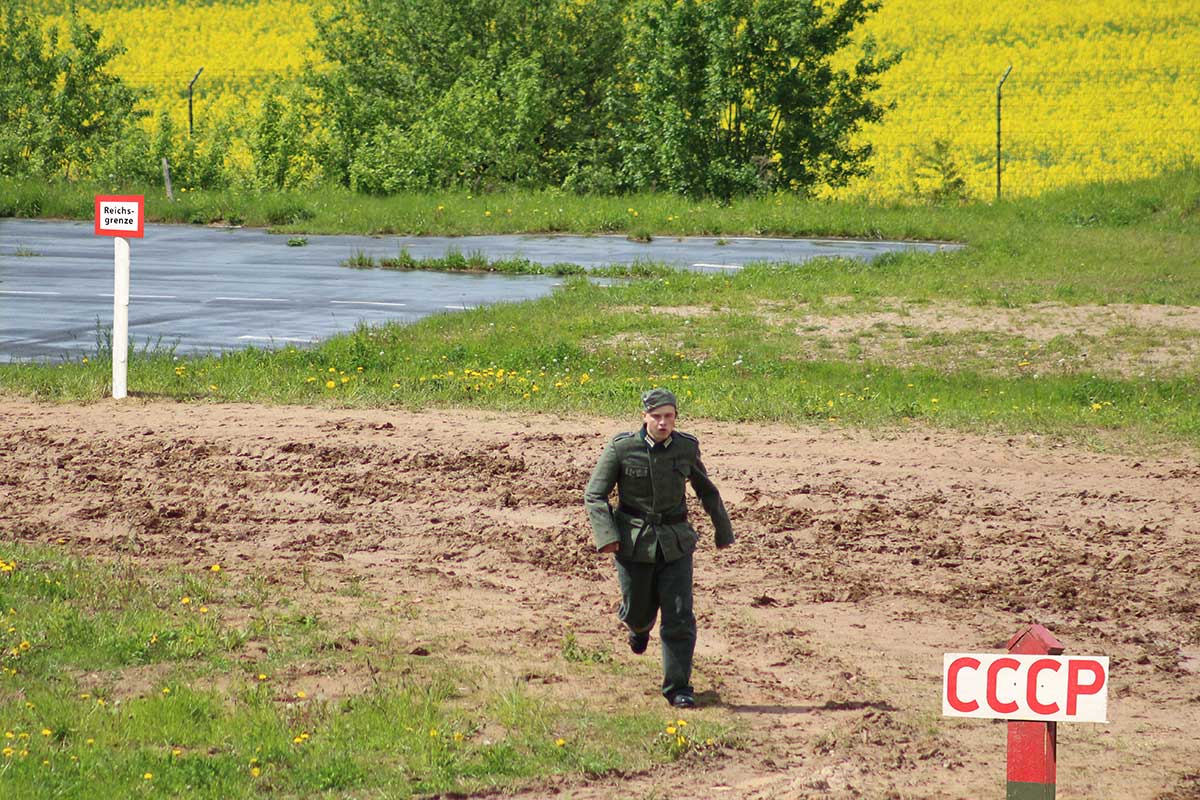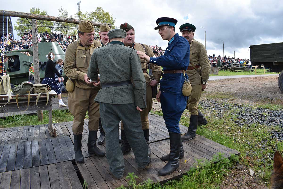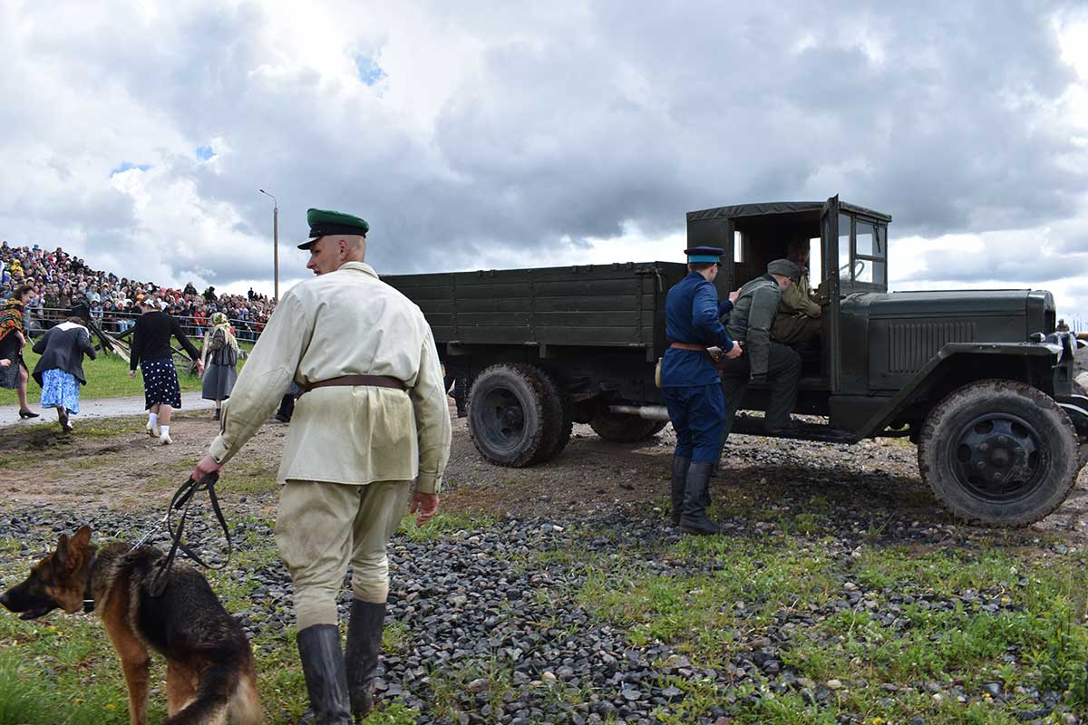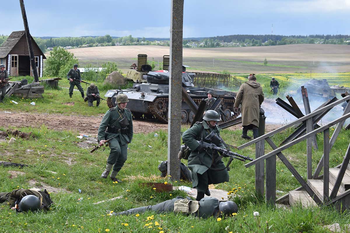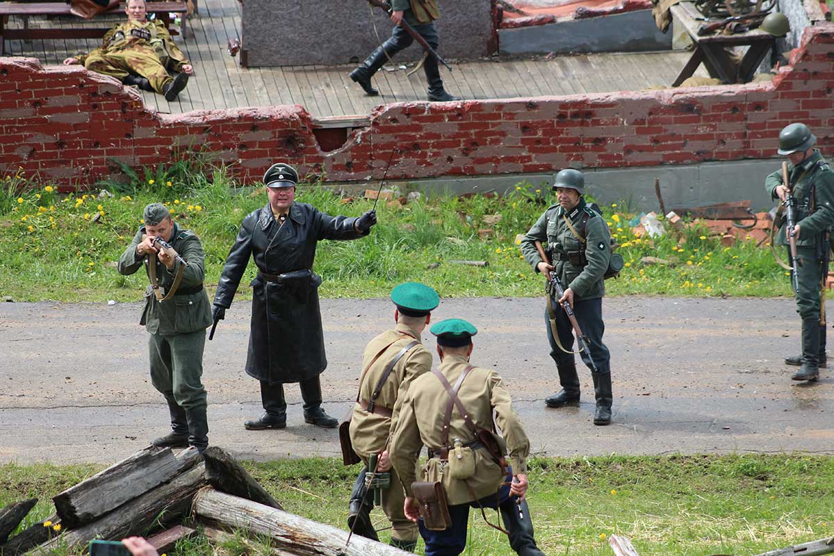 В 14:00 началась реконструкция боя Великой Отечественной войны. В её основу были положены демаркация советско-германской границы, патрулирование конными разъездами и пограничниками, налаживание перехода для гражданских лиц, последний мирный день с деревенской свадьбой, на которую были приглашены и германские военные, так как у СССР с Германией был мир. А потом был инцидент с немецким перебежчиком и начало войны.