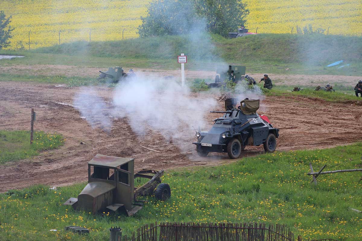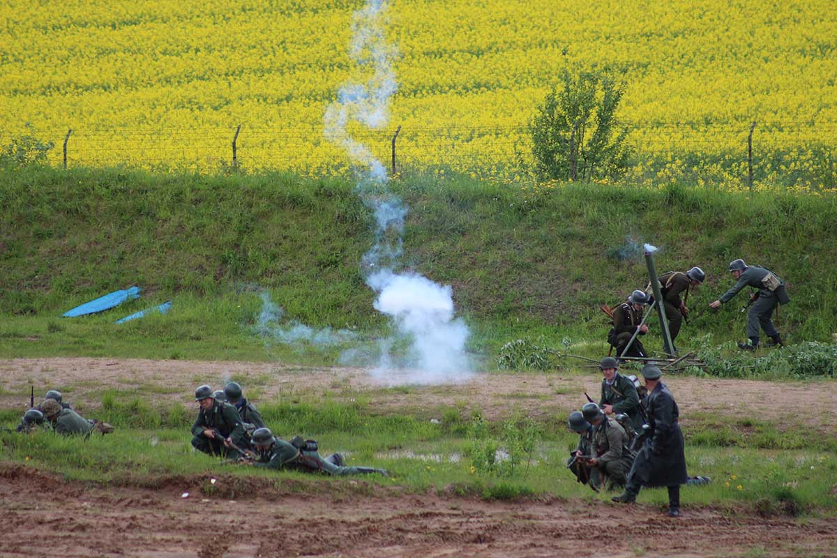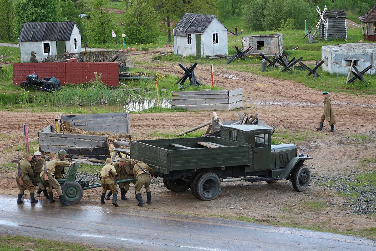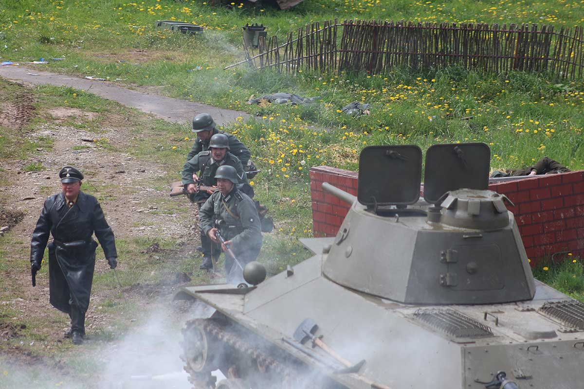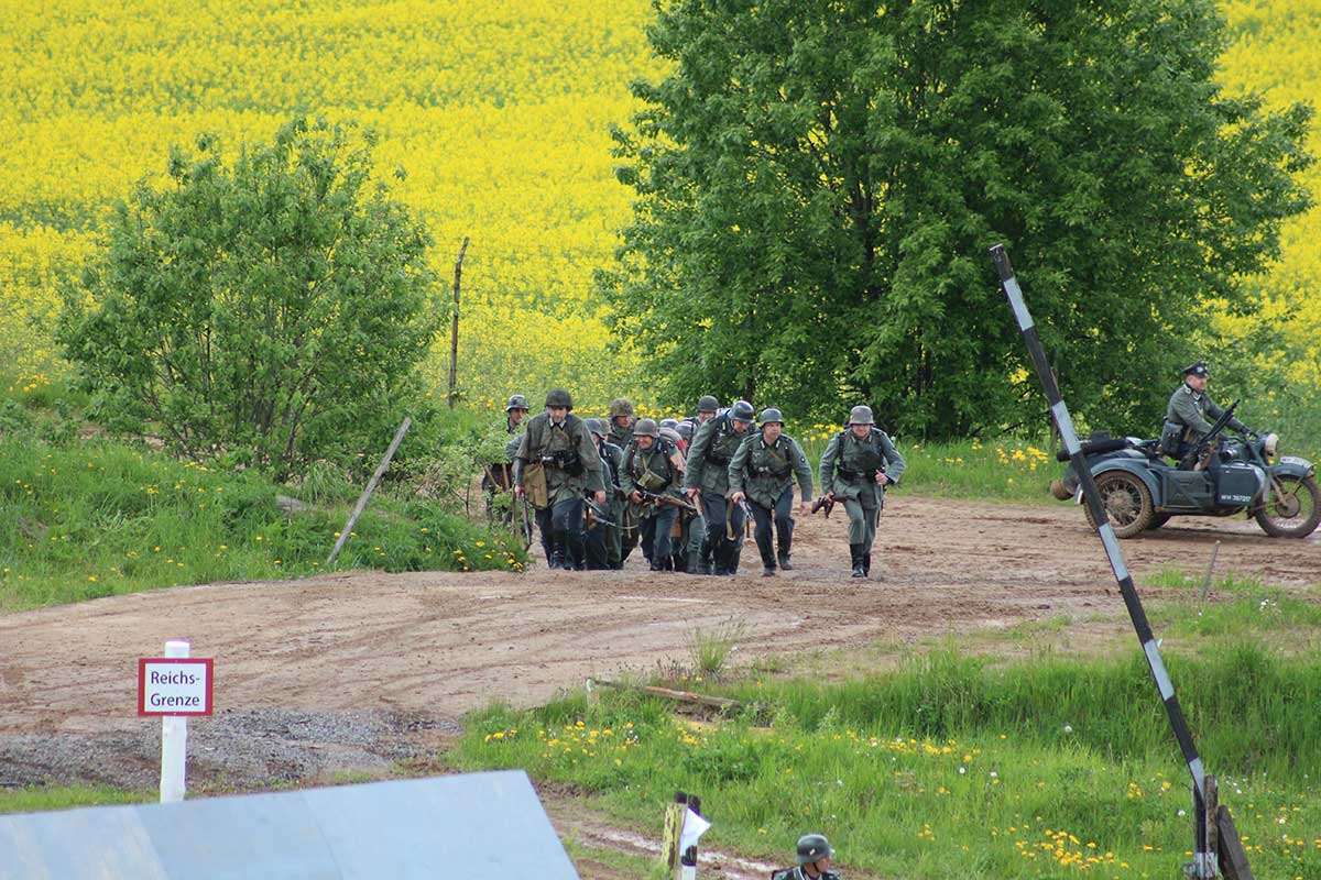 В 14:00 началась реконструкция боя Великой Отечественной войны. В её основу были положены демаркация советско-германской границы, патрулирование конными разъездами и пограничниками, налаживание перехода для гражданских лиц, последний мирный день с деревенской свадьбой, на которую были приглашены и германские военные, так как у СССР с Германией был мир. А потом был инцидент с немецким перебежчиком и начало войны.