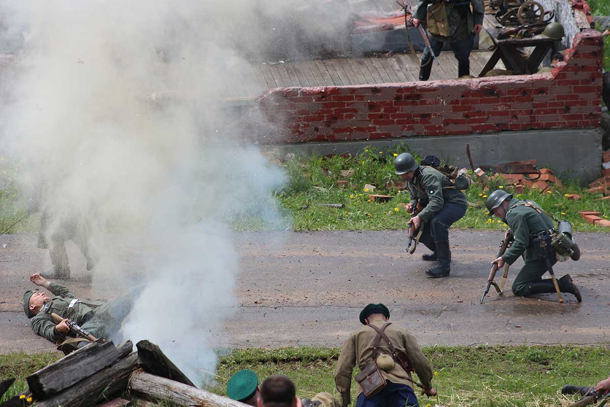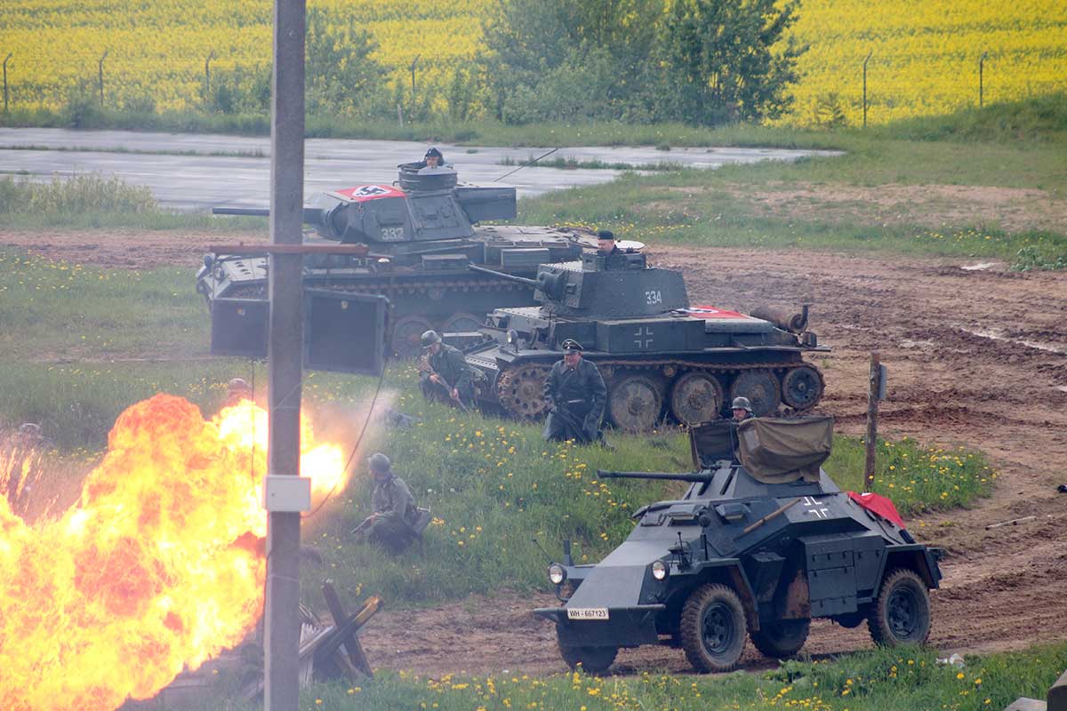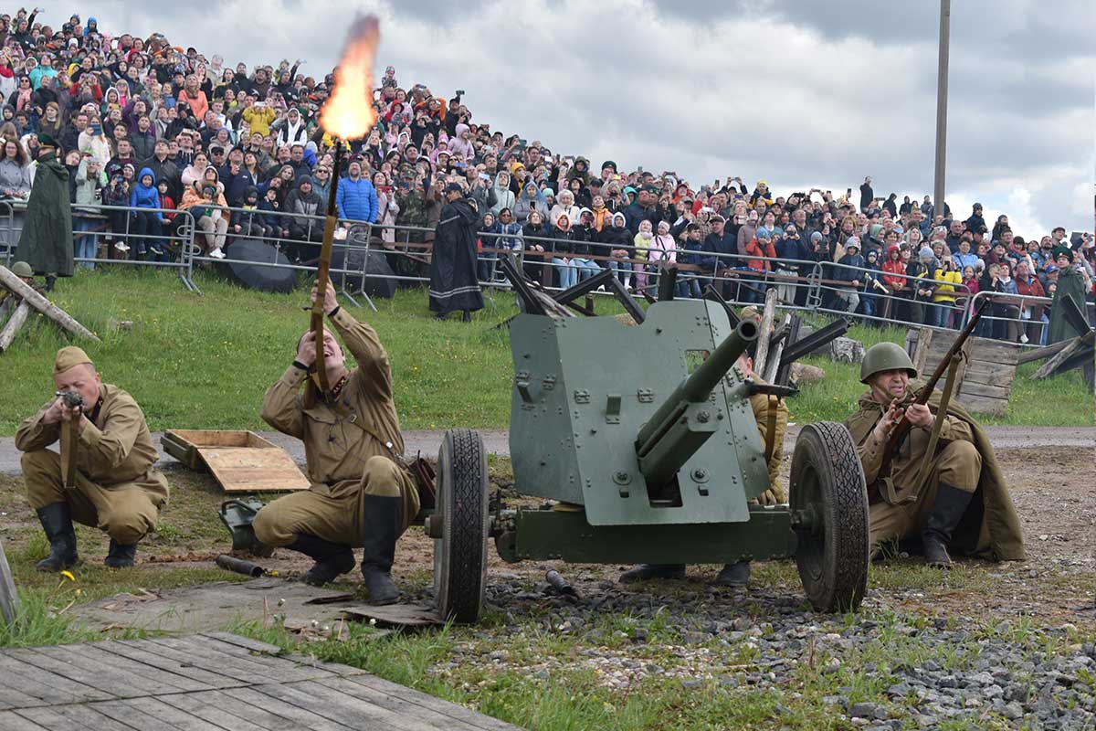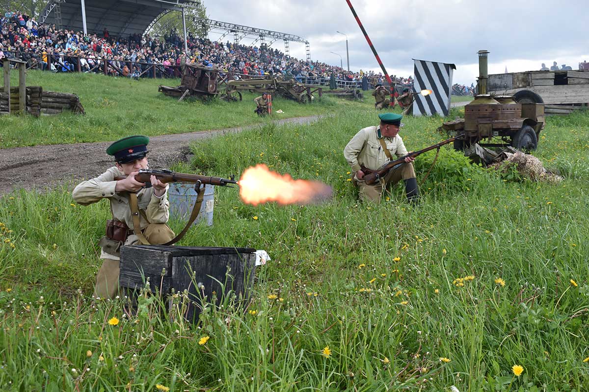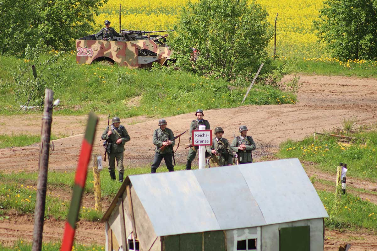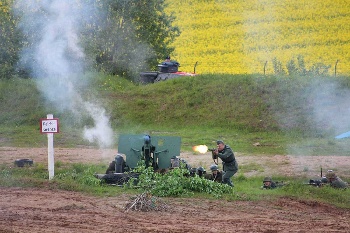 В 14:00 началась реконструкция боя Великой Отечественной войны. В её основу были положены демаркация советско-германской границы, патрулирование конными разъездами и пограничниками, налаживание перехода для гражданских лиц, последний мирный день с деревенской свадьбой, на которую были приглашены и германские военные, так как у СССР с Германией был мир. А потом был инцидент с немецким перебежчиком и начало войны.