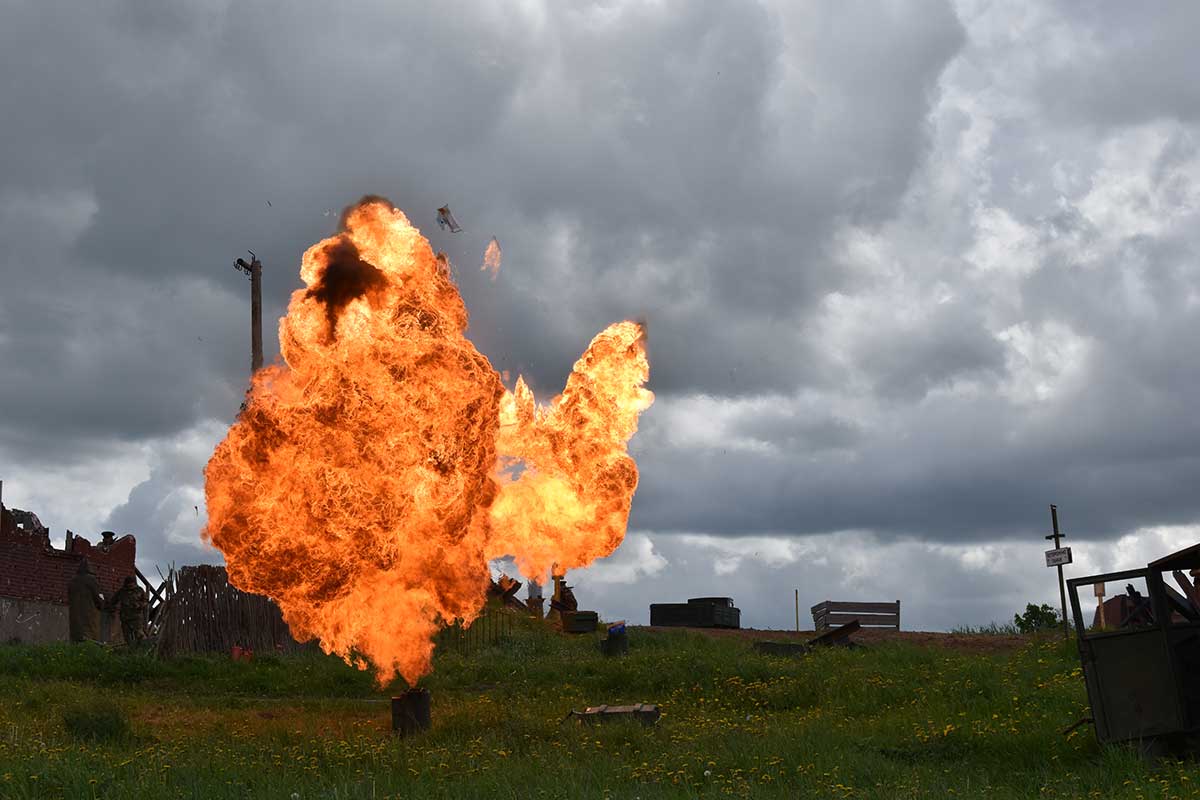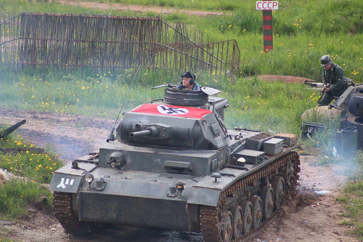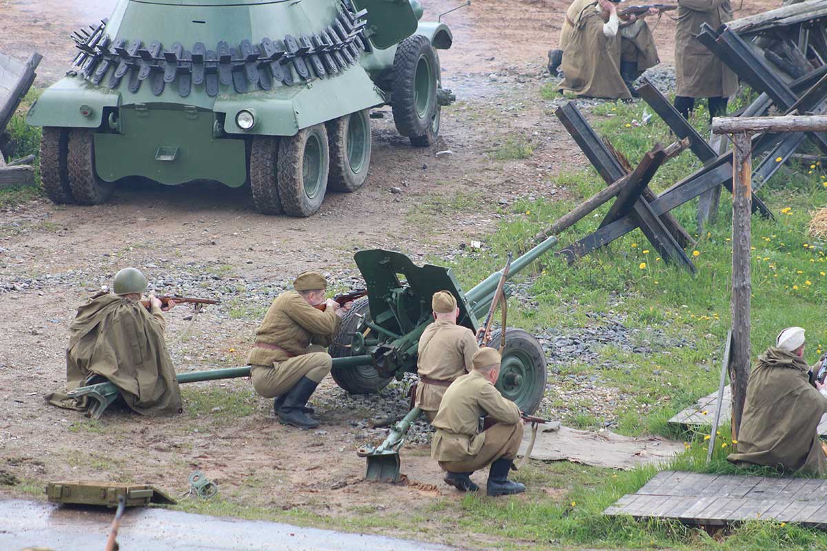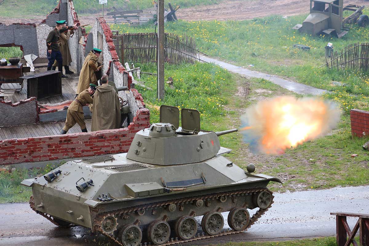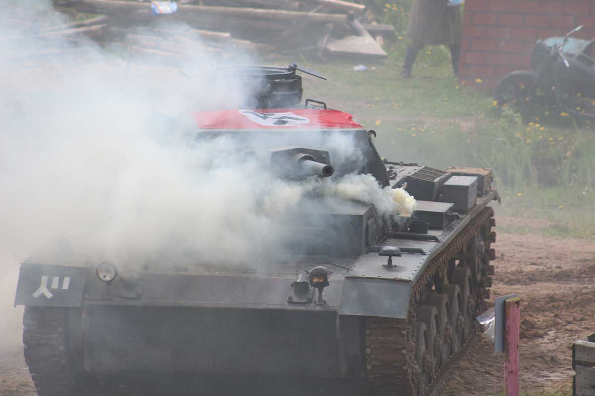В 14:00 началась реконструкция боя Великой Отечественной войны. В её основу были положены демаркация советско-германской границы, патрулирование конными разъездами и пограничниками, налаживание перехода для гражданских лиц, последний мирный день с деревенской свадьбой, на которую были приглашены и германские военные, так как у СССР с Германией был мир. А потом был инцидент с немецким перебежчиком и начало войны.
