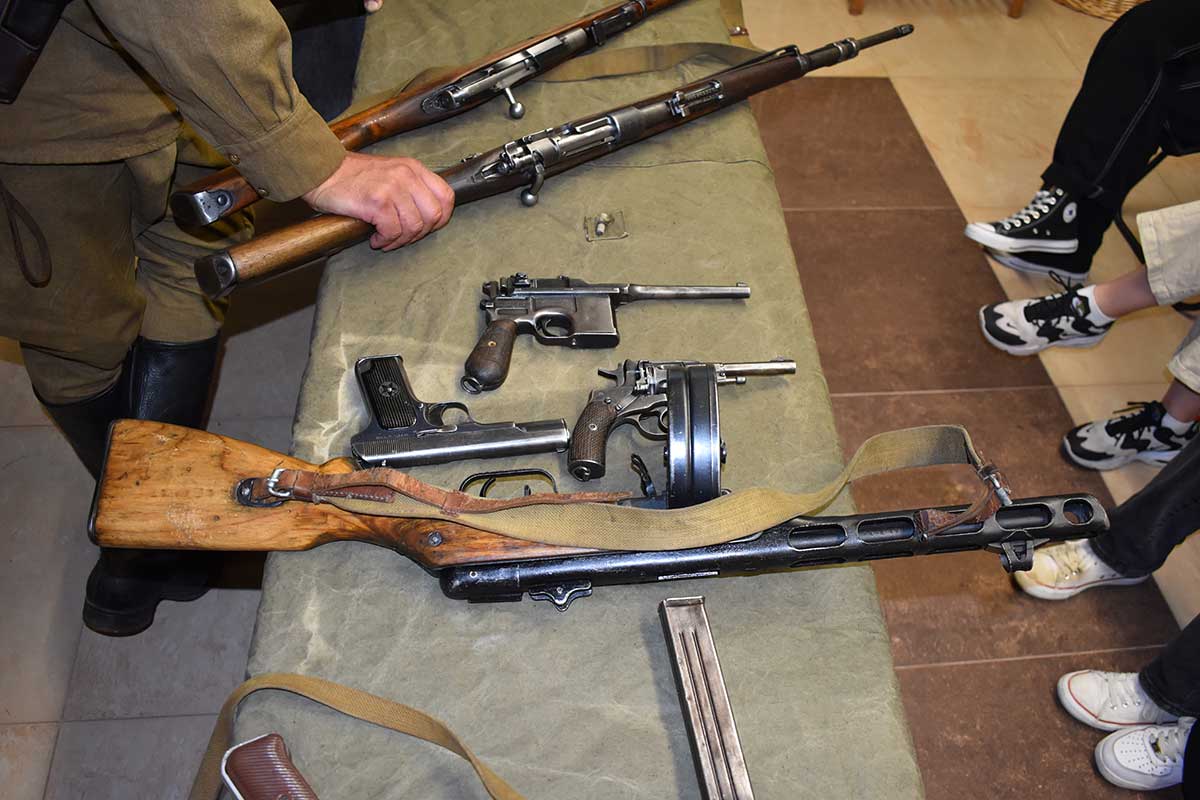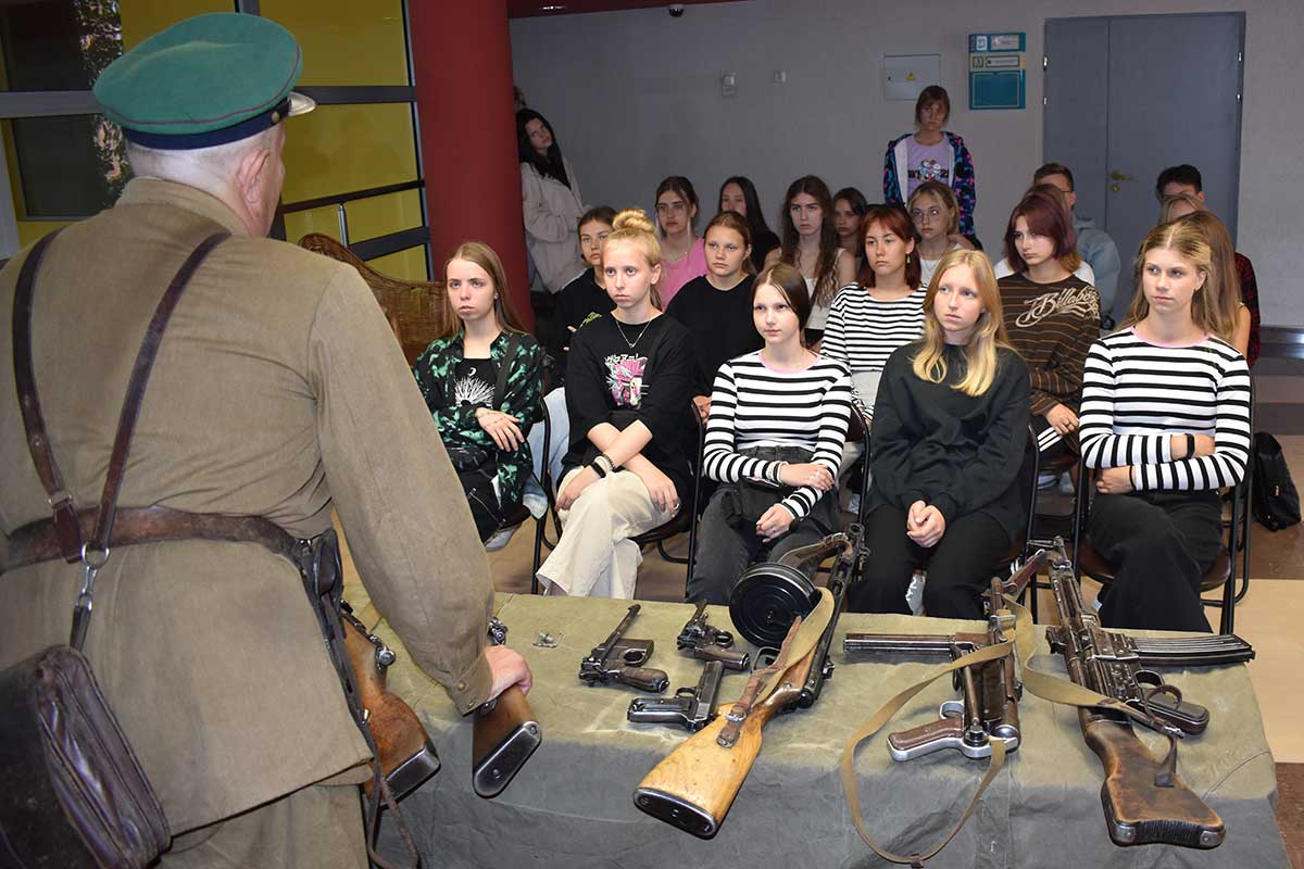 Руководитель группы по ремонту музейного оружия и оборудования ИКК «Линия Сталина» Сергей Захаров провёл лекцию о развитии стрелкового оружия, продемонстрировав образцы от реплики нарезного егерского штуцера 1798 года до ручного пулемёта Калашникова.