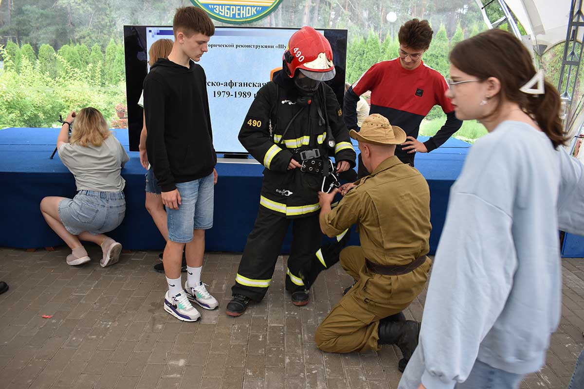 Заместитель командира клуба «Шурави» Дмитрий Ковалевский рассказал об Ограниченном контингенте Советских войск, который вёл боевые действия в Афганистане с 1979 по 1989 год, и провёл викторину. Помогал ему Артём Бобровский. После лекции дети могли заняться разборкой-сборкой автомата АК-74 или сфотографироваться с пулемётами ПК и РПК, снайперской винтовкой СВД и гранатомётом.