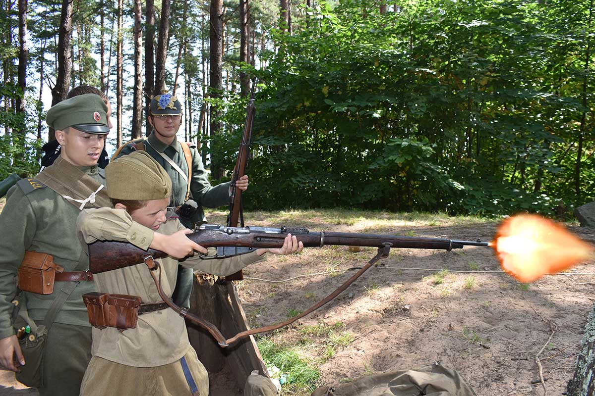 21 августа на исторической тропе «Зубрёнка» у памятной доски Героя Советского Союза Пономарёва Петра Тихоновича была оборудована стрелковая площадка. Победители викторины облачались в форму бойца или разведчика Красной Армии, фотографировались на память одни, с реконструкторами и исполнительным директором ИКК «Линия Сталина» Александром Метла, а затем проходили на стрелковую площадку, чтобы пострелять из охолощённого оружия.