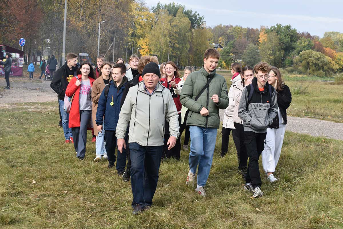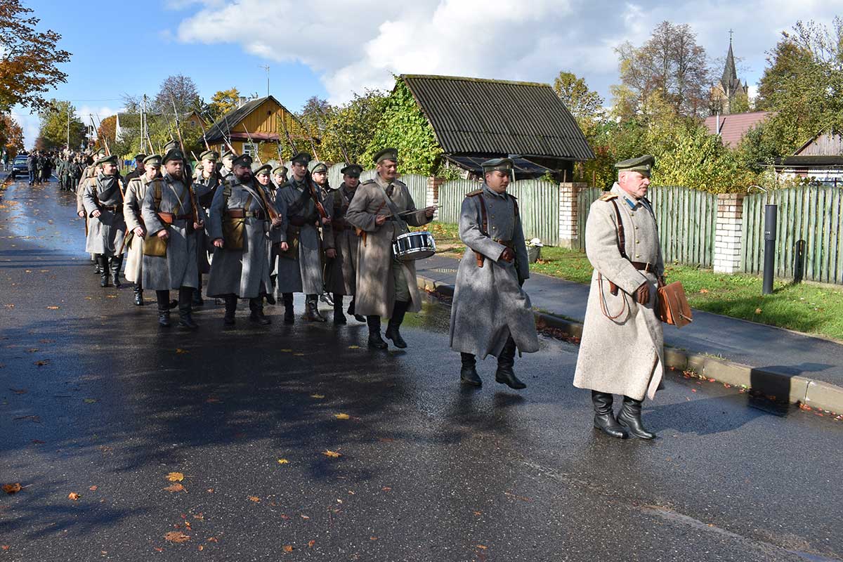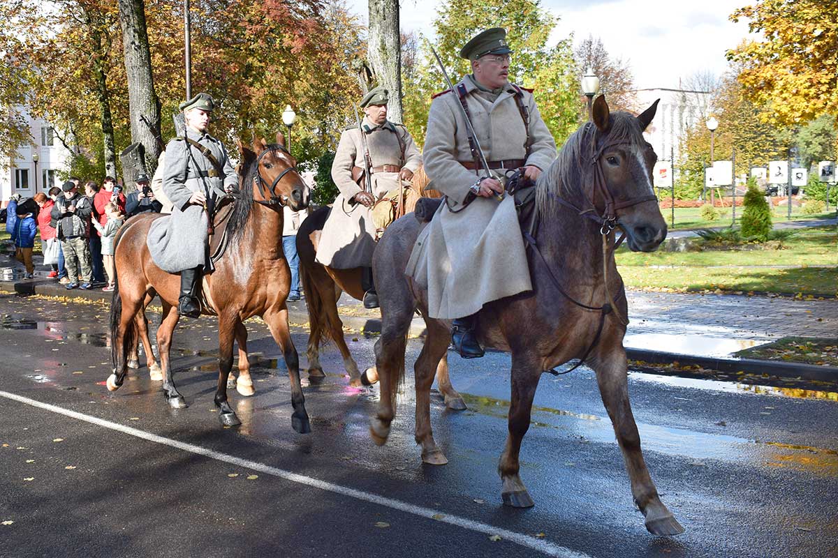 На следующий день в 12:00 на главной площади Вилейки состоялось приветствие гостей фестиваля, на котором от нашего комплекса выступил Александр Метла, от фонда «Крокi» – Андрей Оралин. Затем было торжественное прохождение реконструкторов от площади города до поля реконструкции.