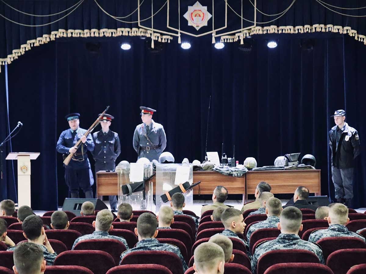 9 ноября в преддверии Дня милиции участники клуба «Контроль 16» совместно с руководством клуба «Солдаты Победы» выступили перед курсантами лицея с лекцией об истории органов МВД нашего государства, а также продемонстрировали аудитории часть экспозиции из фонда клуба.