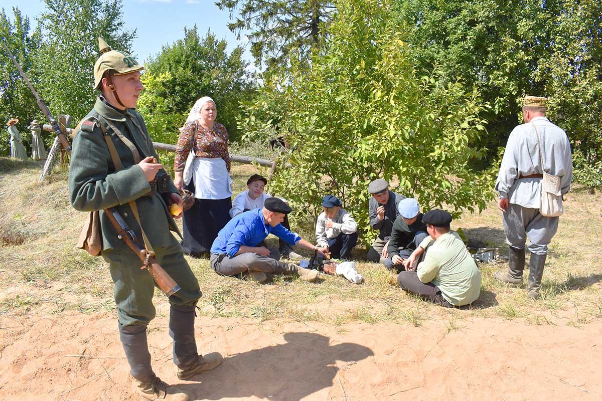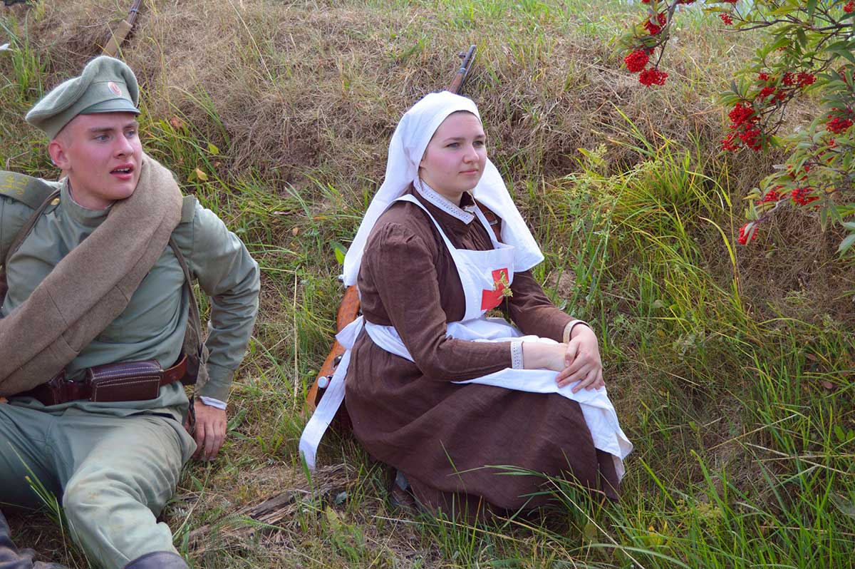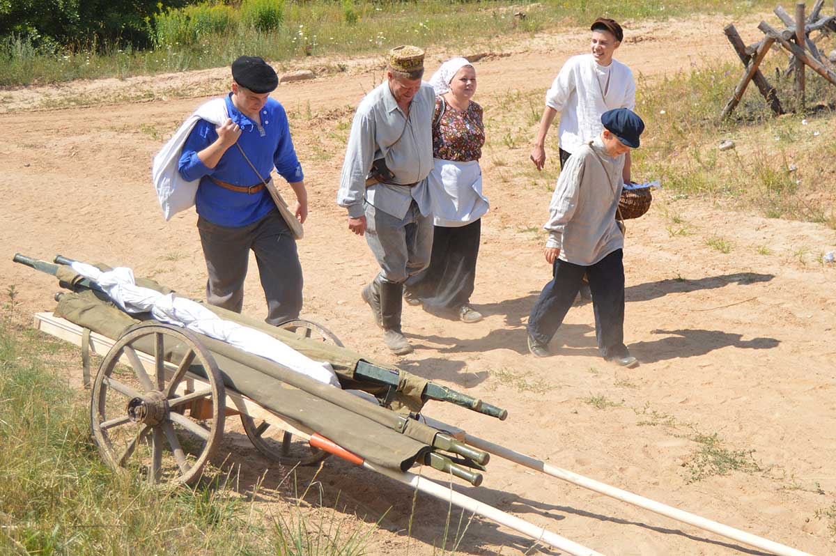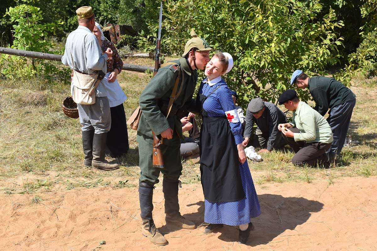 В ней приняли участие реконструкторы Русской Императорской армии, кайзеровской Германии, бравый солдат Швейк из армии Австро-Венгерской империи, дамы и группа гражданского населения.