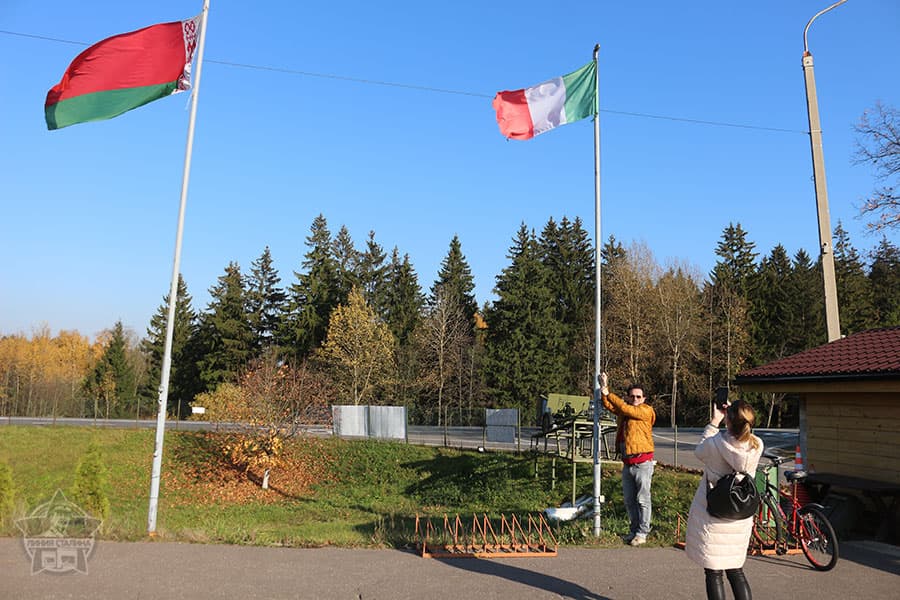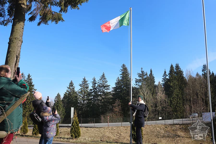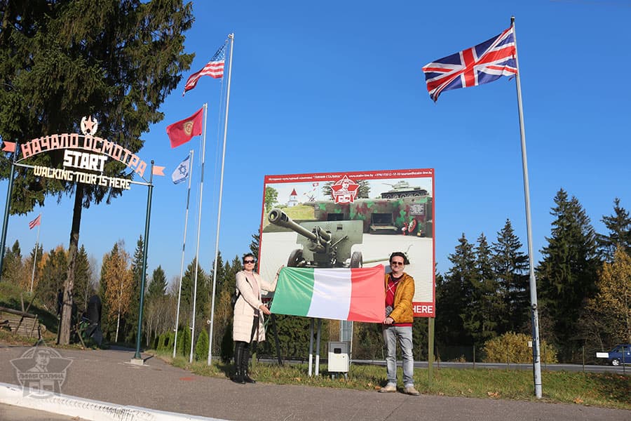 Questo è l'unico museo al mondo in cui sarai accolto con la bandiera dell'Italia! Farai una foto gratis con la bandiera dell'Italia e poi la solleverai sull'asta della bandiera della Linea Stalin.