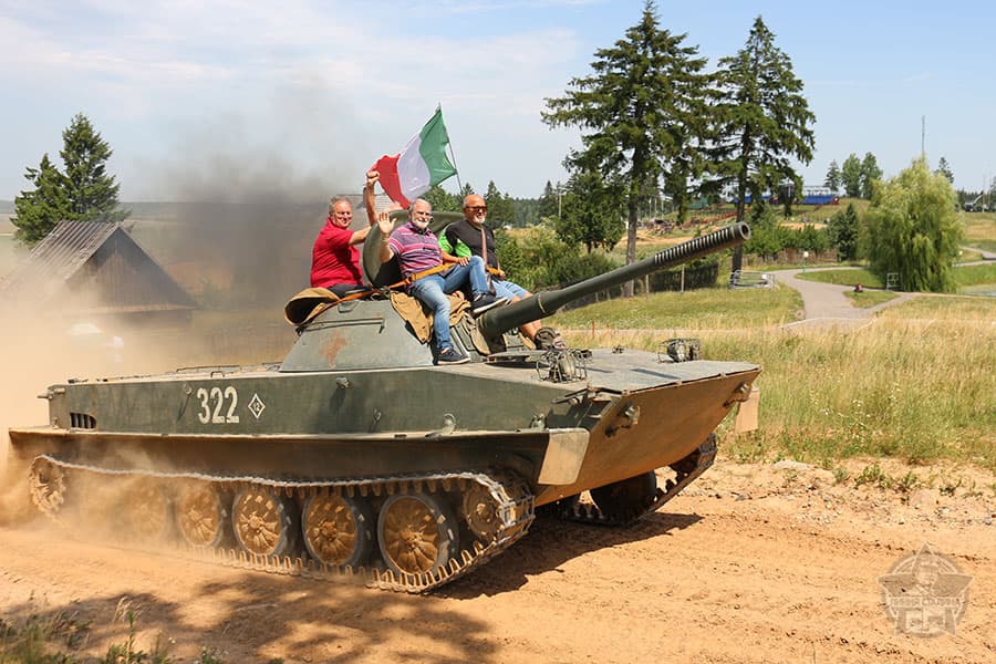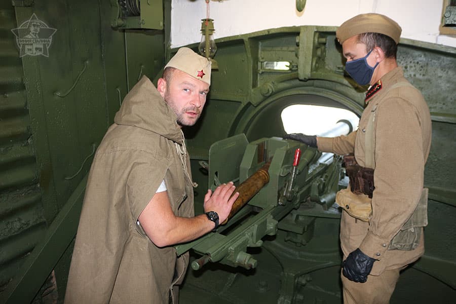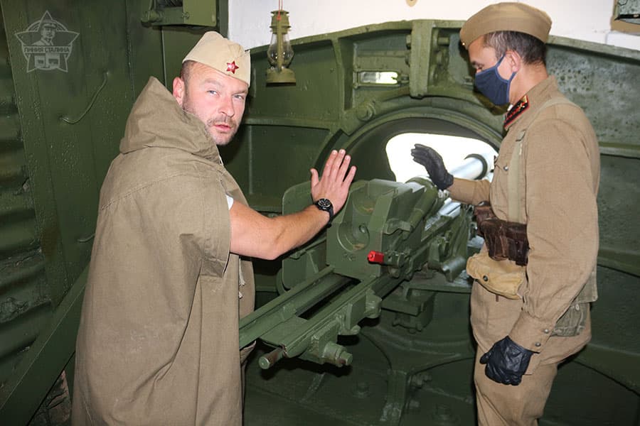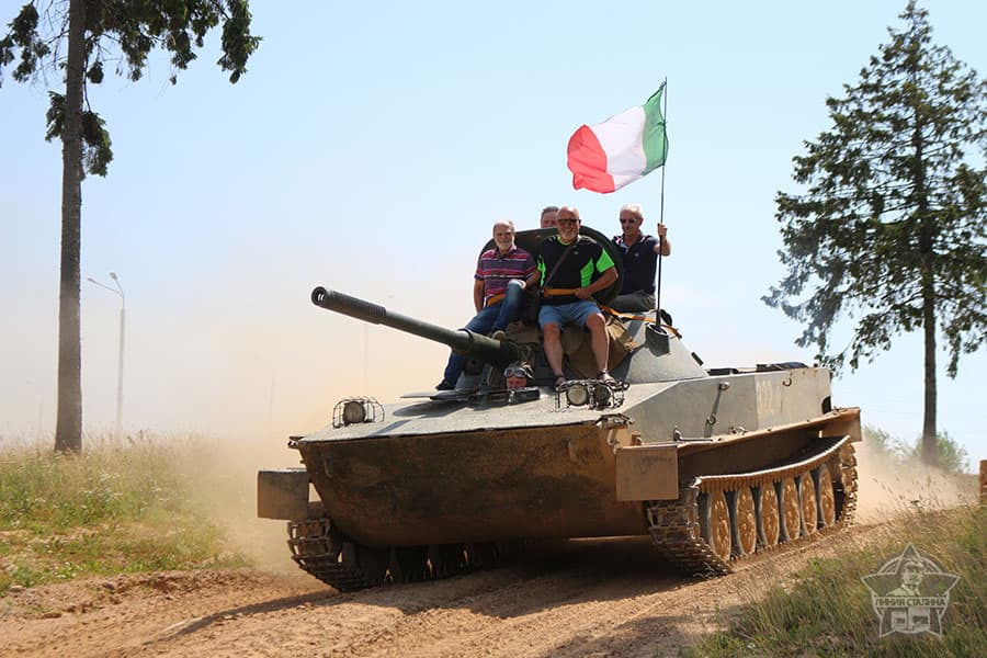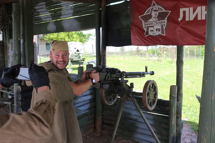 Solo in questo museo puoi cavalcare su un carro armato con la bandiera dell'Italia. Il fotografo della Stalin Line ti scatterà una foto gratuitamente e te lo farà avere via e-mail.