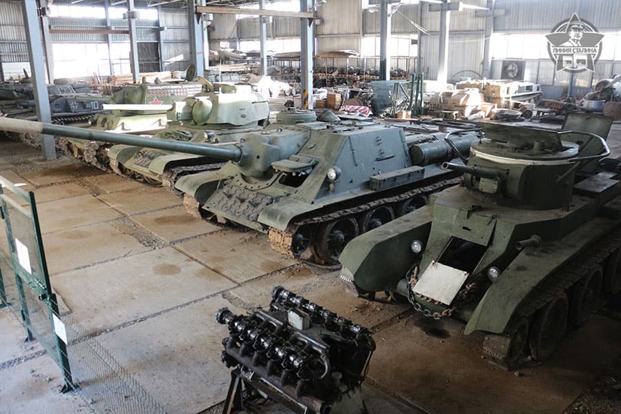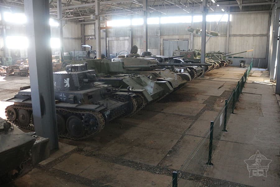 There are an armored train and two hangars of the Soviet and German equipment of the Second World War.