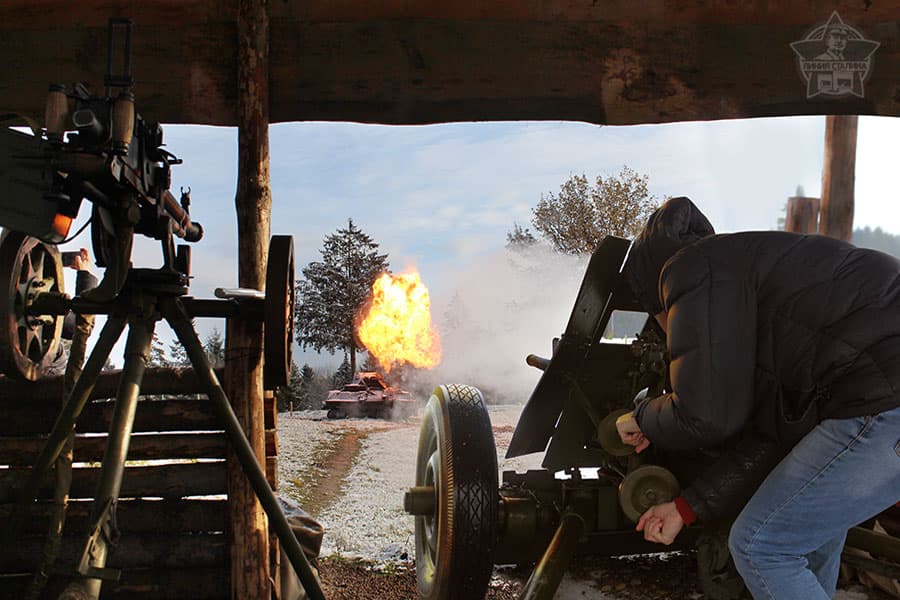 في متحف خط ستالين يمكنكم الرماية من اسلحة ورشاشات خفيفة و متوسطة ، كما انه يمكنكم التصويب من دبابة سوفيتية وتدمير دبابات نازية !