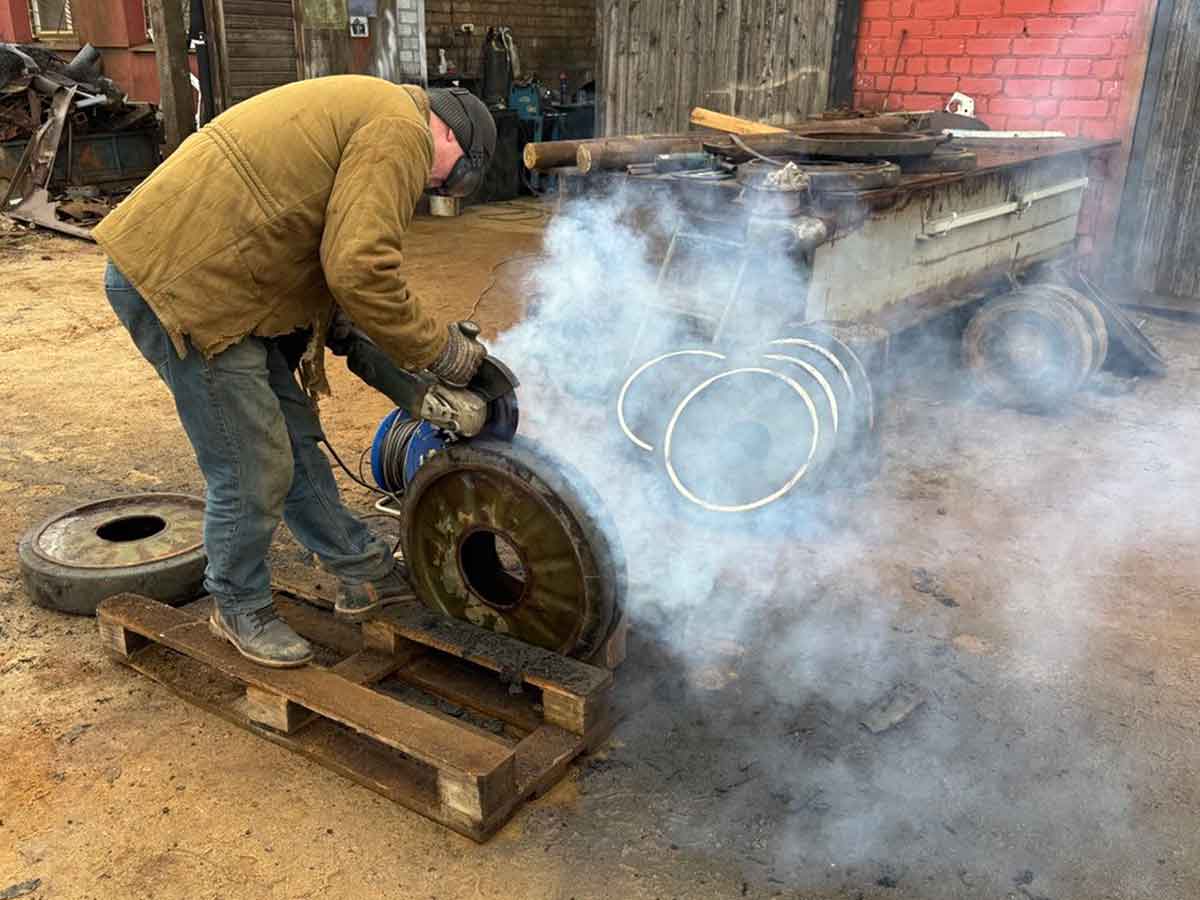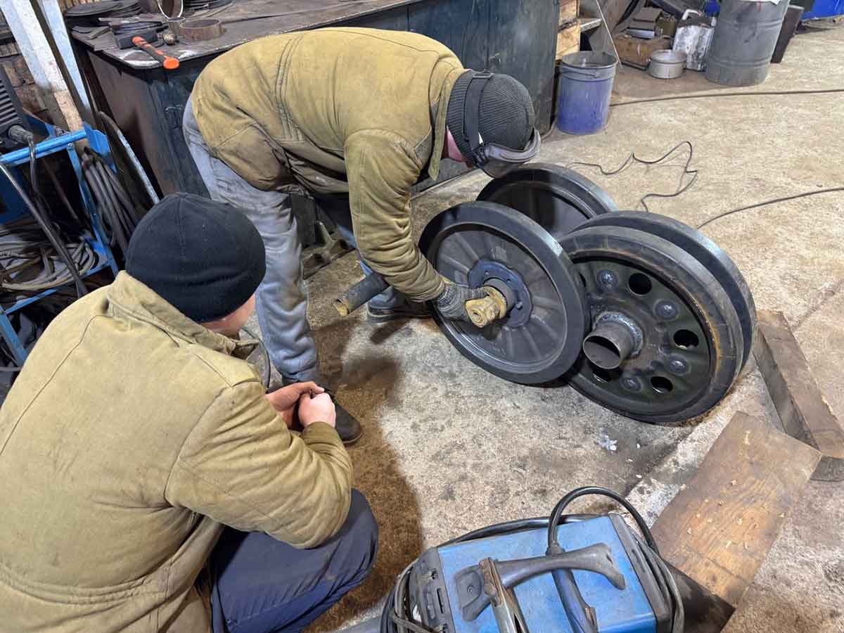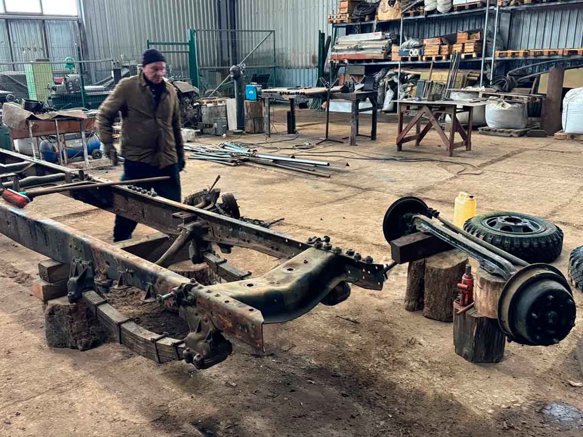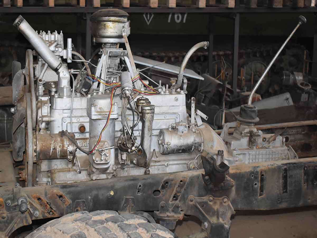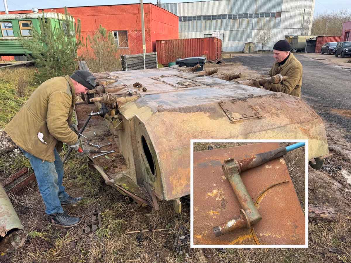 During its construction at the Stalin Line, the engine, gearbox, and frame from a Soviet ZIL-157 truck were used. The torsion beams were taken from a Soviet AT-P tractor. The wheels, tracks, and rollers were from various tracked vehicles.