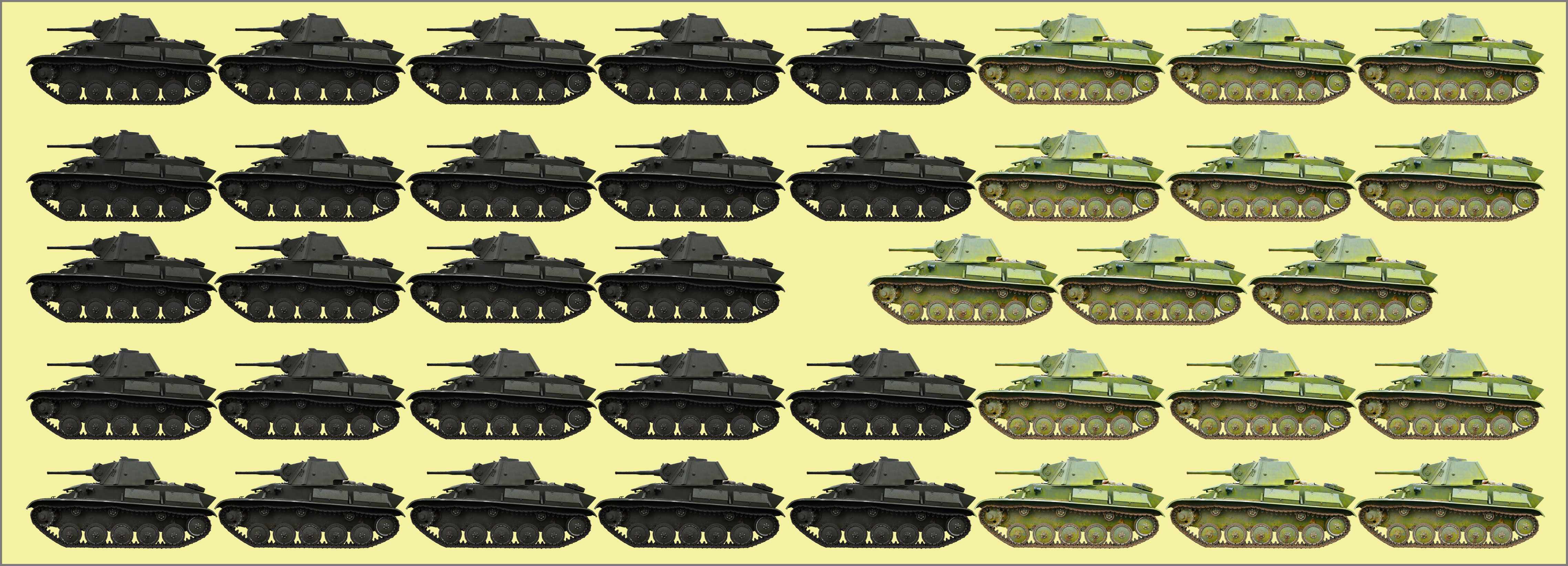 Скажем, 6 советским танкам противостоял всего один немецкий. В результате один немец мог поразить нескольких (а то и все 6), а наши — только одного (т.е. пять советских танков вообще никого не подбивали, так как для них не было цели).