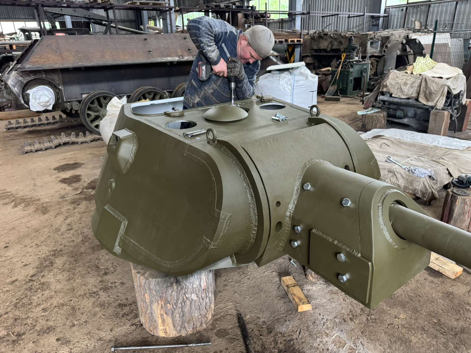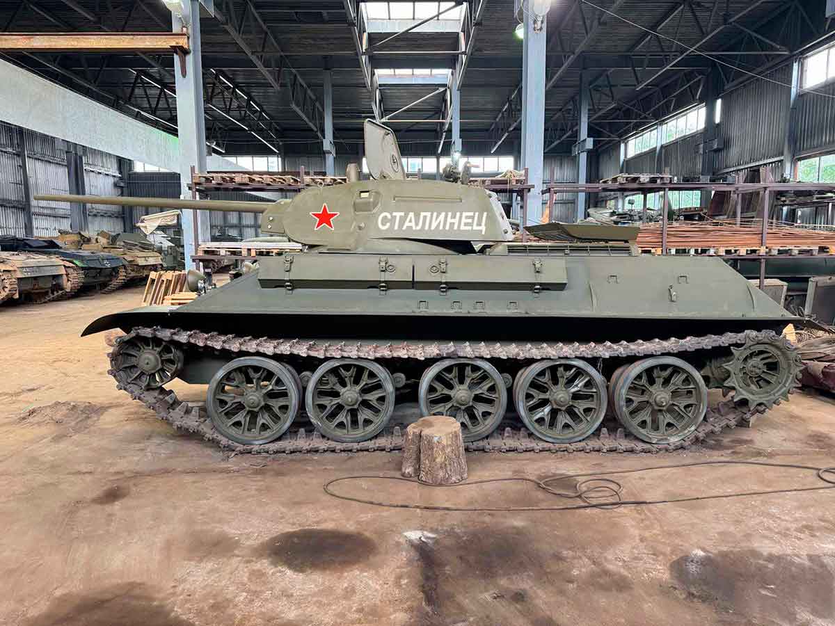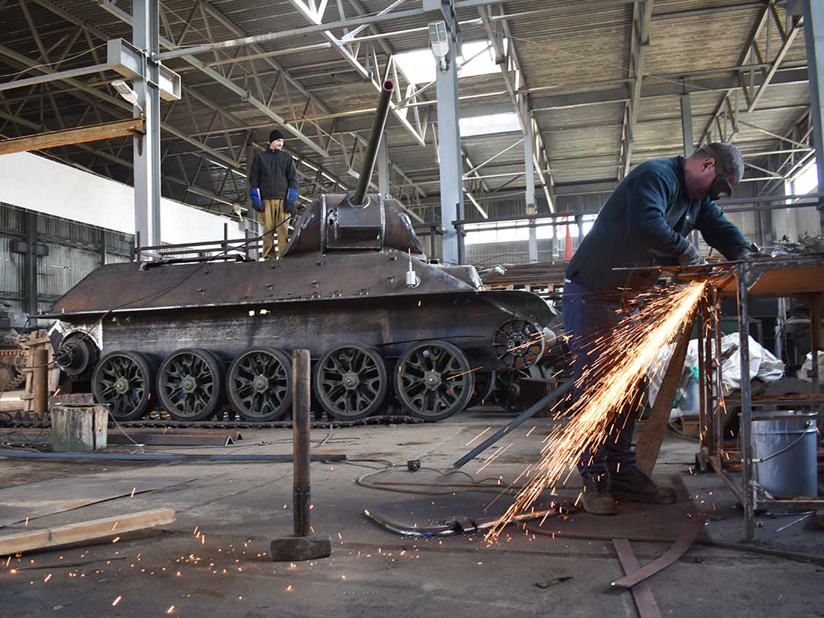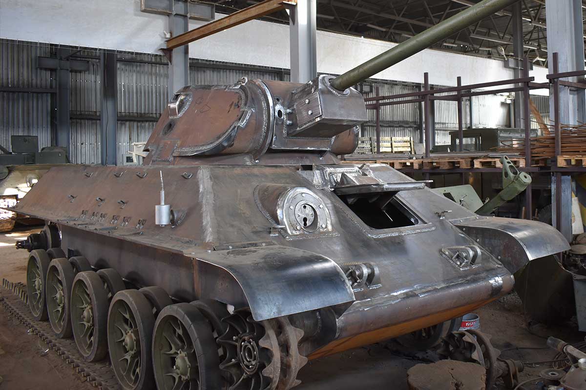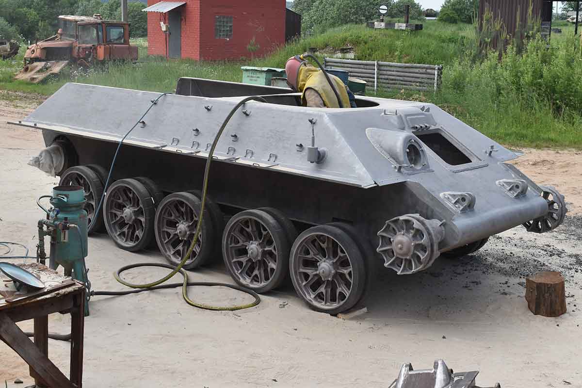 Смысл же постройки ходовой копии Т-34 в том, чтобы машину можно было активно использовать не только в исторических реконструкциях, но и в катании гостей, и даже — в услуге катания со стрельбой по немецким танкам! По этой причине принято решение строить очень редкую модификацию Т-34, считавшуюся «истребителем танков». Такой Т-34 был вооружен длинноствольной 57-мм пушкой, созданной на базе противотанковой 57-мм пушки ЗИС-2. Бронебойные снаряды этой пушки пробивали большую толщину брони, чем 76-мм снаряды на обычных танках Т-34.