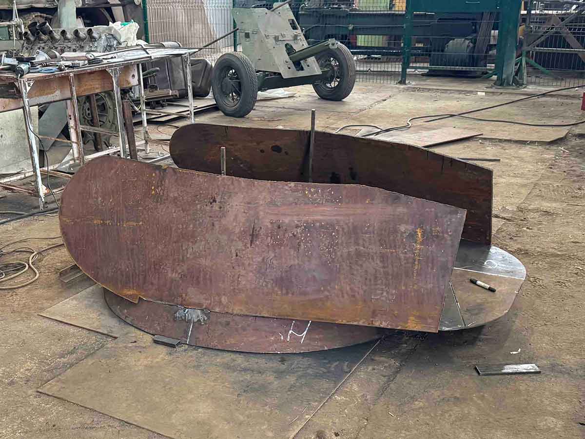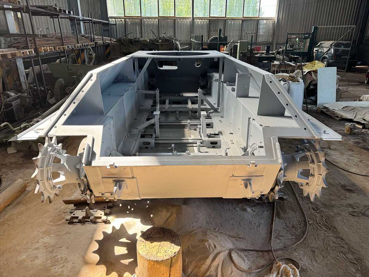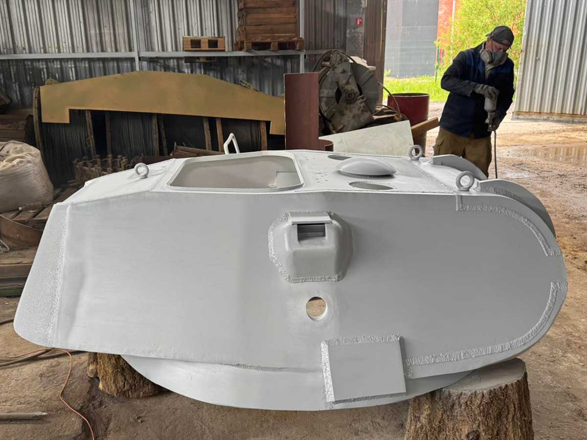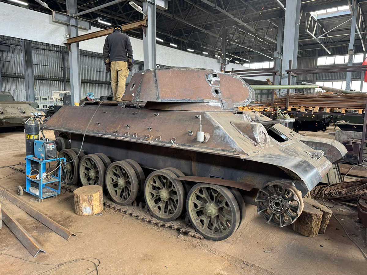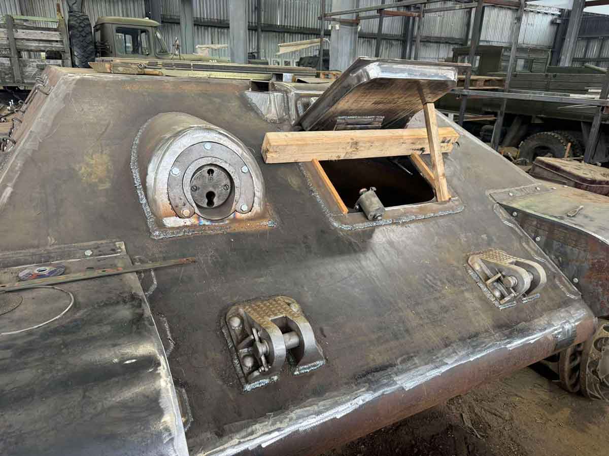 Смысл же постройки ходовой копии Т-34 в том, чтобы машину можно было активно использовать не только в исторических реконструкциях, но и в катании гостей, и даже — в услуге катания со стрельбой по немецким танкам! По этой причине принято решение строить очень редкую модификацию Т-34, считавшуюся «истребителем танков». Такой Т-34 был вооружен длинноствольной 57-мм пушкой, созданной на базе противотанковой 57-мм пушки ЗИС-2. Бронебойные снаряды этой пушки пробивали большую толщину брони, чем 76-мм снаряды на обычных танках Т-34.