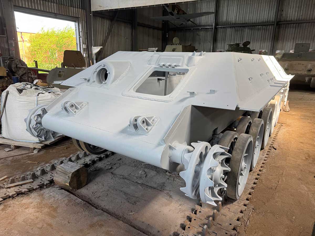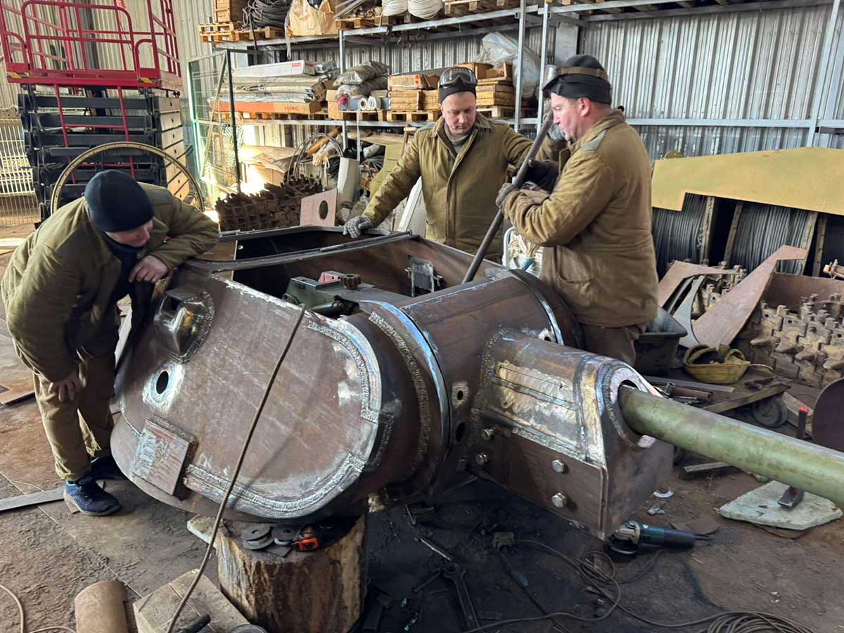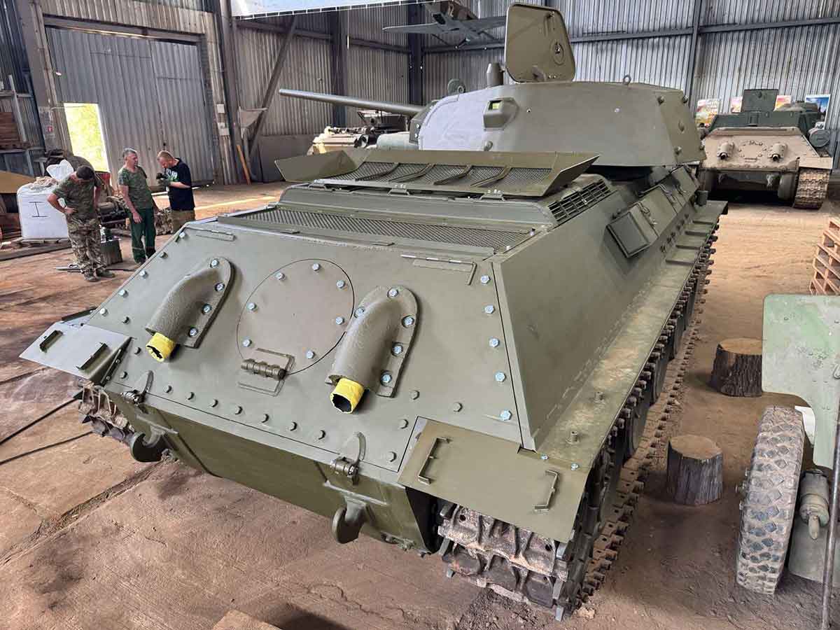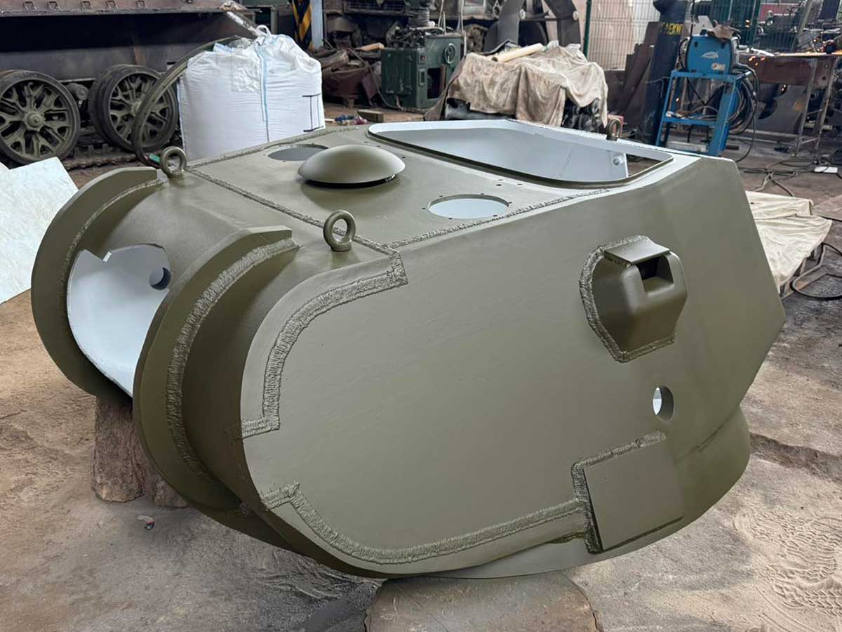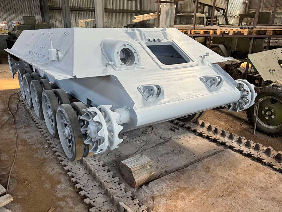 Смысл же постройки ходовой копии Т-34 в том, чтобы машину можно было активно использовать не только в исторических реконструкциях, но и в катании гостей, и даже — в услуге катания со стрельбой по немецким танкам! По этой причине принято решение строить очень редкую модификацию Т-34, считавшуюся «истребителем танков». Такой Т-34 был вооружен длинноствольной 57-мм пушкой, созданной на базе противотанковой 57-мм пушки ЗИС-2. Бронебойные снаряды этой пушки пробивали большую толщину брони, чем 76-мм снаряды на обычных танках Т-34.